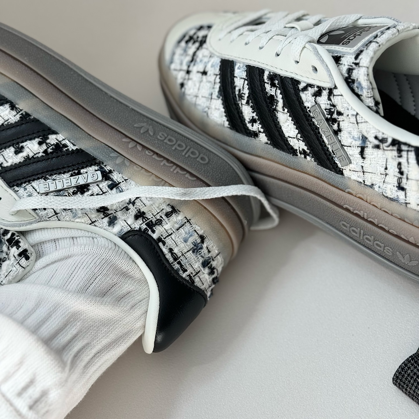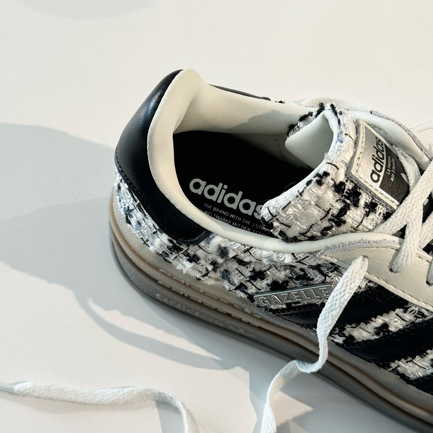 黑色粗花搭载金属logo的gazelle 香风满满 增高4cm 显腿长满分!! 秋冬搭配香风外套或大衣皆可