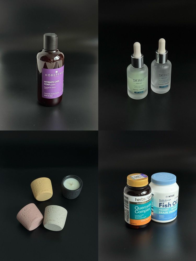 少买点 买好点 挑选能长期使用的 在有限的能力里 让自己有更好的生活品质 生活虽然疲惫 让自己拥有舒适的状态 才会充满力量! - HOBEPERGH洗护液 肌漾祛痘精华 和丽康槲皮素 NYO3鱼油 Lavas香薰蜡烛 .