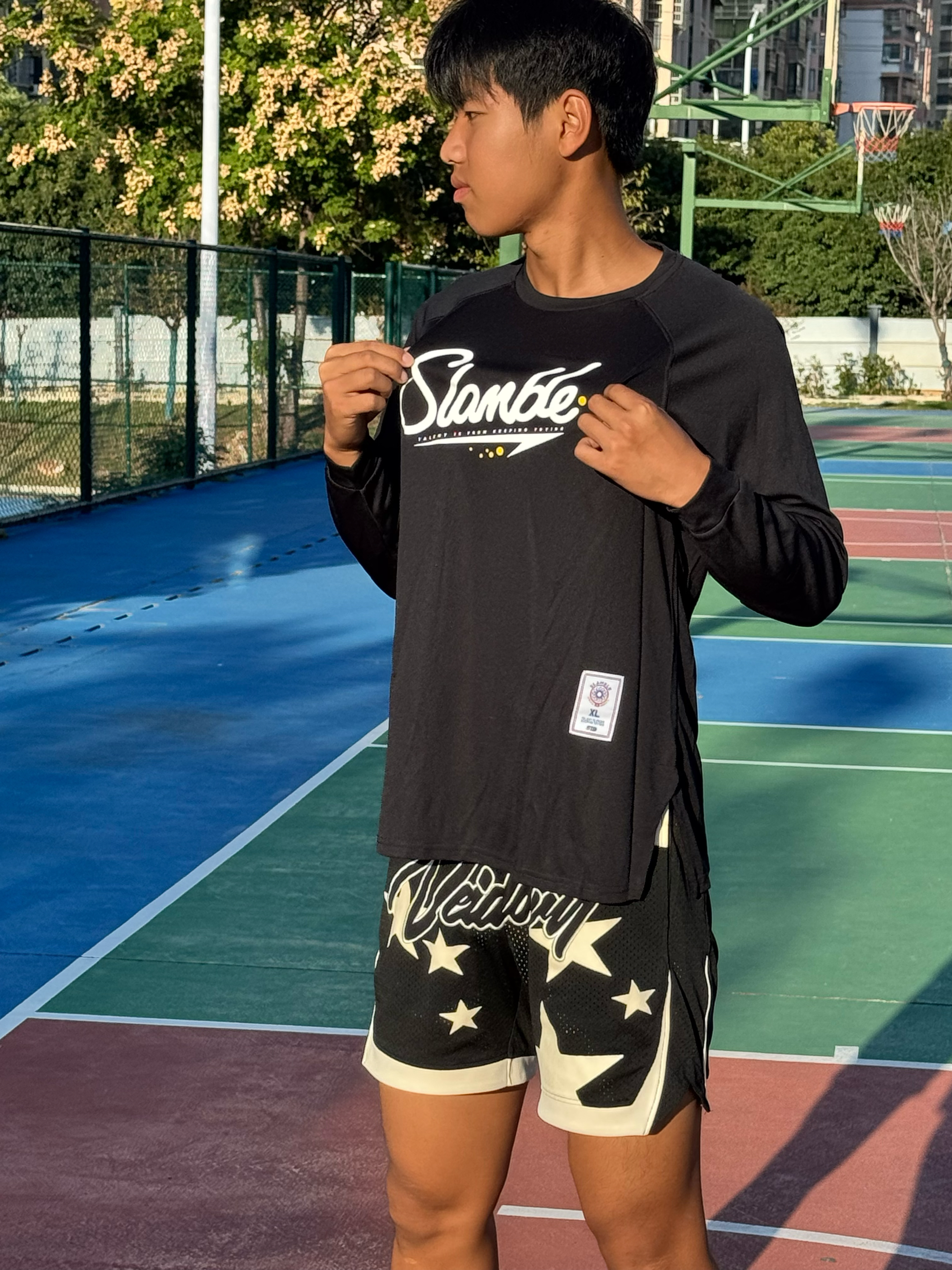 哈喽 大家好 今天给小伙伴们分享我的秋季篮球投篮服 已经不是第一次slamble 的衣服了 穿久了五彩缤纷的衣服 现在就喜欢穿简洁大方的风格🧐 这款投篮服整体纯黑的设计搭配上胸前有个大大的印花logo 感觉特别朴素大方 就算是日常穿搭也不在话下🥰 投篮服面料舒适 而且也很透气 出汗了也不会黏在身上😘 宽松舒适的版型 在做各种投篮 变相的时候动作也不会被束缚 每次打球都我的首选投篮服 真的爱了😍