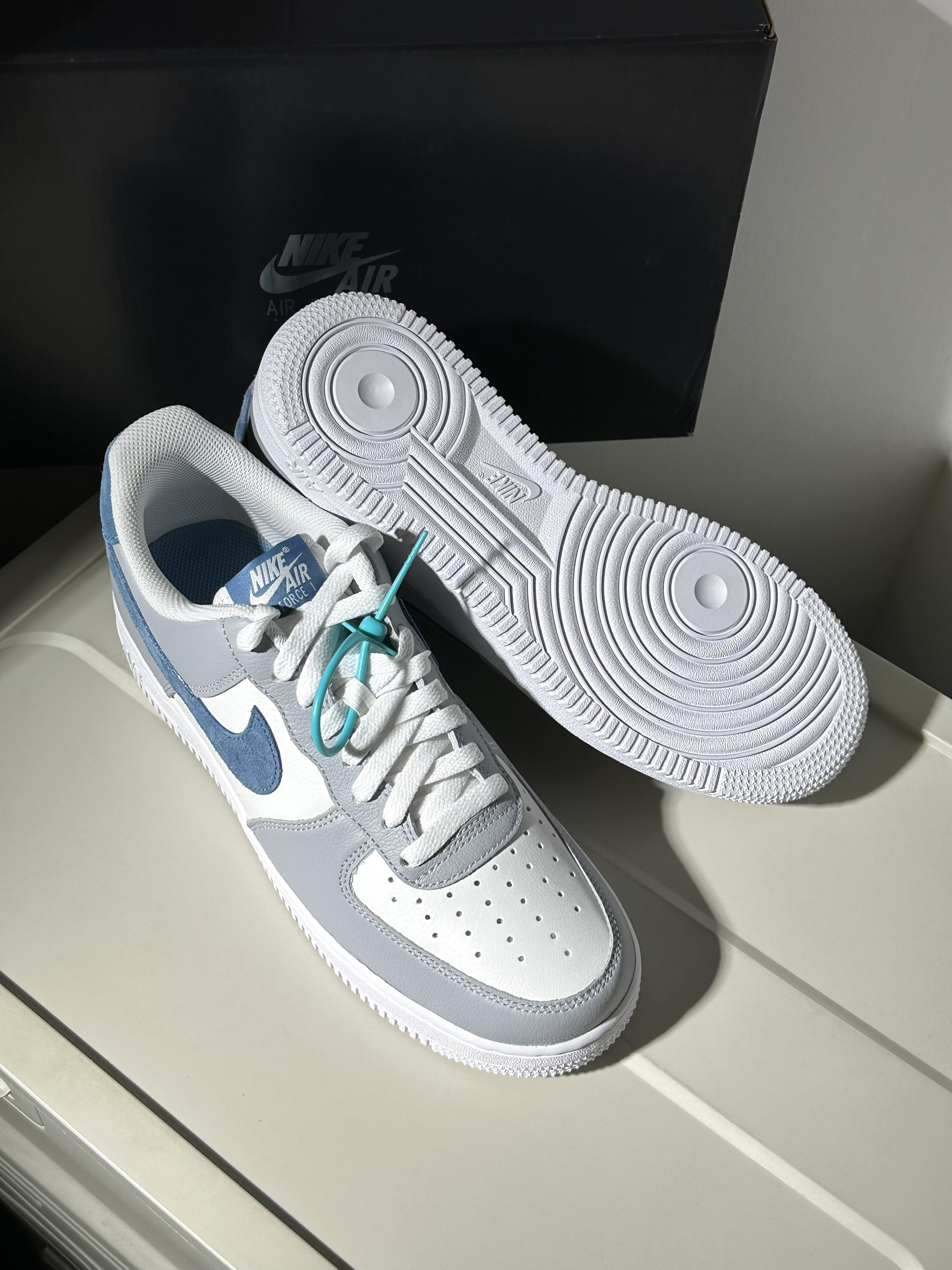 今天跟大家分享一下最近发现的宝藏af1,一起做个详细了解吧~🤗 − 🍋🟩配色:最近入手了这双很有少年感的白蓝配色af1,鞋面用到灰白色为主,在swoosh以及后跟部分再点缀有深蓝色,配色很低调百搭也很有少年感🍃,上脚很清爽也有点小酷的感觉🦌 🪼材质:鞋面用到牛皮革、牛剖层革以及合成革进行拼接,做成了光面皮和麂皮质感,质感很棒打理起来也挺方便的~不过鞋头部分穿一段时间依然会出现起褶变形的现象🐣 🍁...