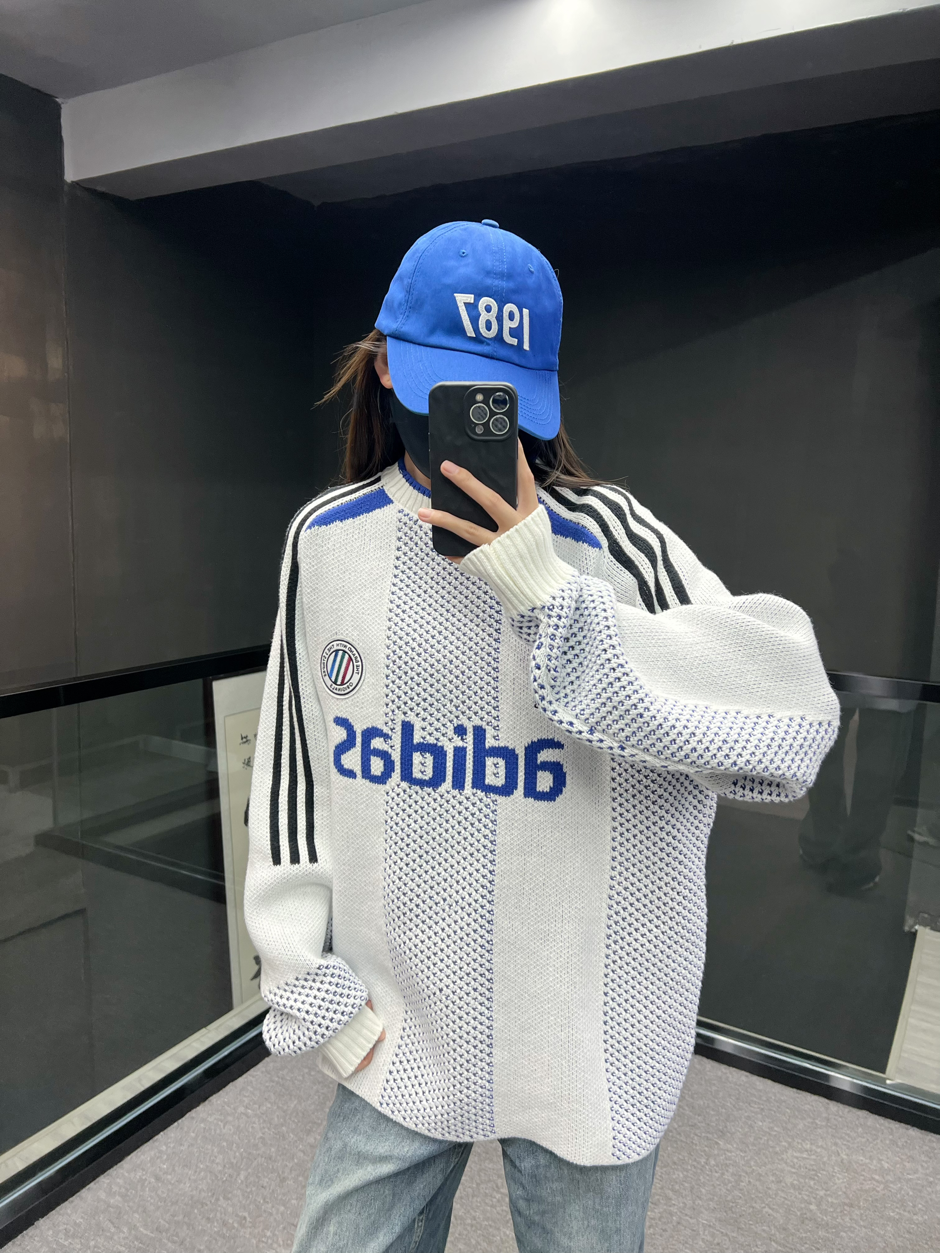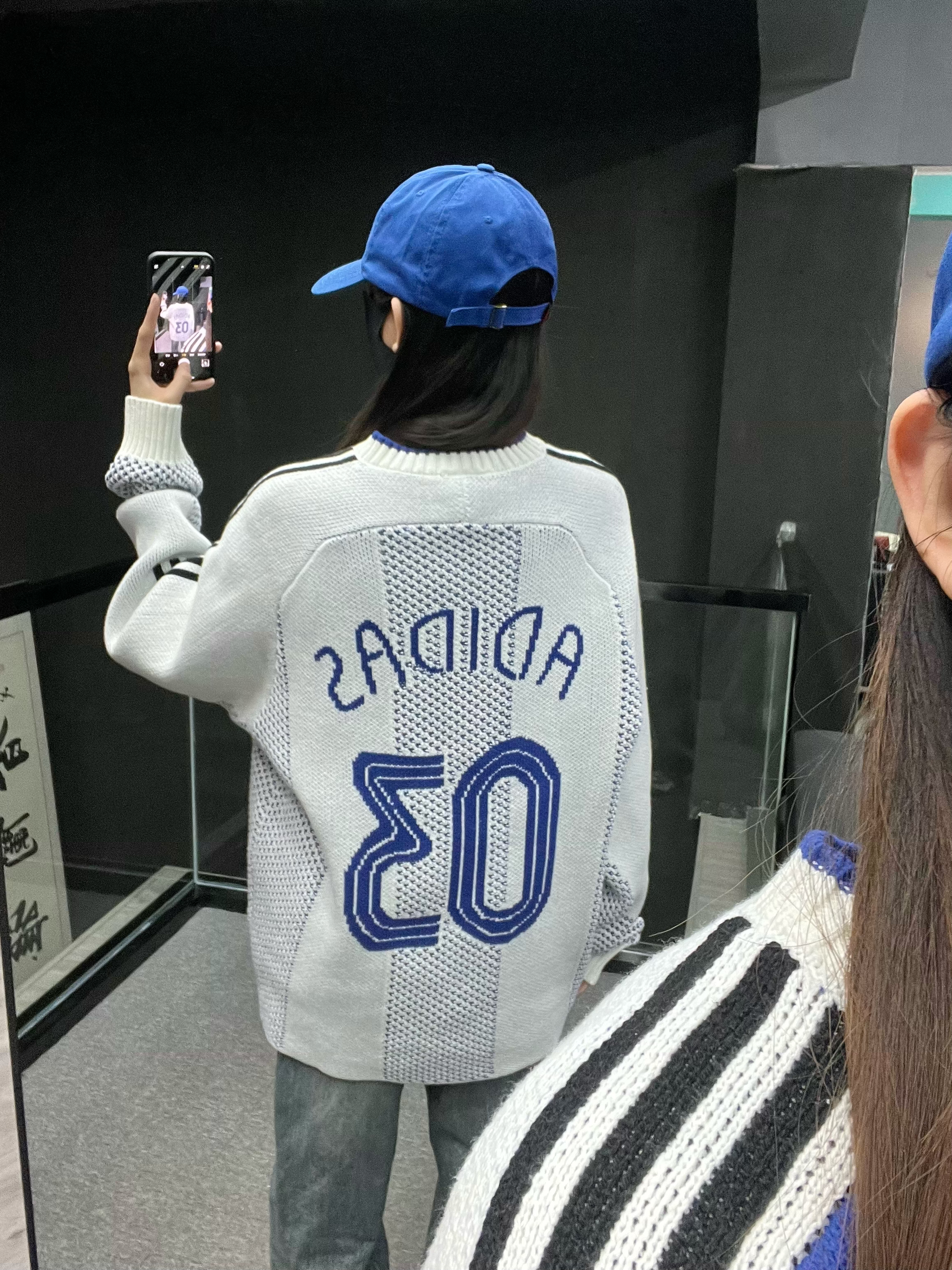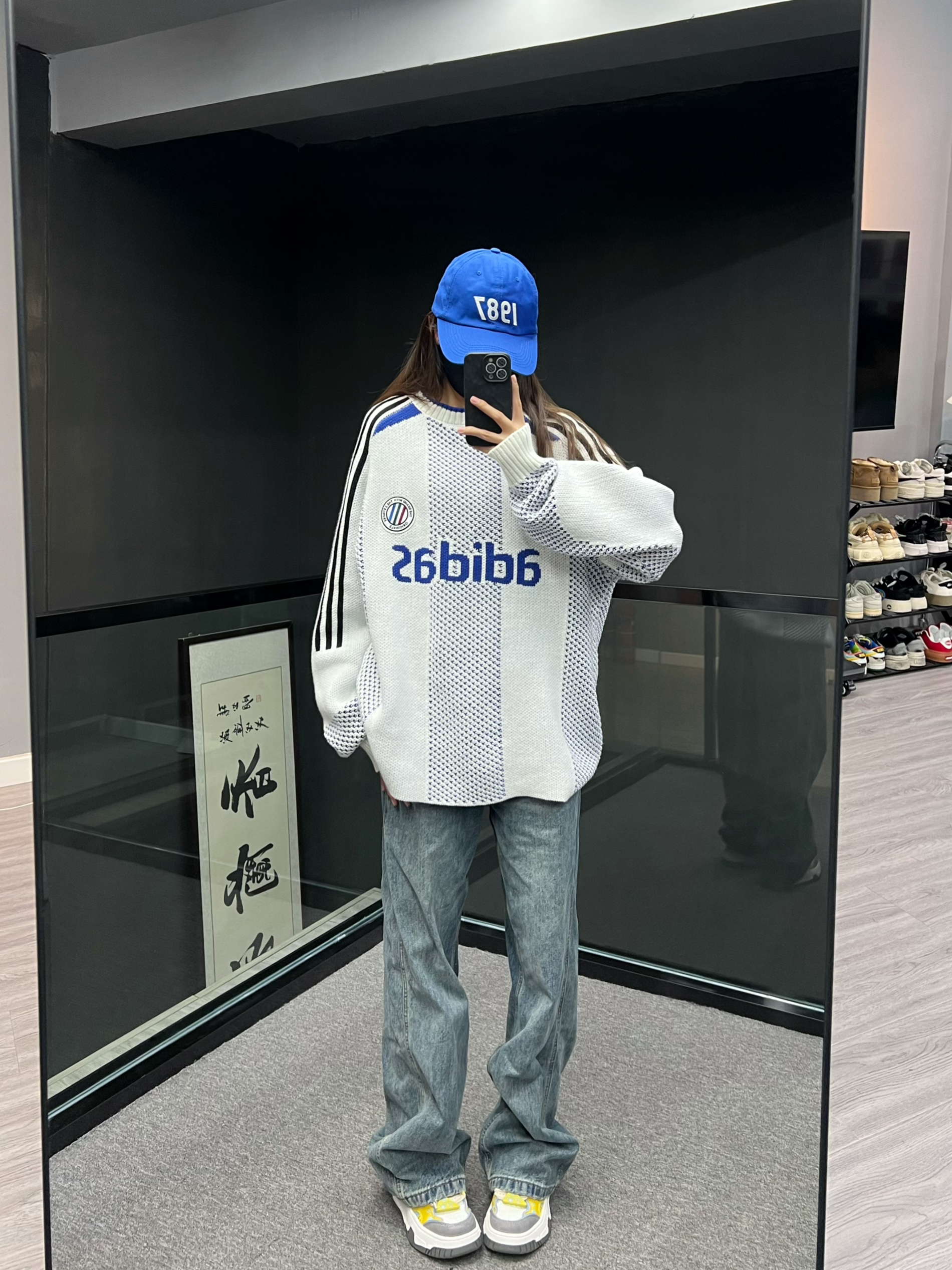 阿迪是不是又开挂了🤓 谁懂蓝白配色的魅力 清爽感拿捏 166/95 M码 能完全盖住屁股 宽松大版型毛衣慵懒感十足 这谁不喜欢呢~