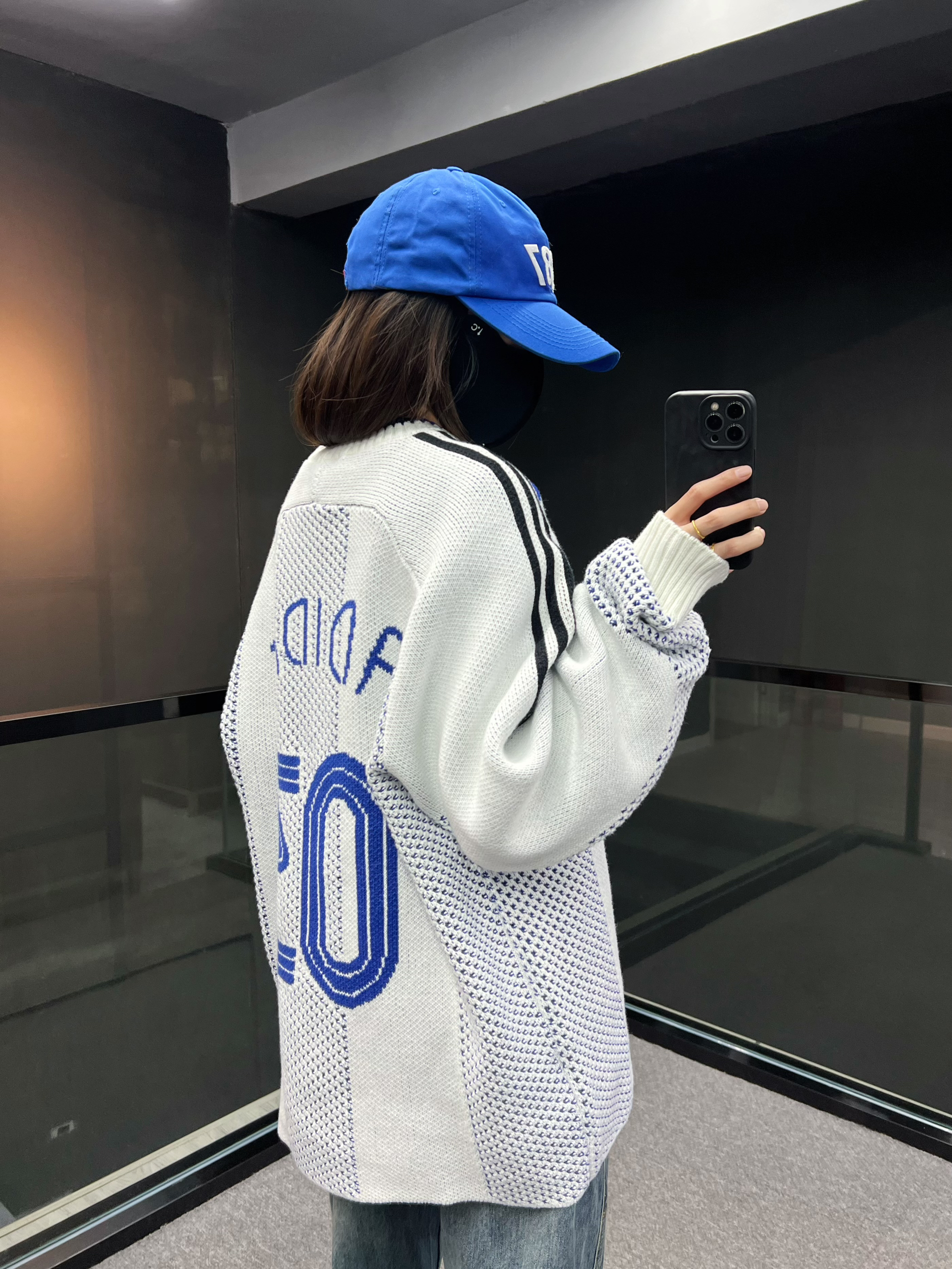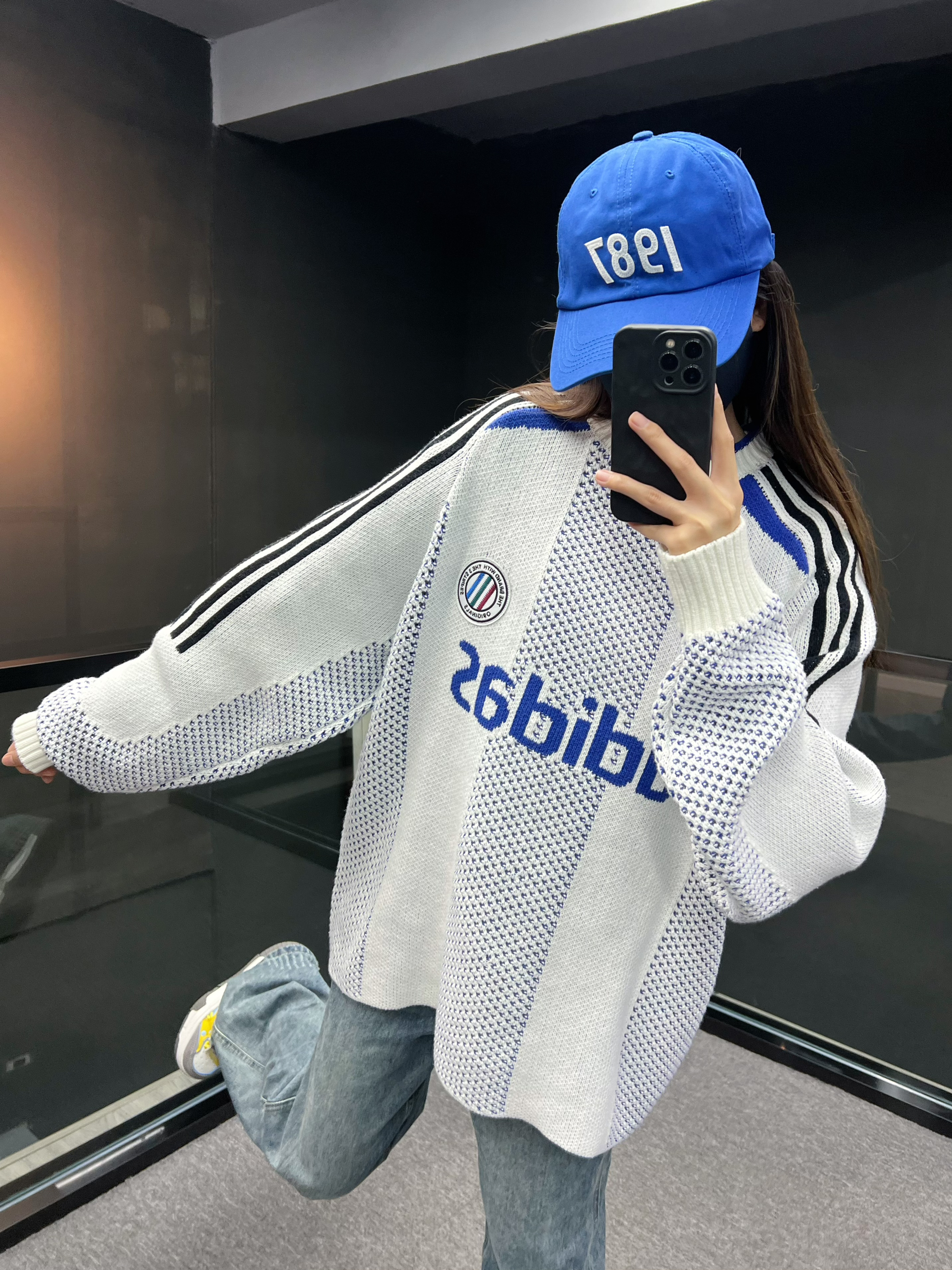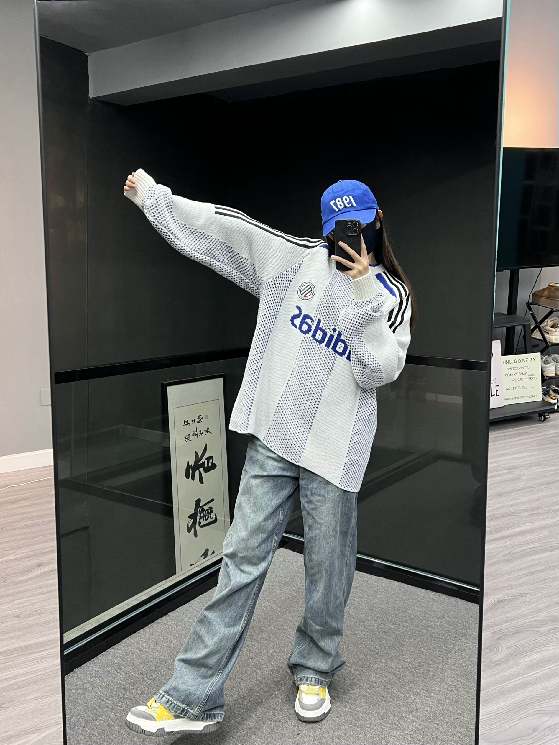 阿迪是不是又开挂了🤓 谁懂蓝白配色的魅力 清爽感拿捏 166/95 M码 能完全盖住屁股 宽松大版型毛衣慵懒感十足 这谁不喜欢呢~