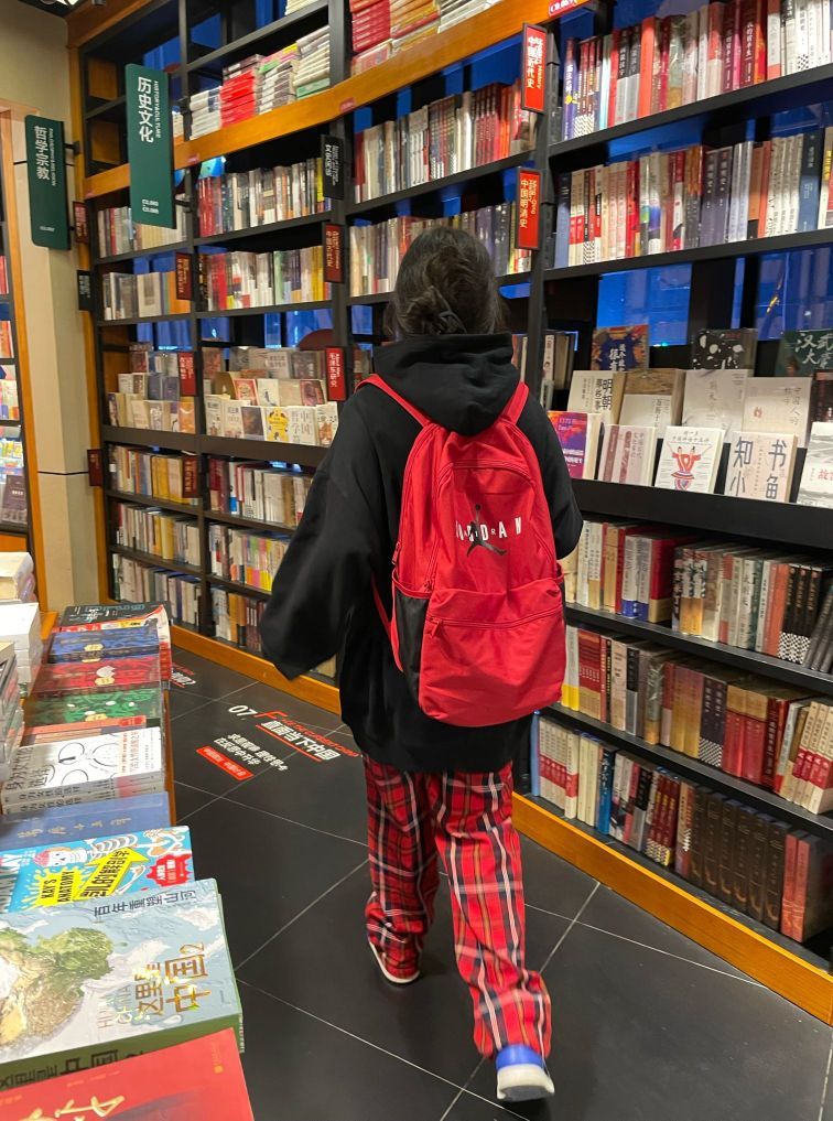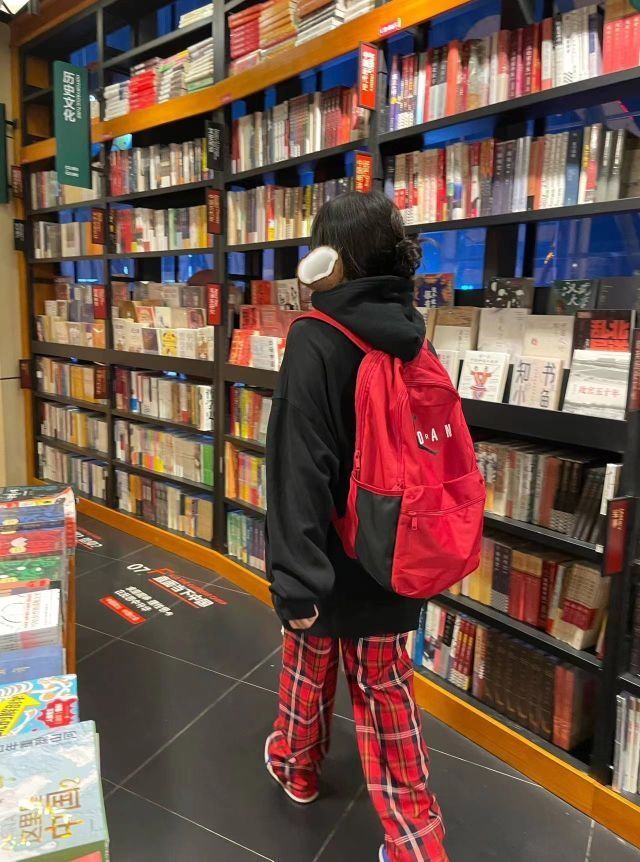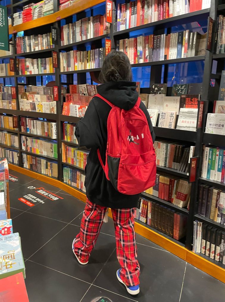 aj红色双肩包