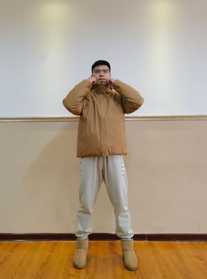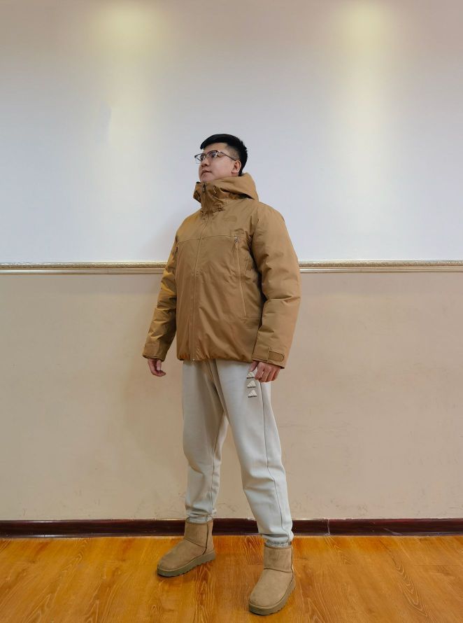上衣:THE NORTH FACE 防水羽绒服 裤子:adidas 篮球系列长裤 鞋子: Hotwind 皮毛一体雪地靴