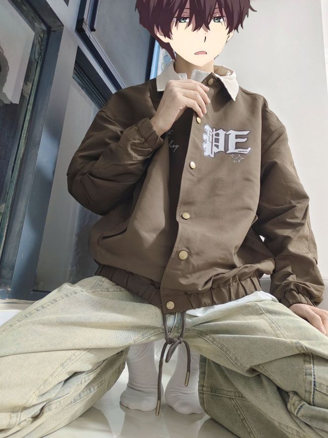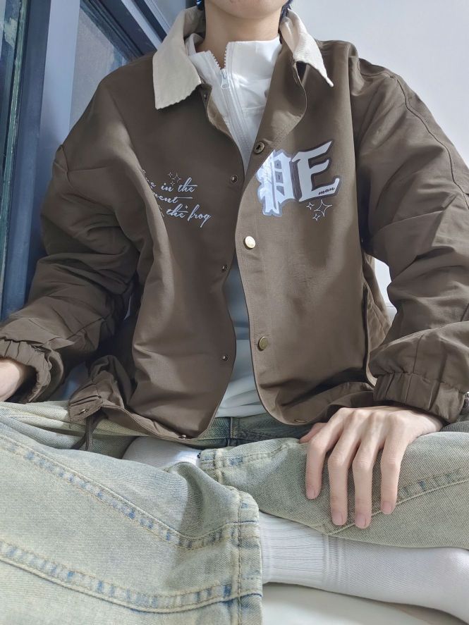 今天穿的这件咖色外套 版型宽松舒服显瘦不挑身材 衣服男女同款的很不错 面料摸起来柔软细腻舒适 秋天降温当外套穿很不错 白领设计的很新颖独特 穿在身上特别有少年感