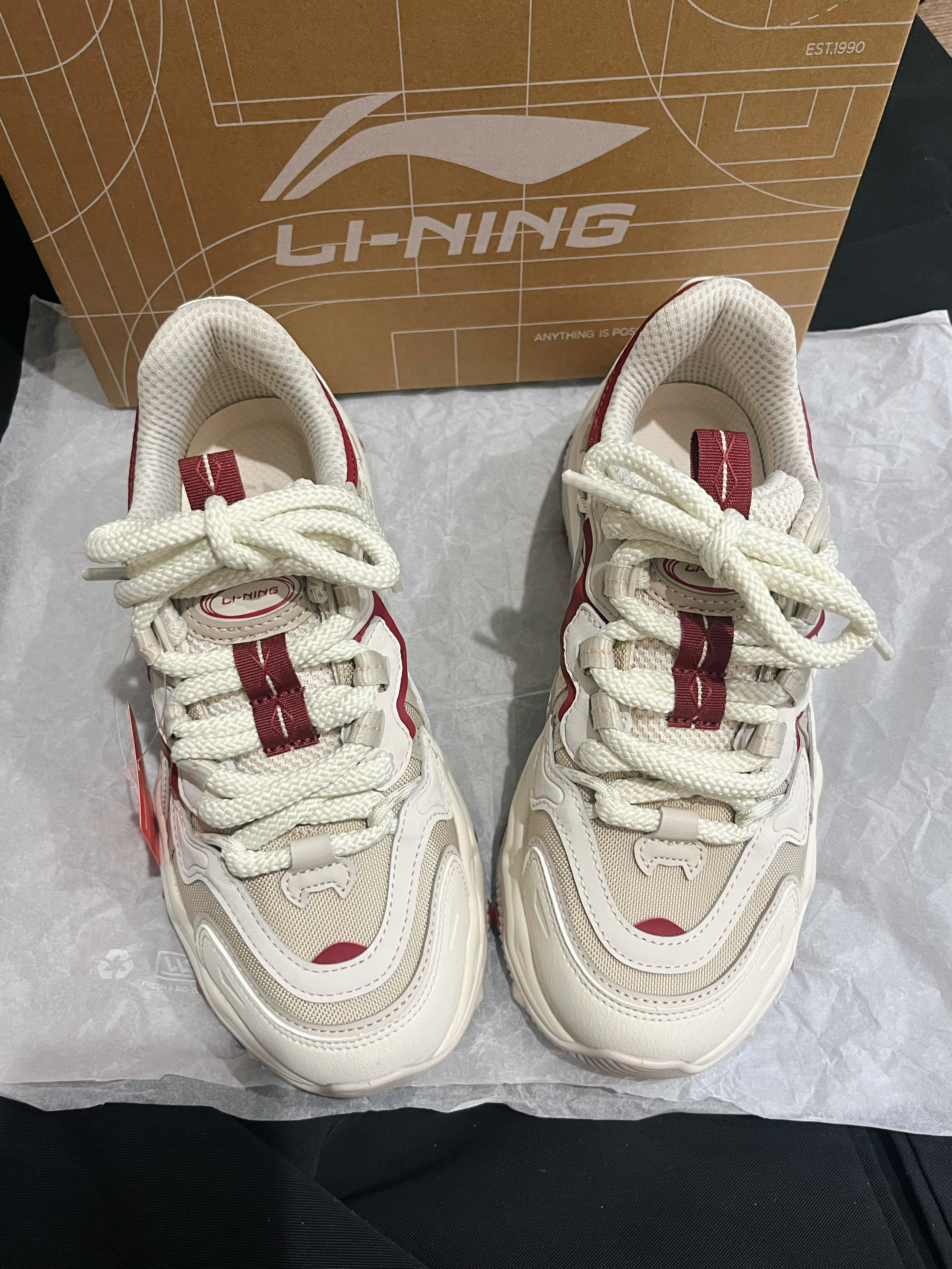 李宁猫爪鞋新配色来咯 红色点缀真的太适合过节啦 鞋底厚底超级软弹 上脚真的很舒服