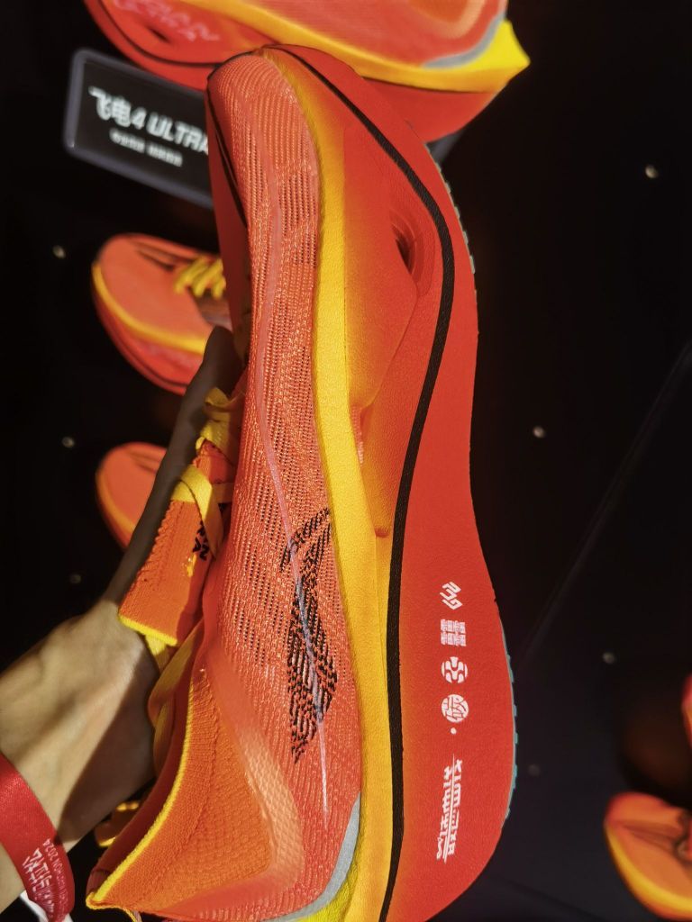 李宁飞电4U,颜值爆表,性能炸裂,马拉松站台大神的物理外挂,大众跑者hold不住的神兽。 鞋头上翘幅度大,滚动感极强,中底厚实前宽后窄,脚感硬弹(比5C硬多了),脚力不够踩不透。一上脚就有种要跑的冲动,只适合赛道的专属跑鞋,走路肯定不行,试穿之后就一个感觉,鞋很好,我不配。 本人全马PB310,上百双跑鞋里,有两双鞋是我一上脚就觉得驾驭不了的,一双特步160x5.0pro,一双李宁飞电4U,都是妥...