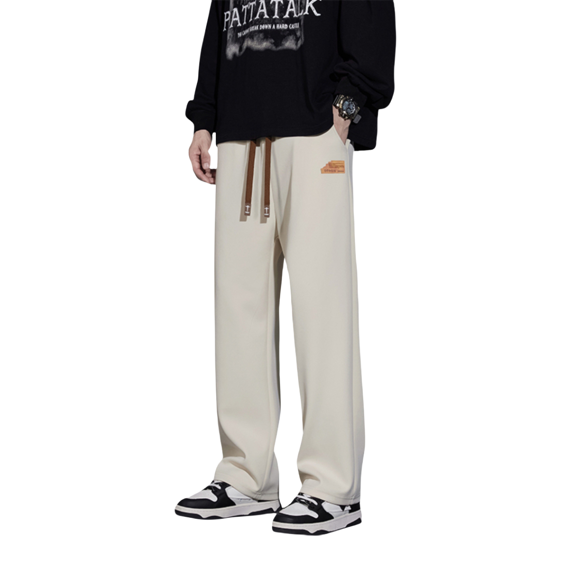 裤子很轻柔,很透气,我感觉即使南方的冬天这条裤子也依旧能打。这条暖色系直筒裤真的穿啥都好看,居家的话也是非常合适,因为材质很柔软,宽松的设计再加上超高的舒适度,真的可以焊在腿上了。 (图片来自网络,侵删)