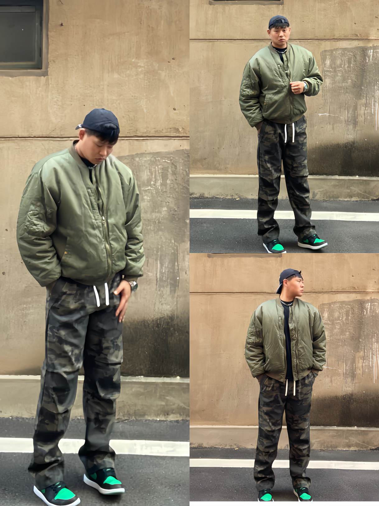 4️⃣:这一款棒球服上身是短款的版型,非常舒适有做加绒!绿色代表着硬汉,我非常喜欢绿色搭配迷彩的裤子真的非常百搭耐看!喜欢的可以试一下!真的会让你惊喜