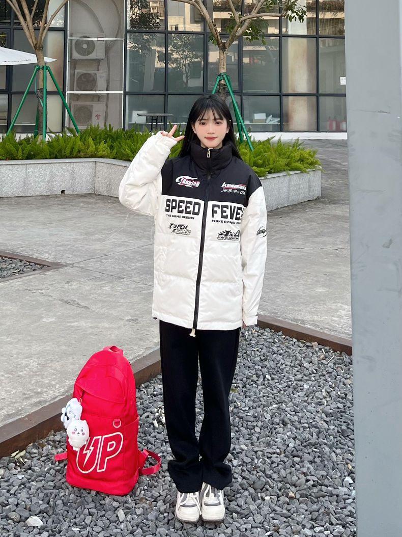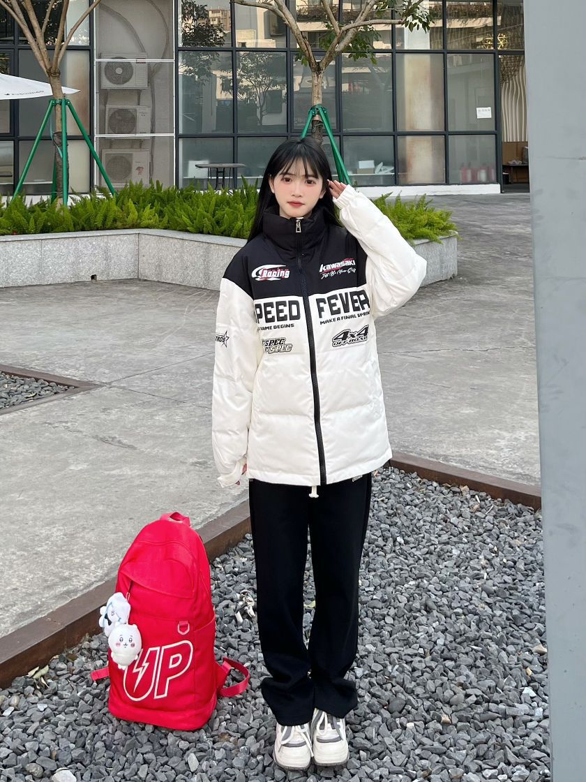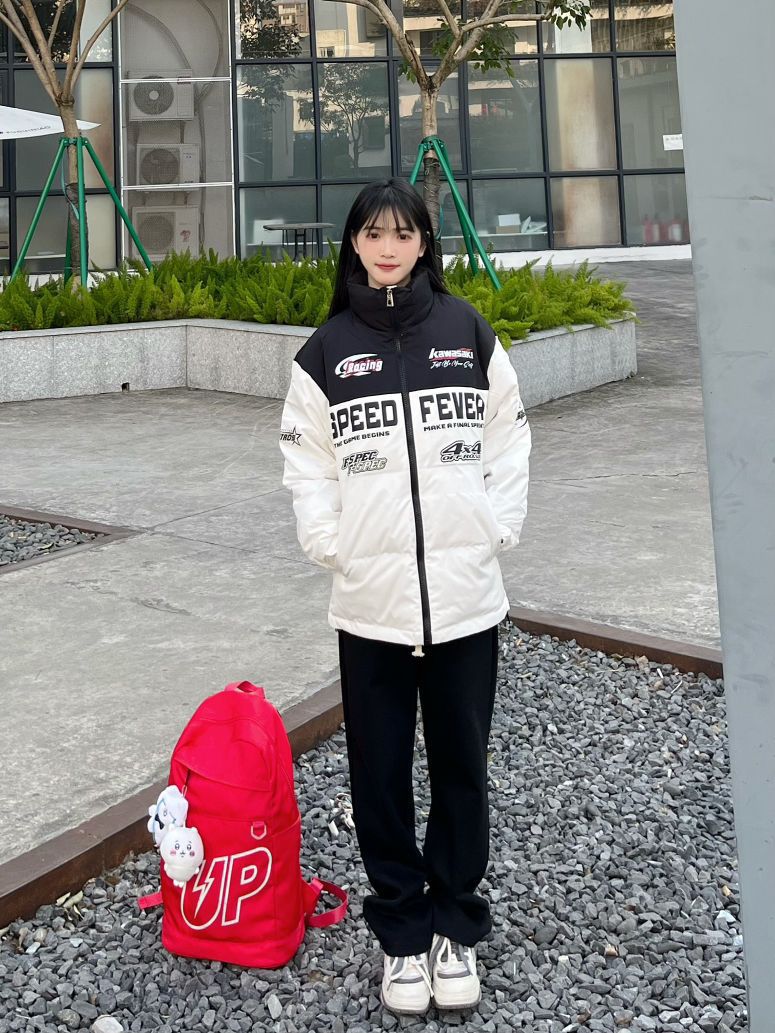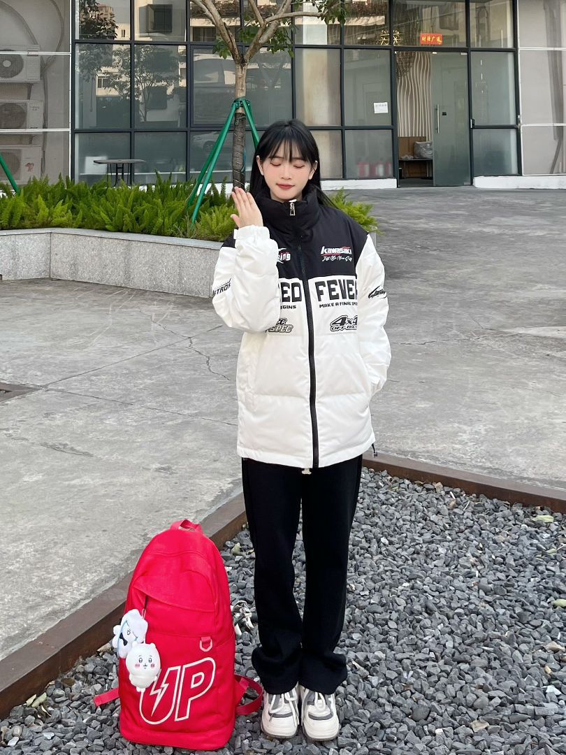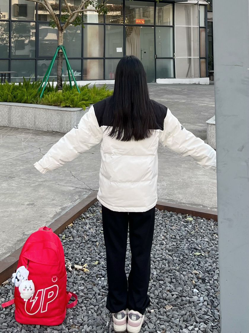 哈喽,家人们,今天的第一套穿搭分享来喽,是一套入冬女高中生保暖棉服穿搭~ 上半身: 黑白色字母印花宽松羽绒服+红色美式大容量双肩包 下半身: 黑色直筒休闲裤+白紫色面包鞋 一整套入冬女高中生保暖羽绒服穿搭get~ 穿搭借鉴:160、96 衣服:m 裤子:s 鞋子:36