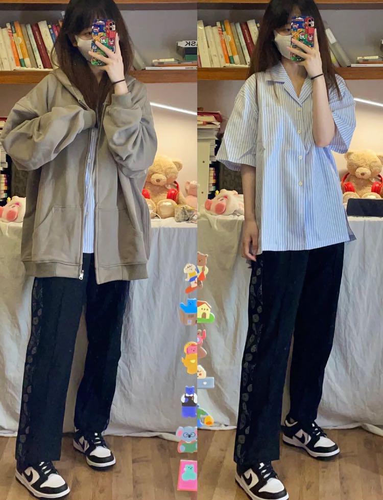 秋天想要松弛感搭配还得是卫裤 简约的直筒日常是真百搭 出门穿双板鞋就很好看了
