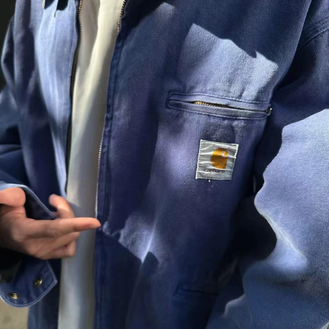 这件蜡染水洗底特律 J97 夹克,珠帆布面料搭配整衣蜡染水洗工艺,复古做旧的质感简直绝了!胸前的字母刺绣恰到好处,不花哨却很有亮点。内里的格子布搭配铜色拉链五金,更是增添了一份复古气息!! 图片来源于@没人爱的力工