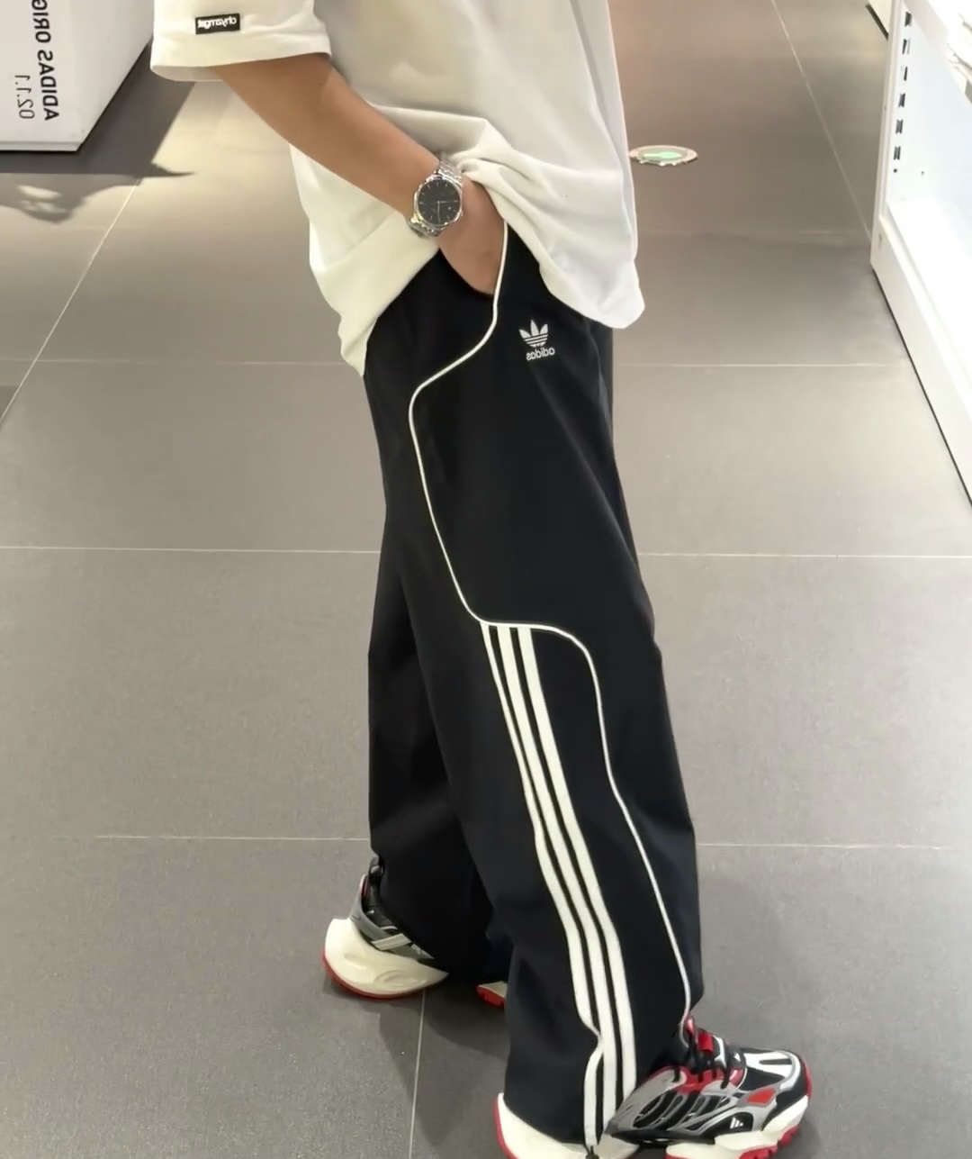 本篇笔记关联了【梁靖康同款】adidas Originals 复古风拼接三条纹梭织耐磨直筒运动长裤 黑/白等商品,为用户提供真实的使用体验和购买参考。