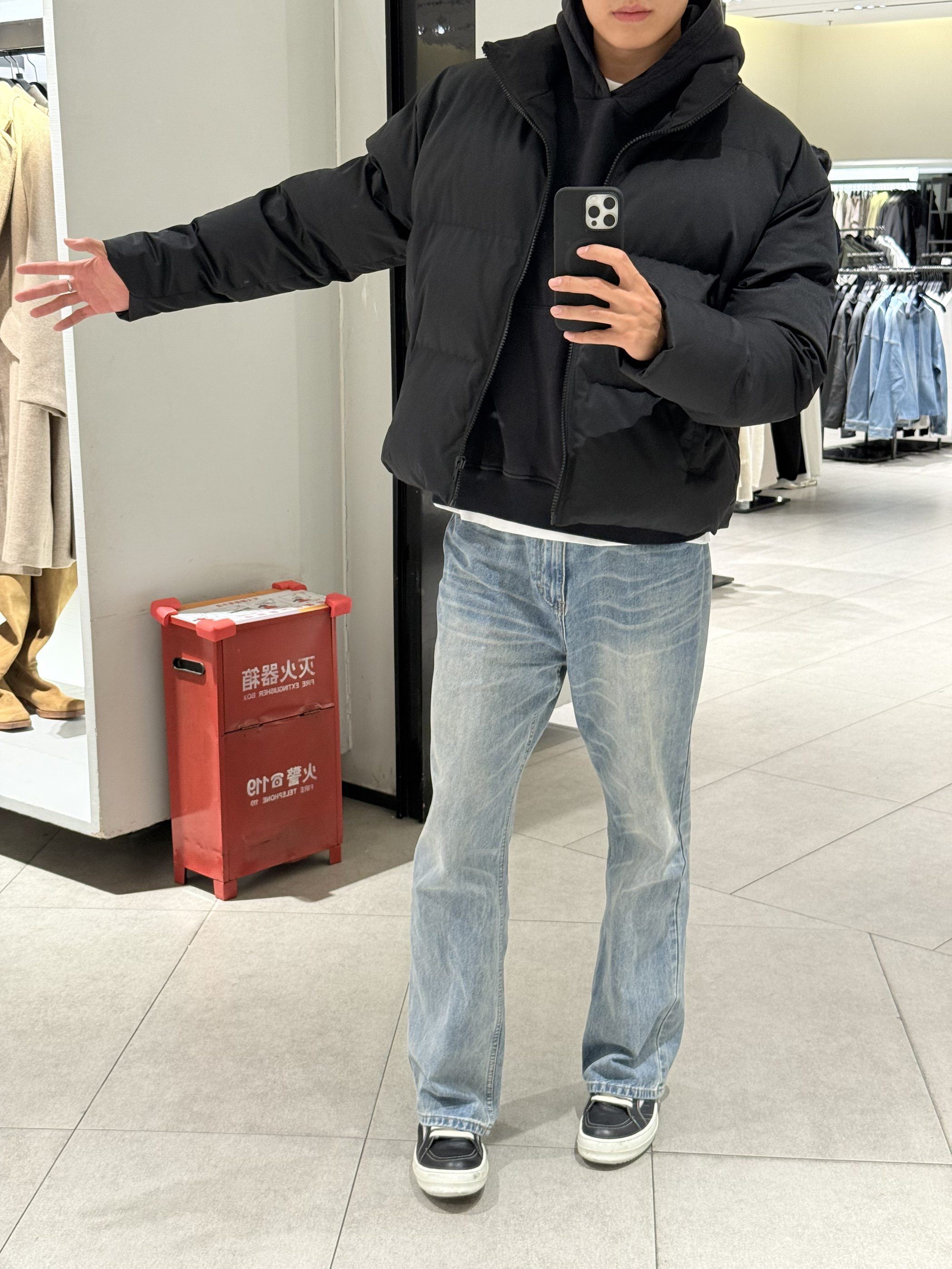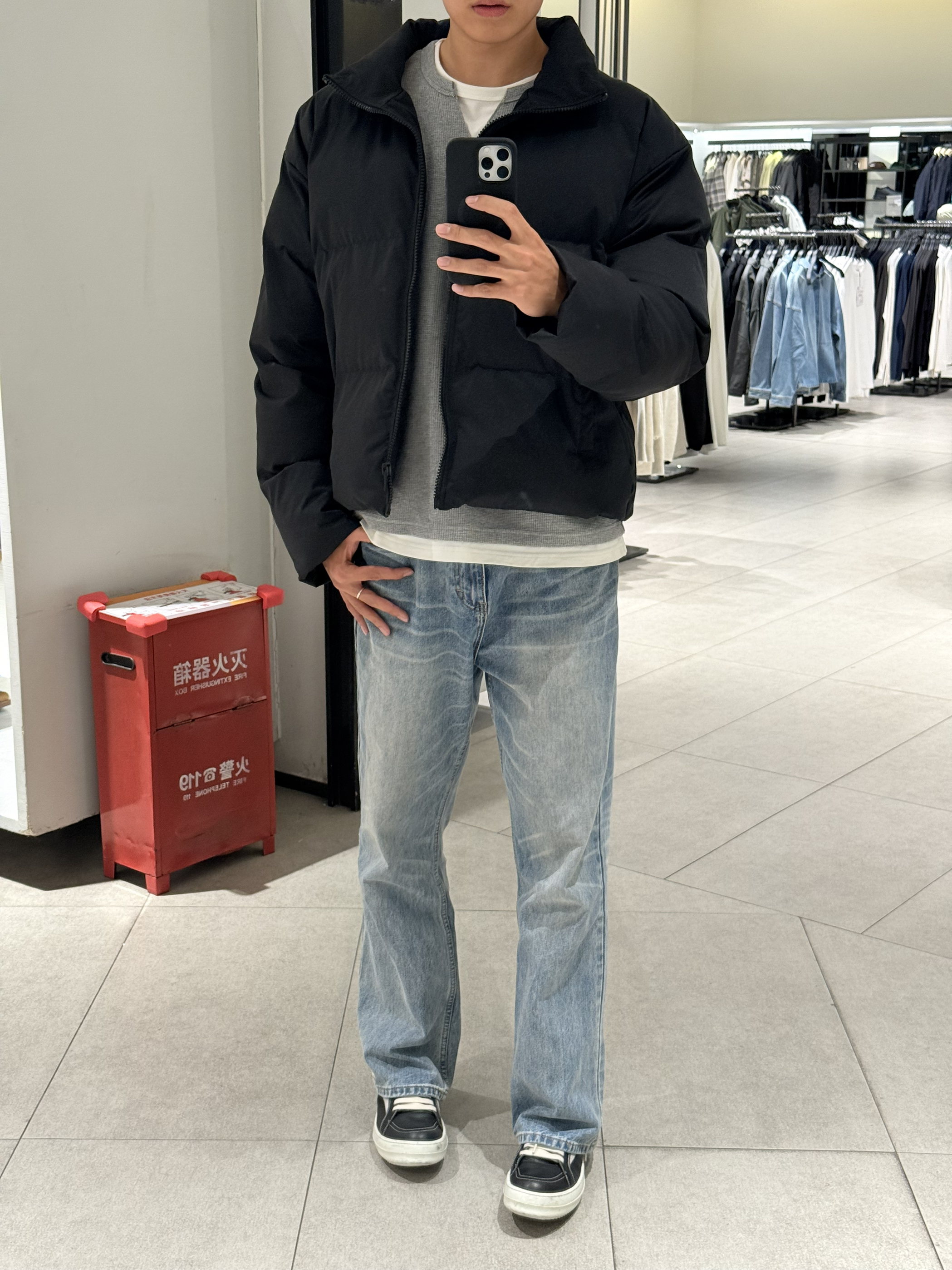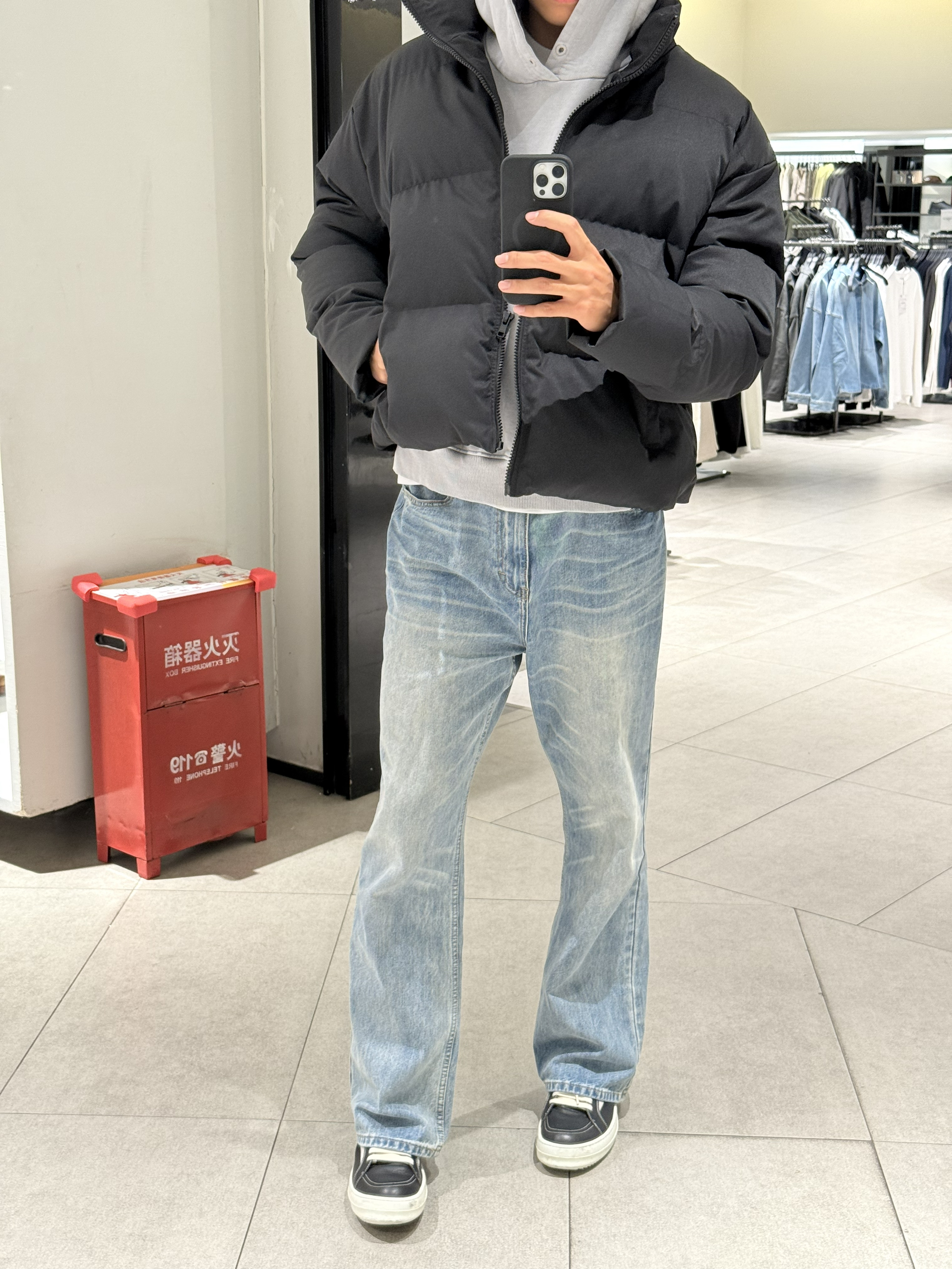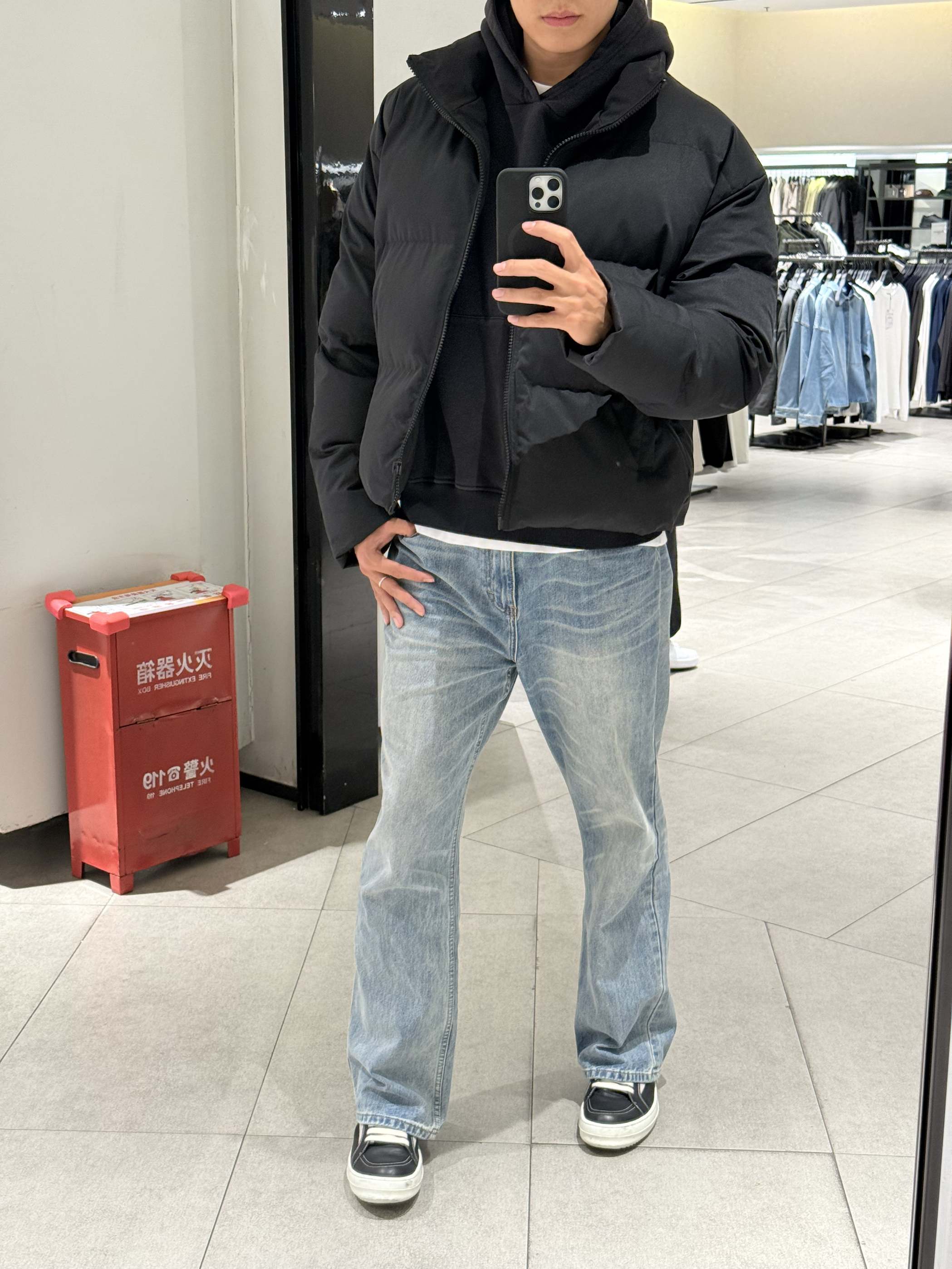 身高|体重:190/83kg 🧍♂️ 穿搭风格:美式自由风 👔 上衣:棉服 👖 下装:蓝色直筒牛仔裤 👟 鞋子:ro 🎒配饰:🈚️