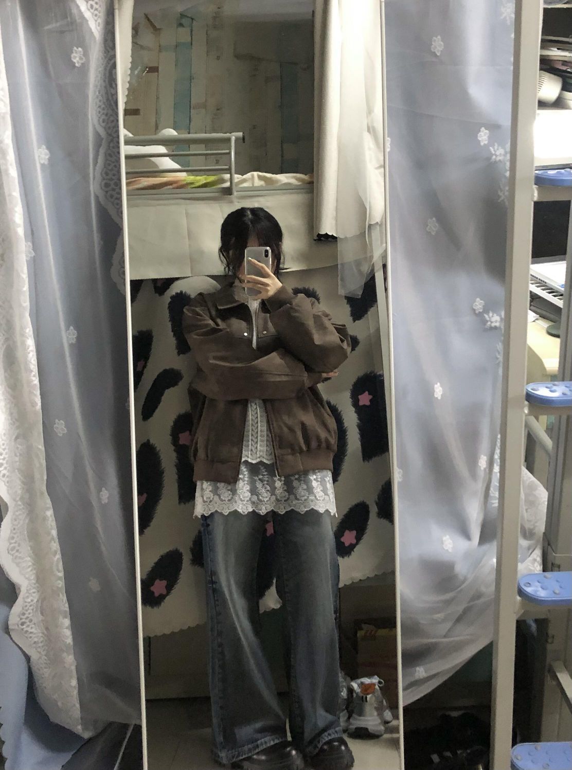 【在校女大尝试穿搭博主|棕皮衣外套蕾丝叠穿~】,由用户 鲤鲤不吃荔枝 分享,来自重庆。这是一篇来自识货社区的真实用户分享笔记。