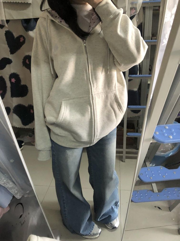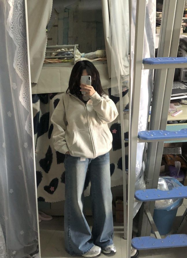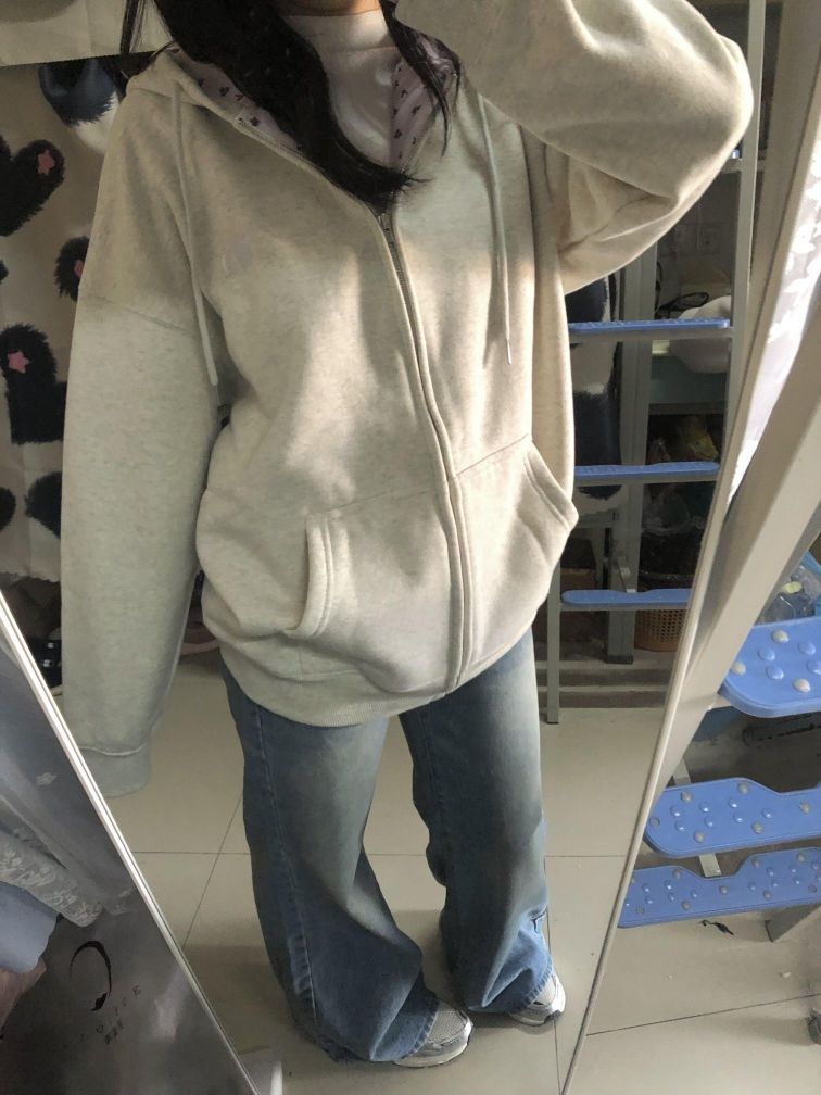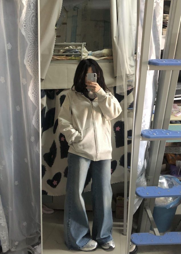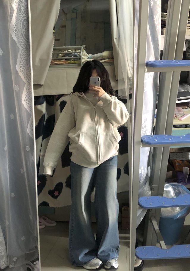 这套简简单单~白灰色卫衣➕牛仔裤 韩里韩气的感觉 谁懂🫶🏻 好适合在校女大学生日常通勤啊 松弛感满满的不费力穿搭get!