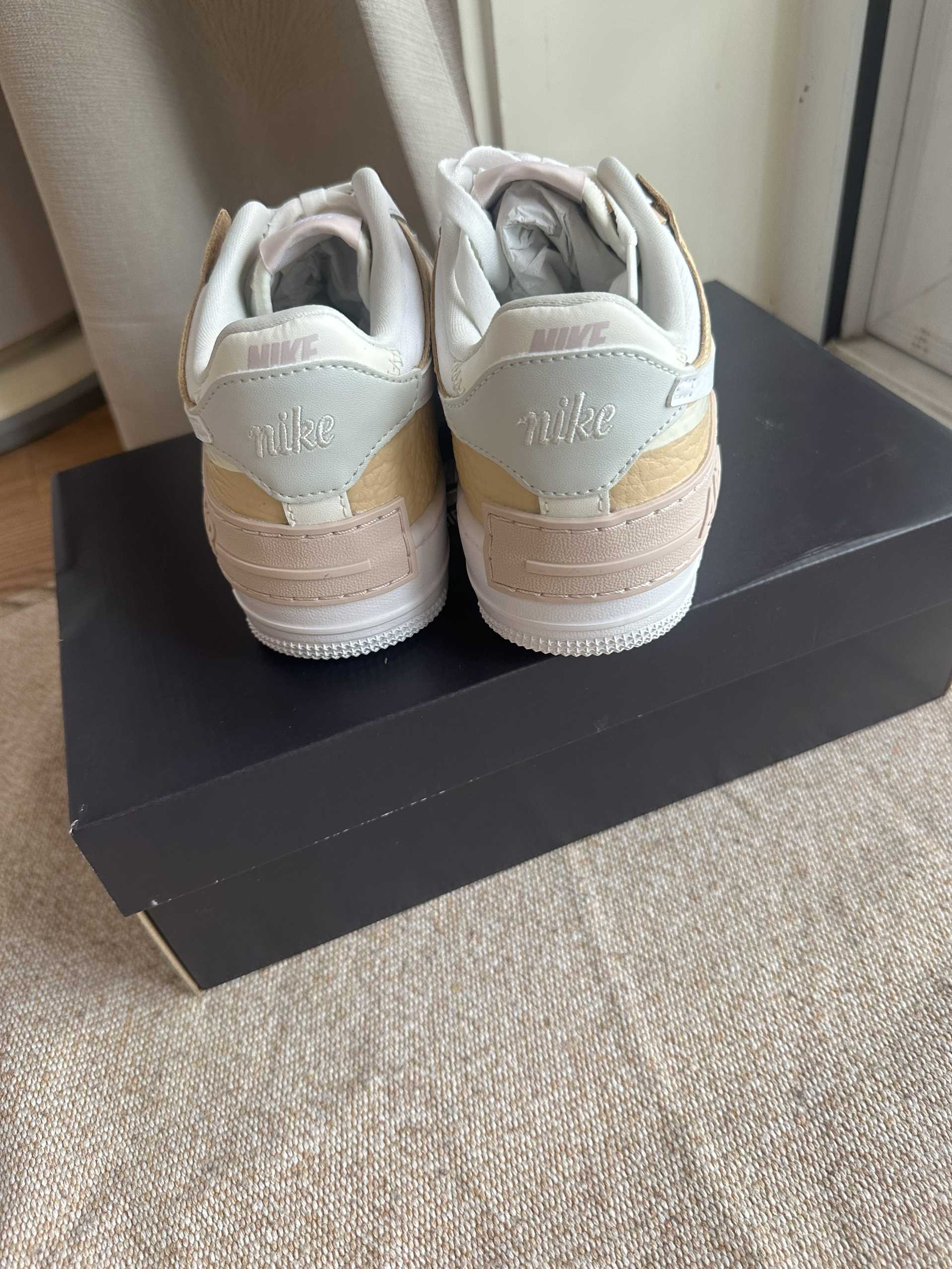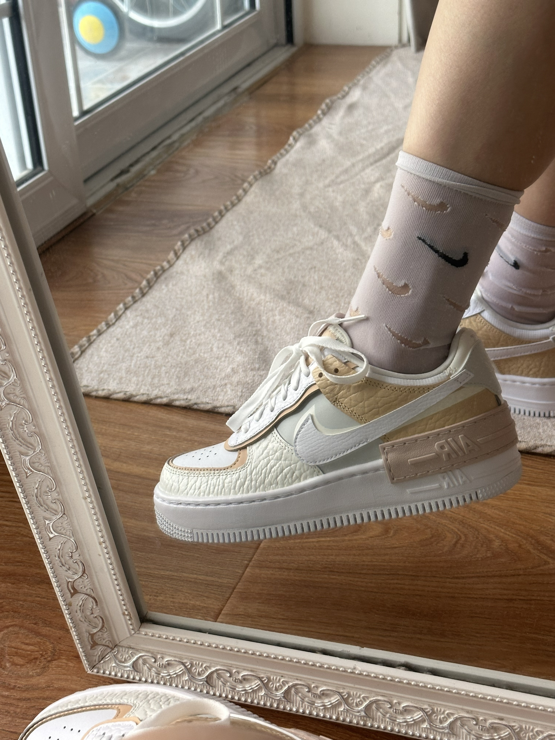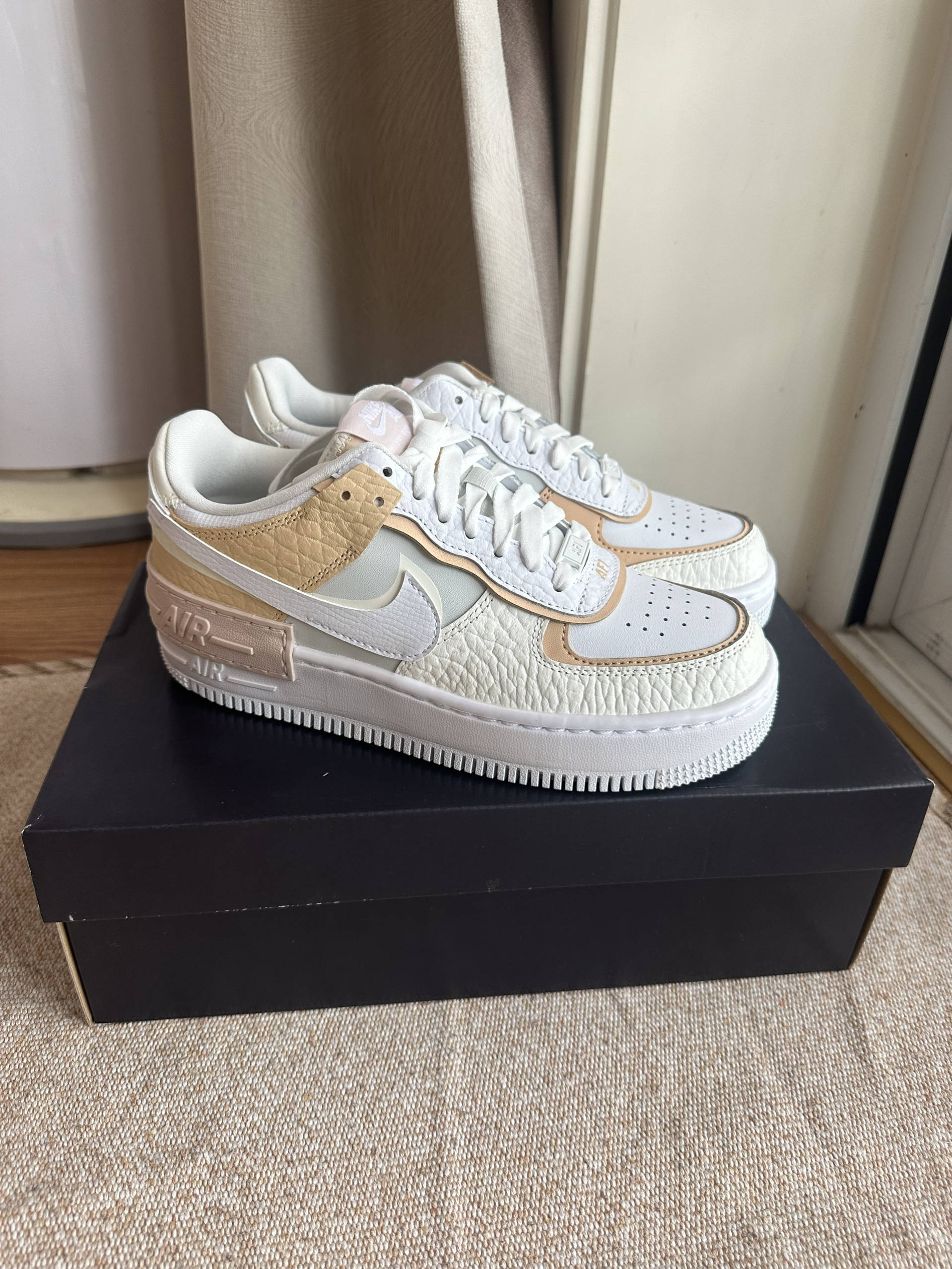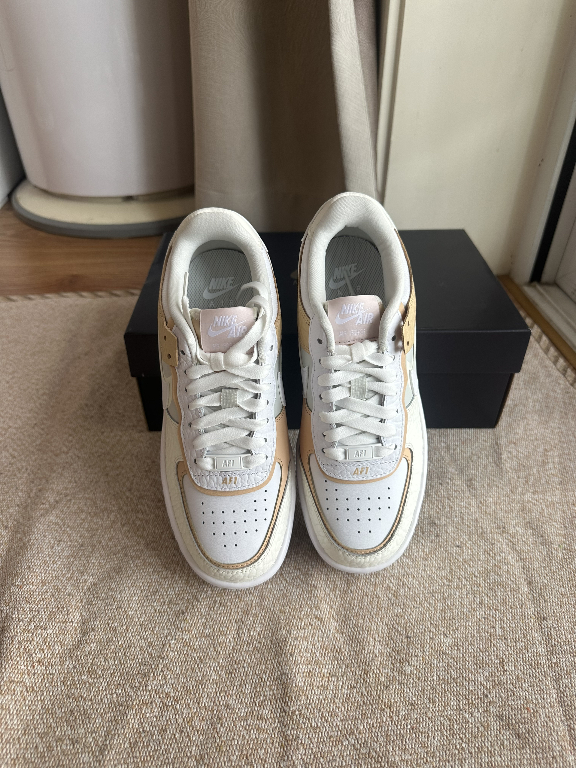 这款和经典空军相比,更加软和,鞋体拼接软软的荔枝皮 棕色和白色的搭配很有秋冬感。 轻盈有质感,日常也好打理,用湿纸巾可以擦一擦 大概有3厘米的增高。 在平常生活中,随便搭配都好看。出去旅行也很有感觉 每天走路一万步没问题哈哈哈