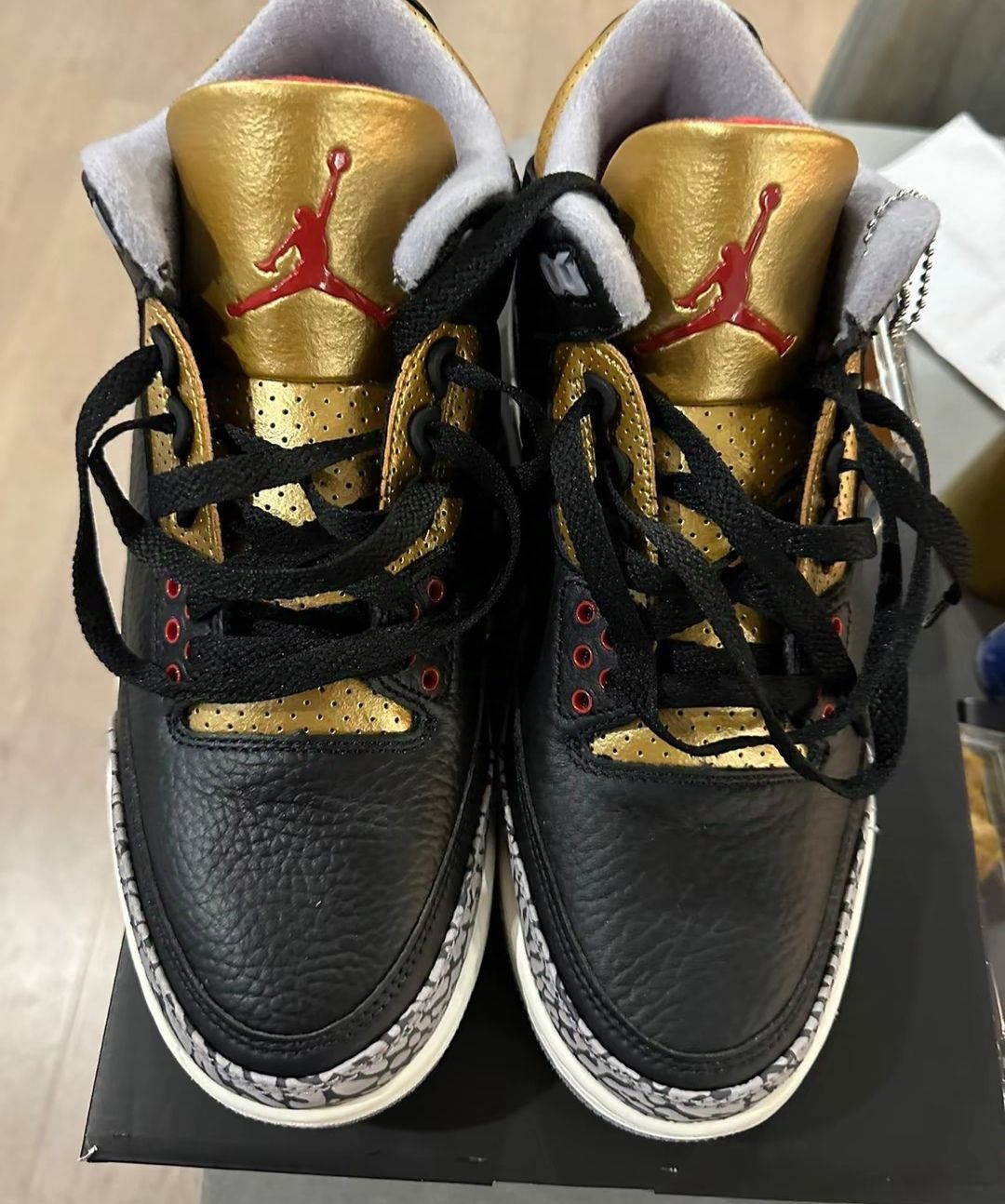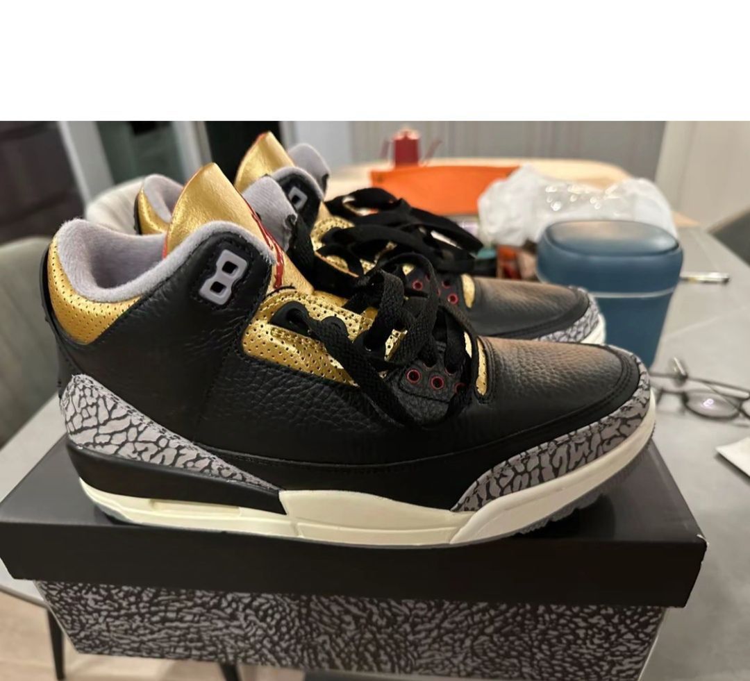 本篇笔记关联了Air Jordan 3 运动休闲鞋 潮流复古抓地支撑缓震合成革圆头 黑色/金色等商品,为用户提供真实的使用体验和购买参考。