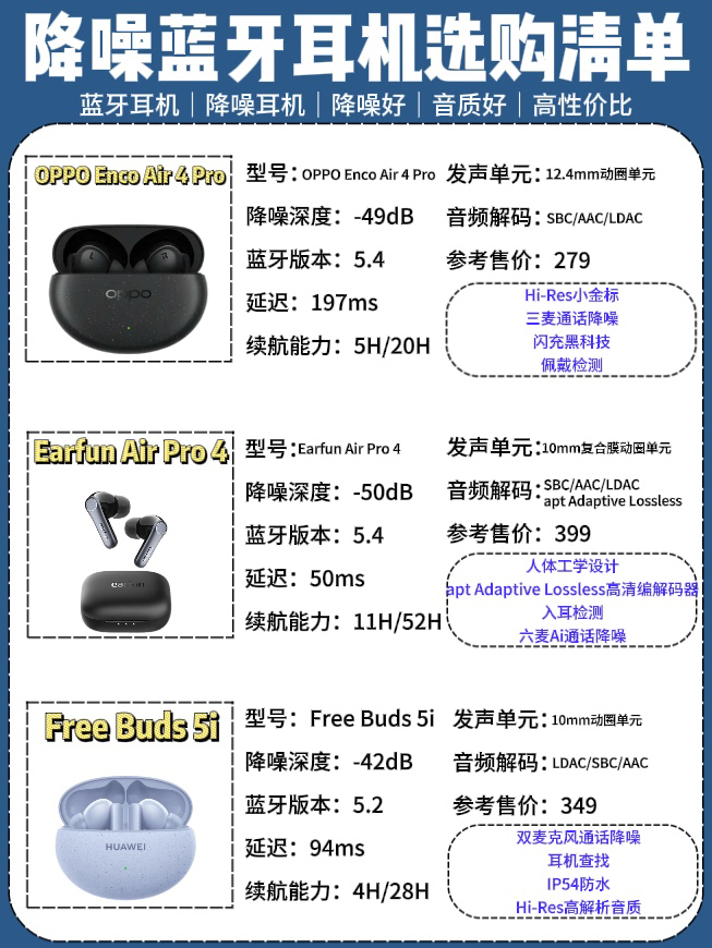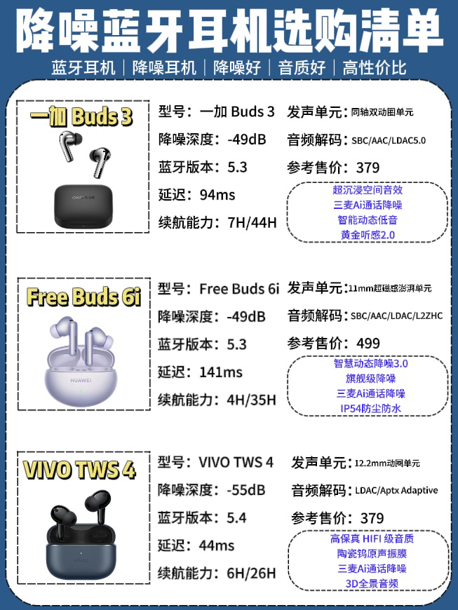 本篇笔记关联了HUAWEI/华为 FreeBuds 5i 入耳式 蓝牙耳机 真无线 主动降噪 超长续航 通话 运动 轻巧 低延迟 陶瓷白、FIIL/斐耳 Key Pro 入耳式 蓝牙 耳机 真无线 低延迟 智能降噪 长续航 高音质 切换模式 深海寻踪、OnePlus/一加 Buds 3 入耳式 蓝牙耳机 超清晰同轴双单元 深度降噪 超长续航 旗舰音质 真无线 通话 深空灰等商品,为用户提供真实的使用体验和购买参考。