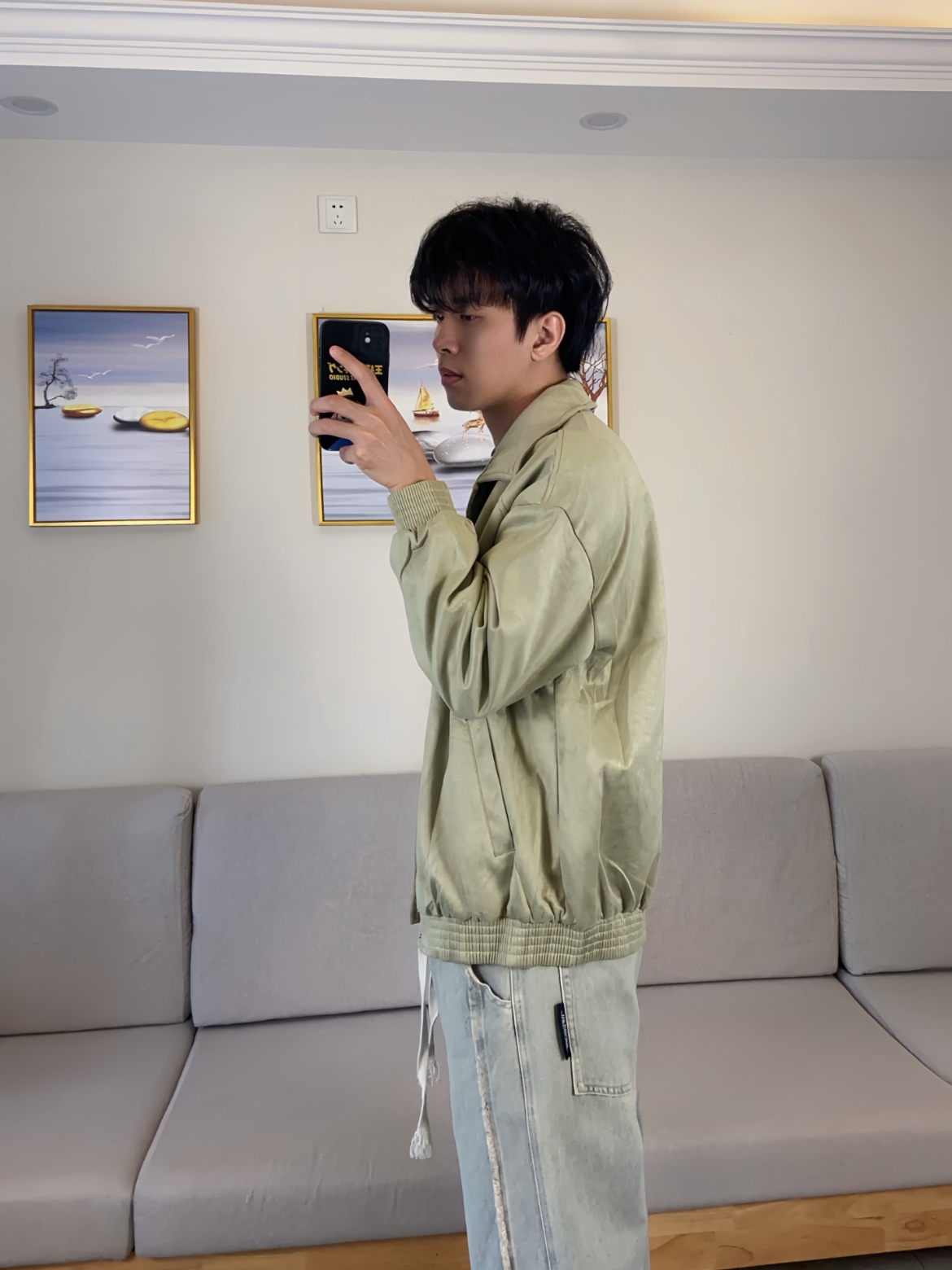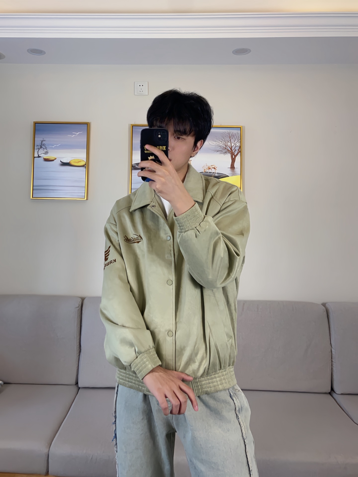 最近天气变冷了,一直在穿川崎的夹克外套,帅爆了。豆绿色真的是百穿不腻,每次穿都帅到我了。拿到手里就很有重量,穿上去版型很挺括,很显身材。很喜欢它的面料,摸着很有质感,穿上身很舒服。而且秋天穿还特别暖和,出街穿搭牛仔裤,简简单单又帅气。 (图片来自网络,侵删)