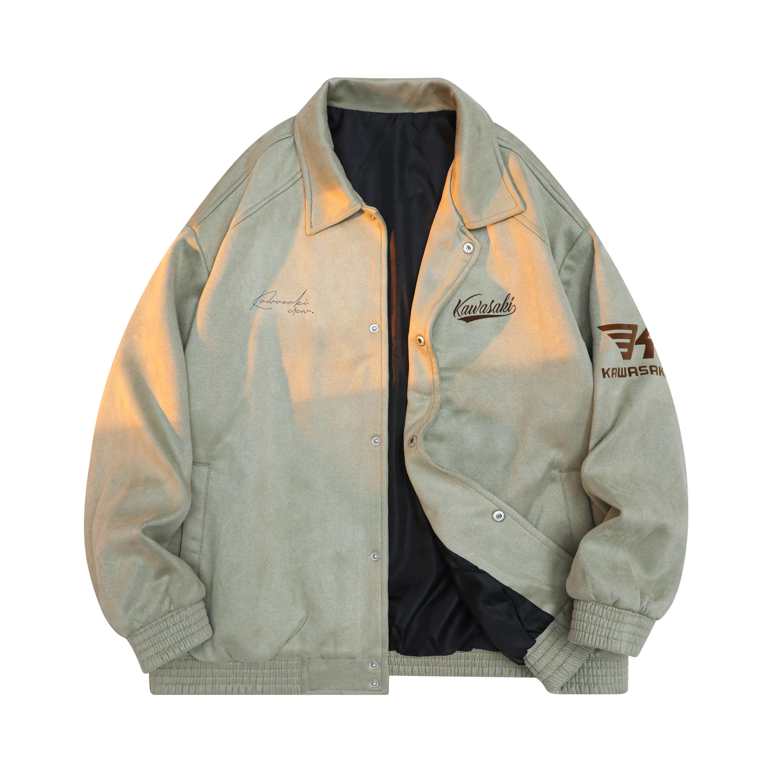 本篇笔记关联了川崎 签名字体麂皮绒纯色防风按扣翻领夹克 KSMDBL8911YH080 豆绿 等商品,为用户提供真实的使用体验和购买参考。