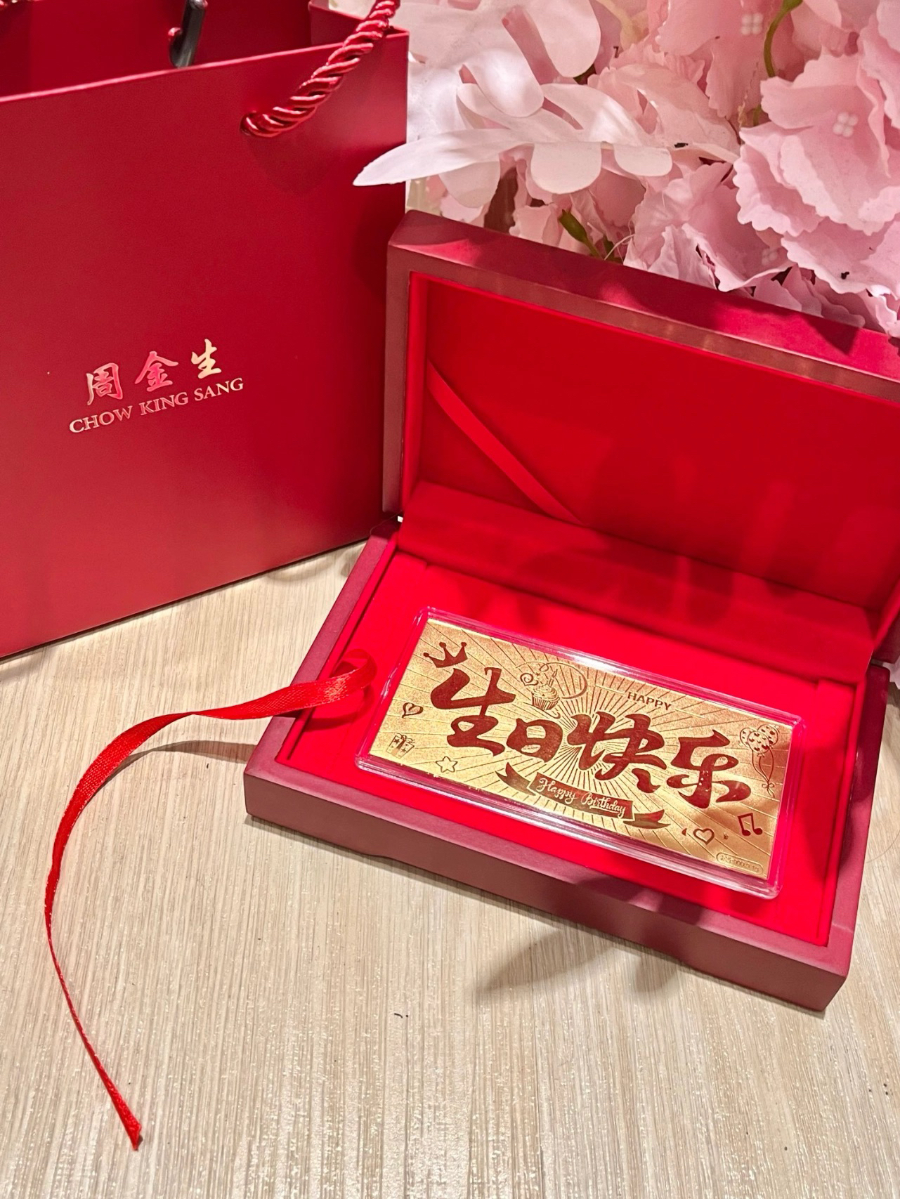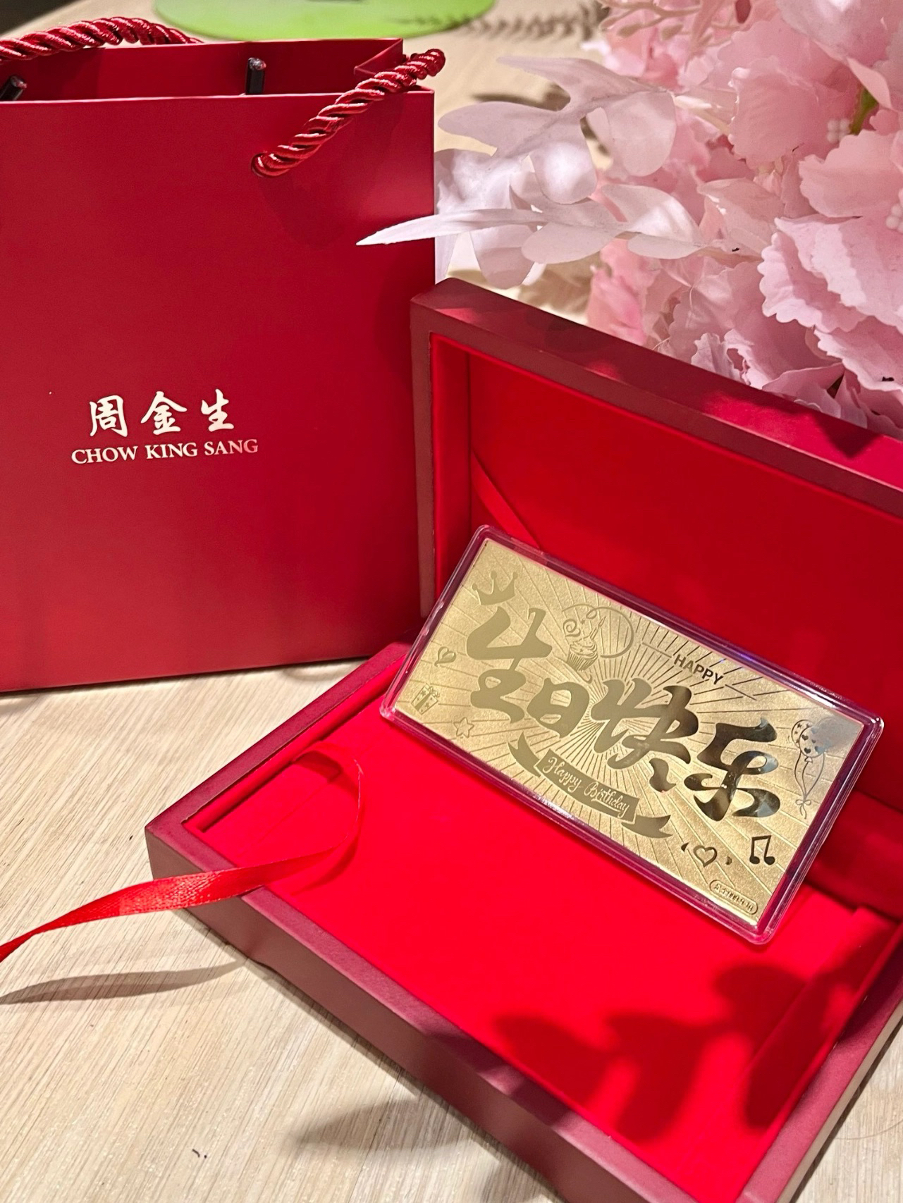 每年母亲节都好苦恼! 我妈是个节俭的全职妈妈🤱🏻 很追求实用有价值的礼物🎁 上年买了一束玫瑰花🌹给她,她责骂我乱花钱,不到一天玫瑰花就凋谢了! 所以今年干脆定制周金生这款足金小金条,刻上生日快乐的字样,希望她身体健康,幸福快乐! 图源网络,侵删