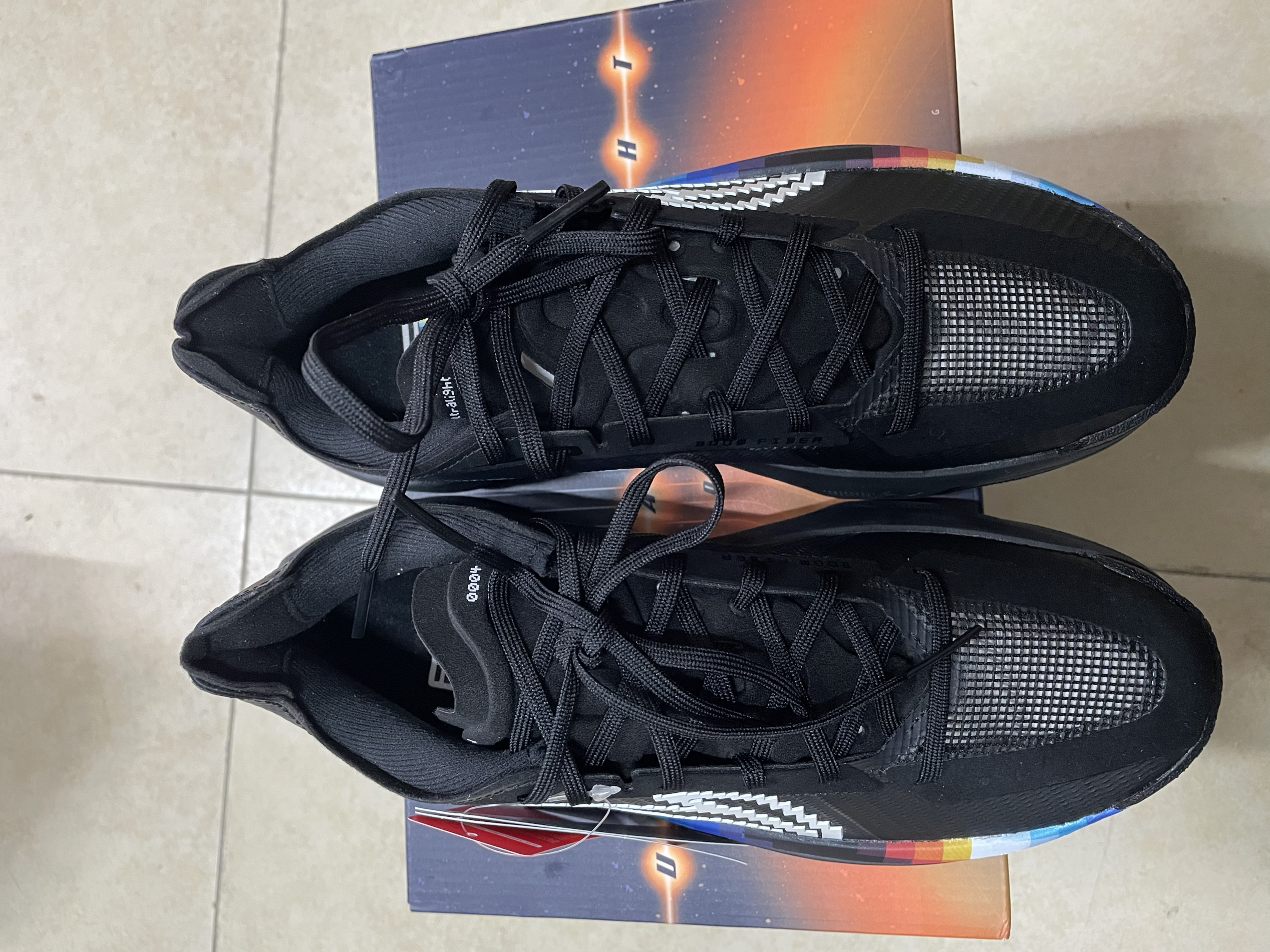 刚打开鞋盒这双鞋的颜值还是非常高的 拿在手上非常的轻 几乎感受不到鞋子的重量 是近10年来最轻的篮球鞋之一 鞋楦舒适微宽不挤脚 适合多数脚型 透气性佳 且在急停时能很好地兜住脚 支撑性强 脚感韧弹 启动迅速又轻又弹又贴地 X型TPU前叉到前掌 提供推动力前掌趾骨位置适当削薄 跑动发力流畅