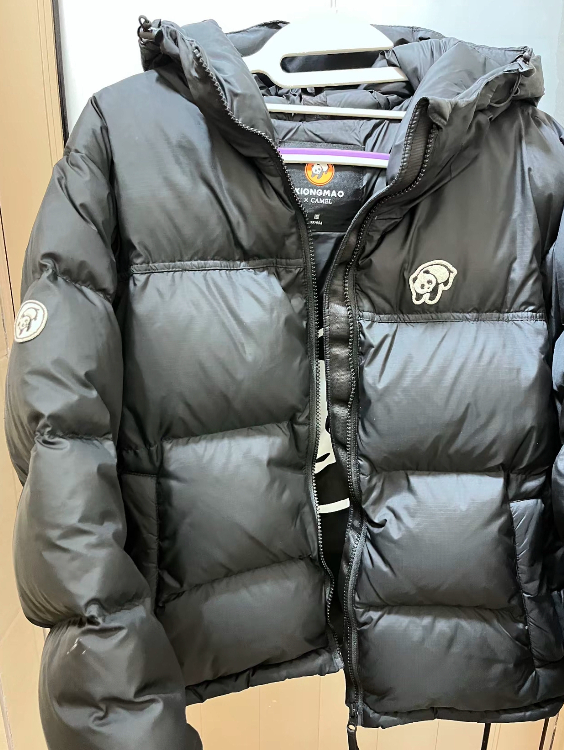 喜欢简约款黑色羽绒服的直接闭眼冲 是跟骆驼 联名的 但是比骆驼的要便宜 价格超级香 充绒量够大 超级蓬松 也不显臃胂很板正 里面内里印有一个可爱大熊猫炒鸡有辨识度 口袋拉链设计 口袋内里也毛茸茸的很暖和 随便一截都很好看 真的七八百的质量 建议你们 都买回去试试 包好看的🤩🤩🤩