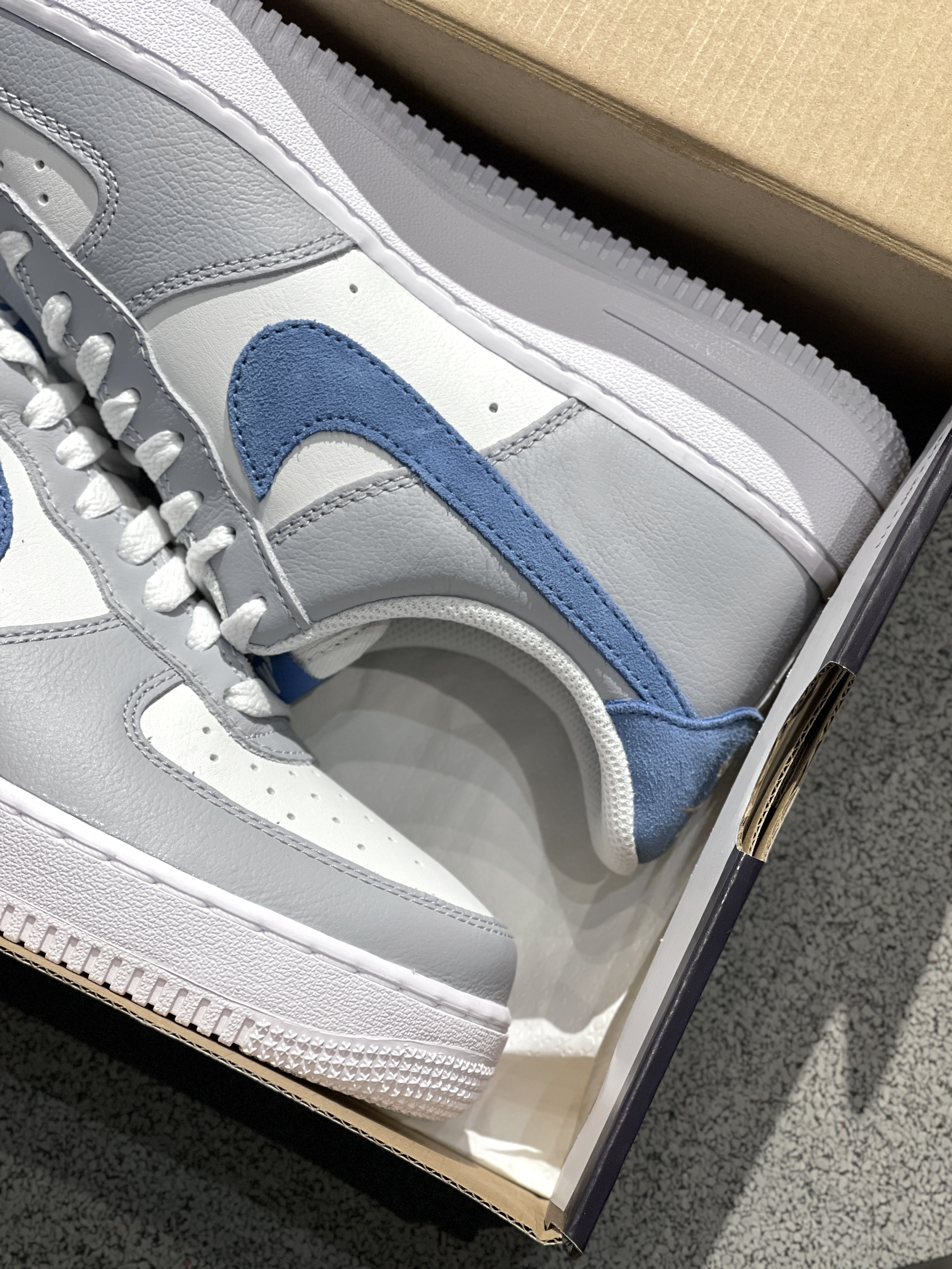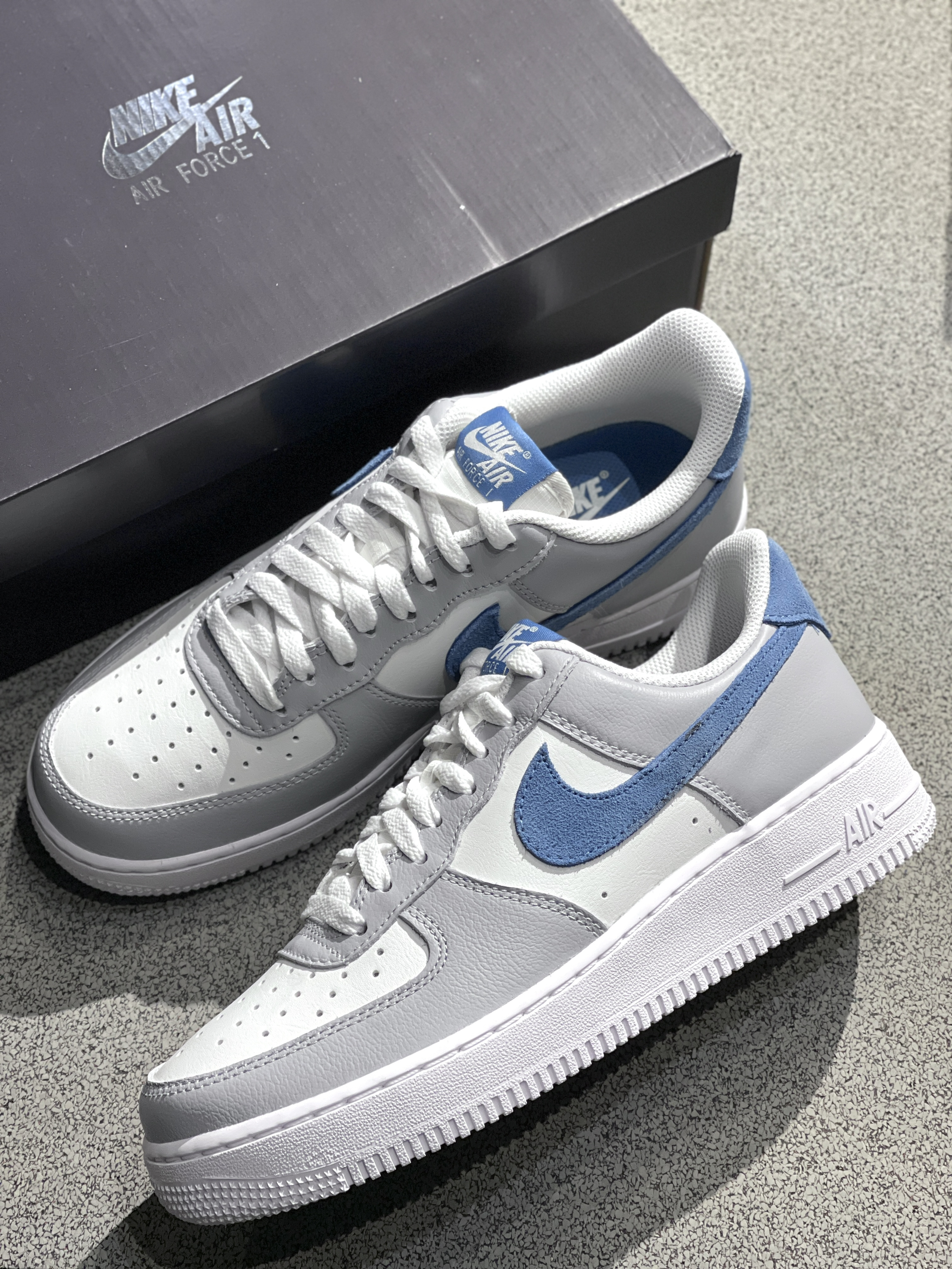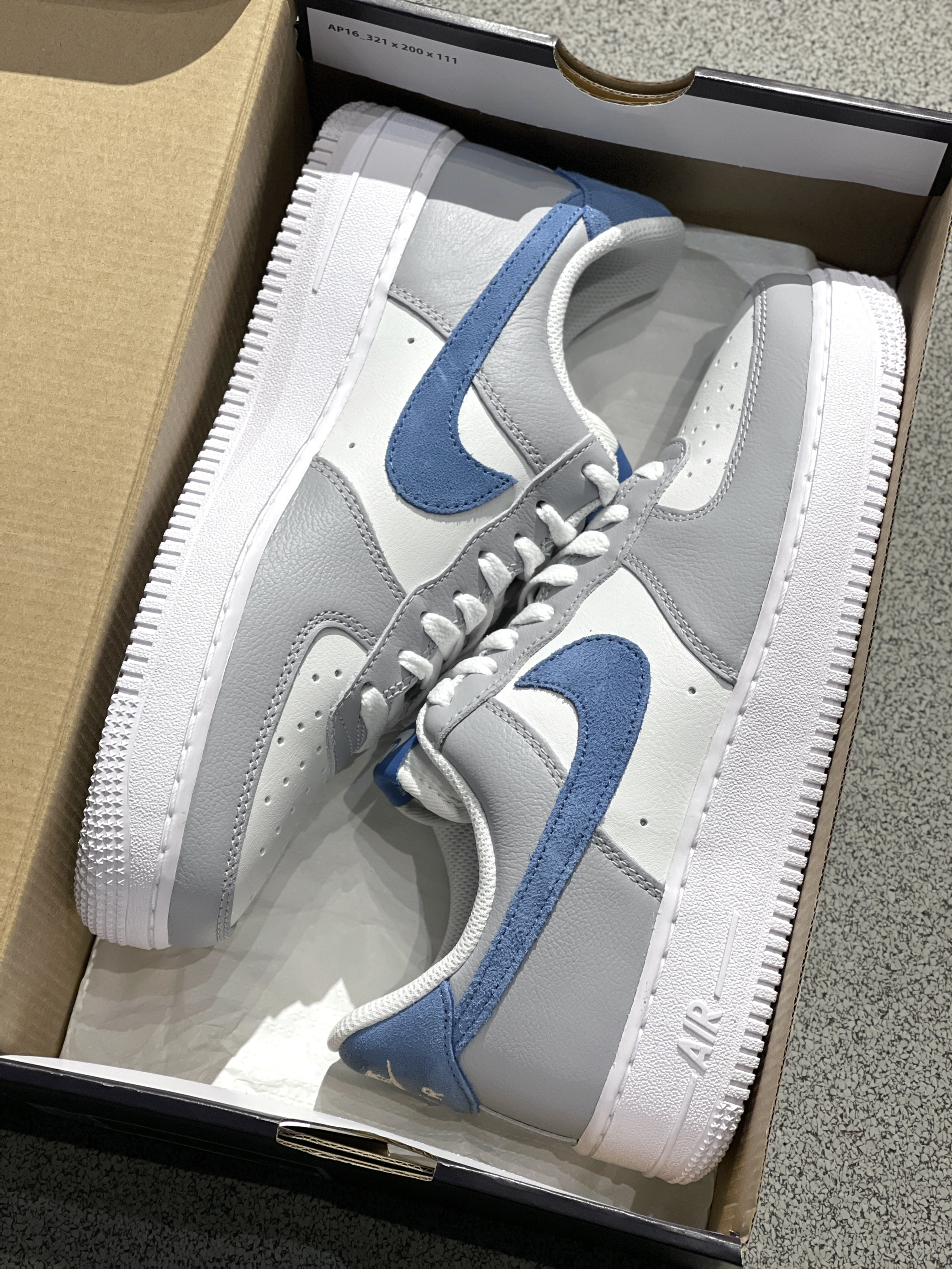 发现一双Nike全新配色空军一号,少年感满满! Nike|Air Force 1 '07 LV8 AF1低帮板鞋“蓝白色”🚹,实物开箱少年感十足!🧢经典空军一号鞋型,白灰拼接➕蓝色麂皮Swoosh,整体层次感十足!带有Air气垫的大底,上脚有一定的增高效果哦!😎