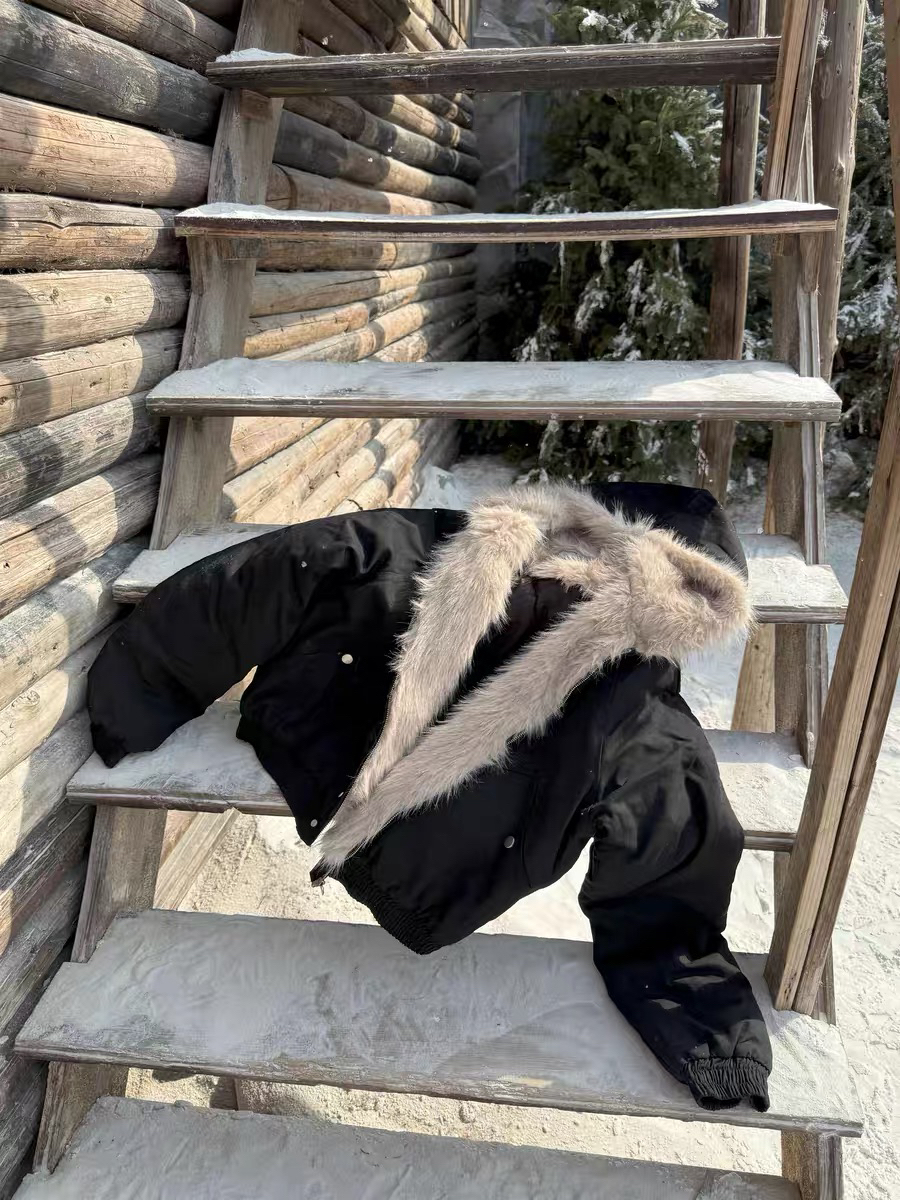 180/140 XL 毛绒棉服穿起来很暖,版型设计不错,穿着很帅 有氛围感