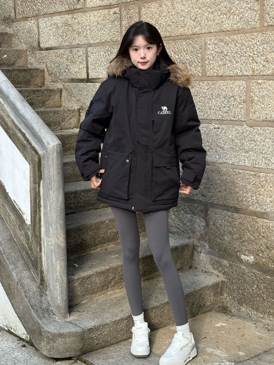 CAMEL骆驼家的这件羽绒服好保暖呀~还有一个毛茸茸的大帽子呢 版型宽松很百搭 一点都不挑人~ 再搭配威亚逊V.YERXU 家的小白鞋,休闲又好看 瑜伽裤可以说是我冬天的最爱啦!这一套好好看 喜欢~ 图源网络侵删