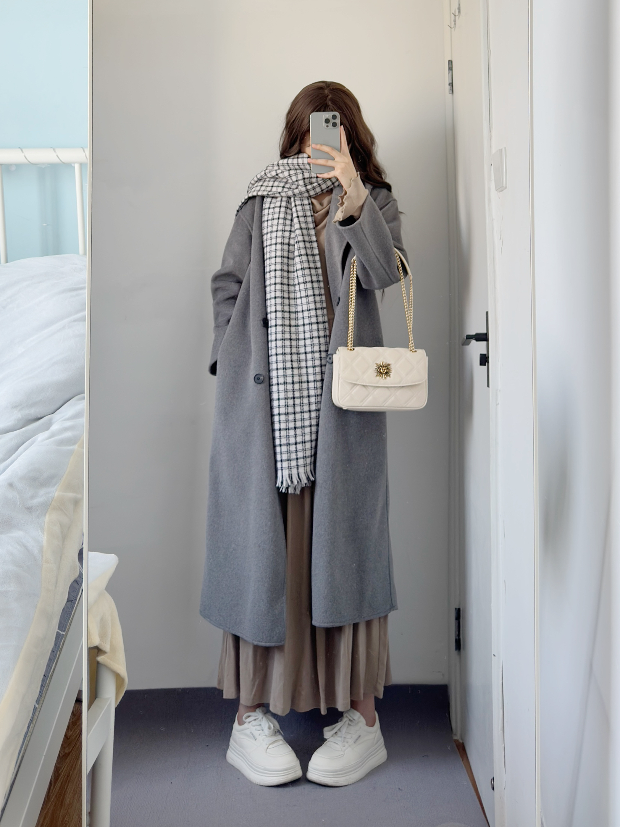 太喜欢灰色大衣带来的秋冬氛围感啦🍂 搭配我最近好爱的太阳神包包 菱格好有质感呀 上身很显气质显贵~