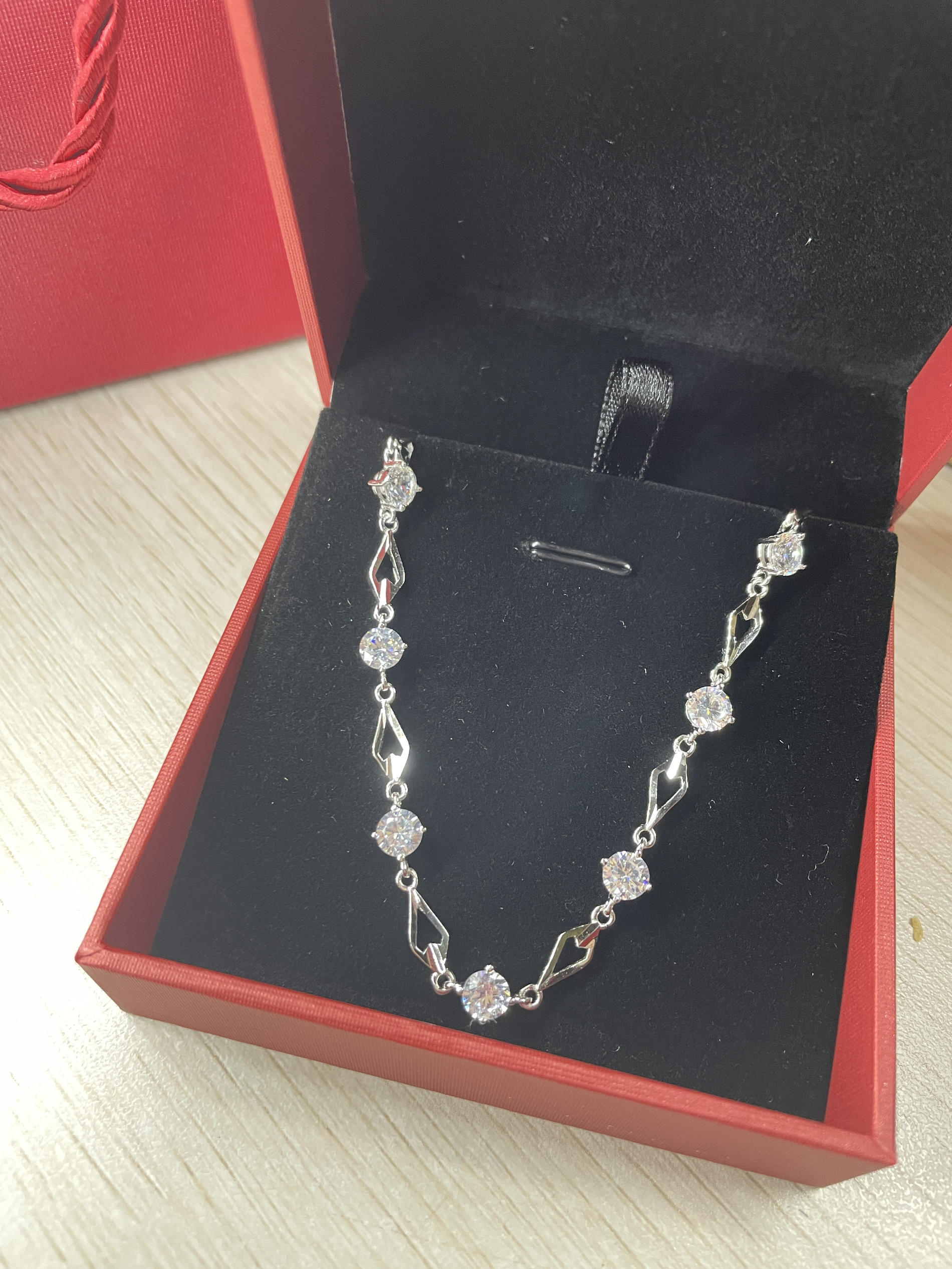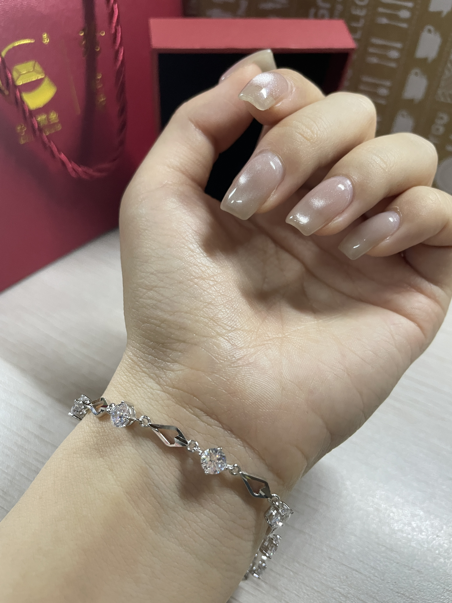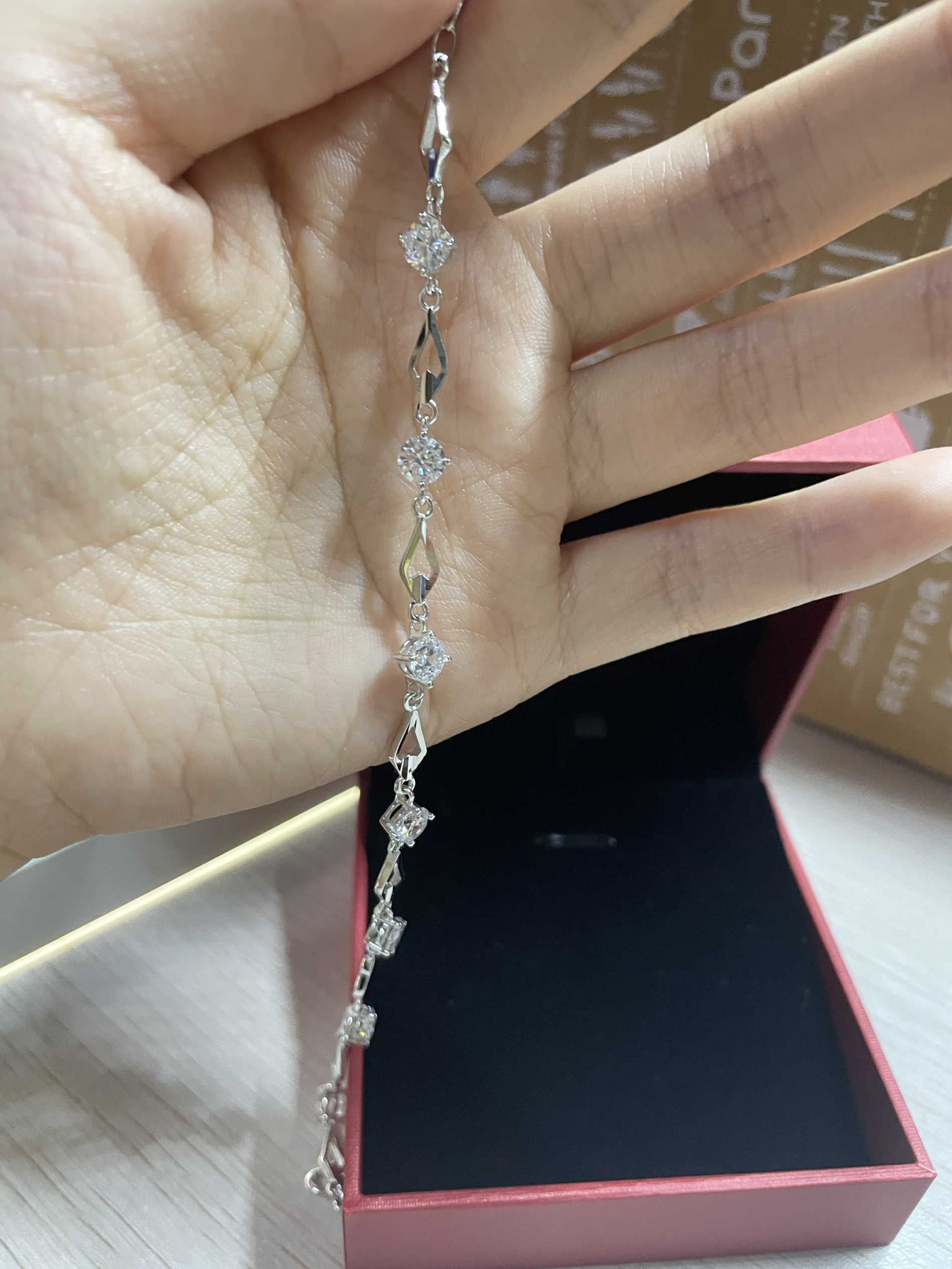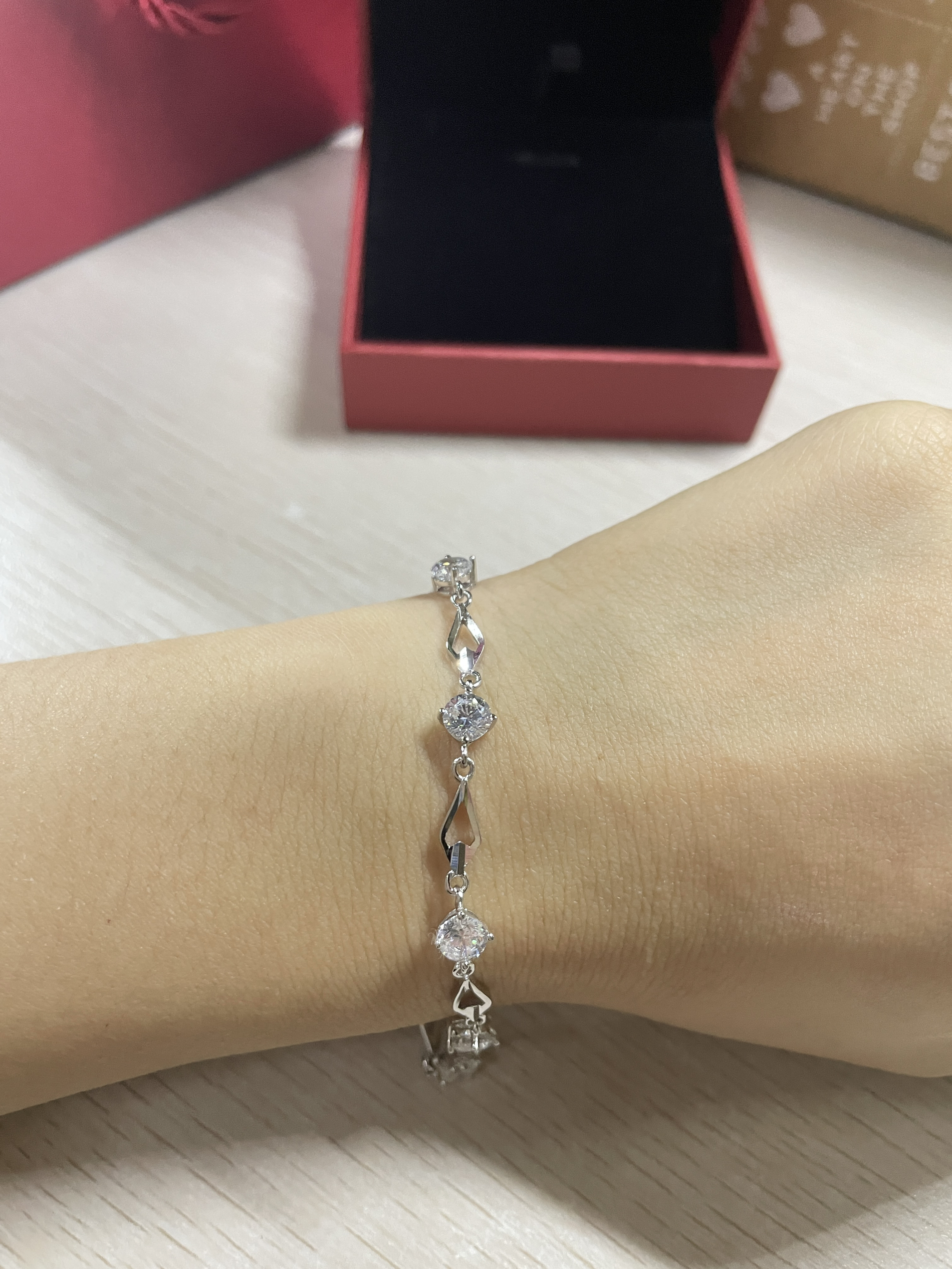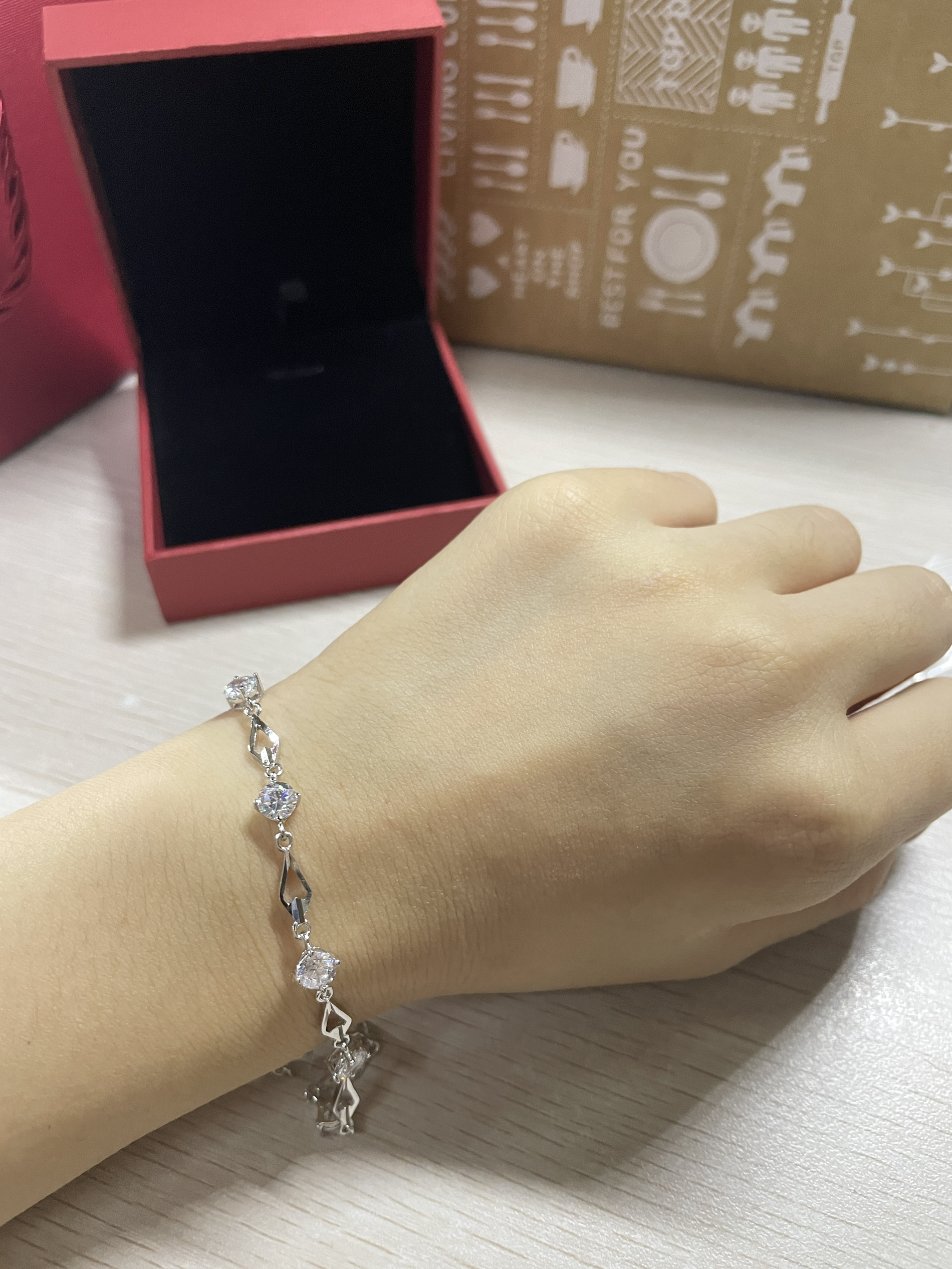 这款中国黄金的银手链也太太好看了吧!! 样式虽然看着简单,但十分有设计感。戴在手腕上显得手腕很细,超闪的钻真的bulingbuling的满足啦我“公主”的心❤️哦~ 最最主要的是!!它的价格只需百元,“中国黄金”的title无论是送朋友还是送女朋友都非常非常适合!! 是一款自用送礼都非常美丽的手链哇哇哇!!!😍😍