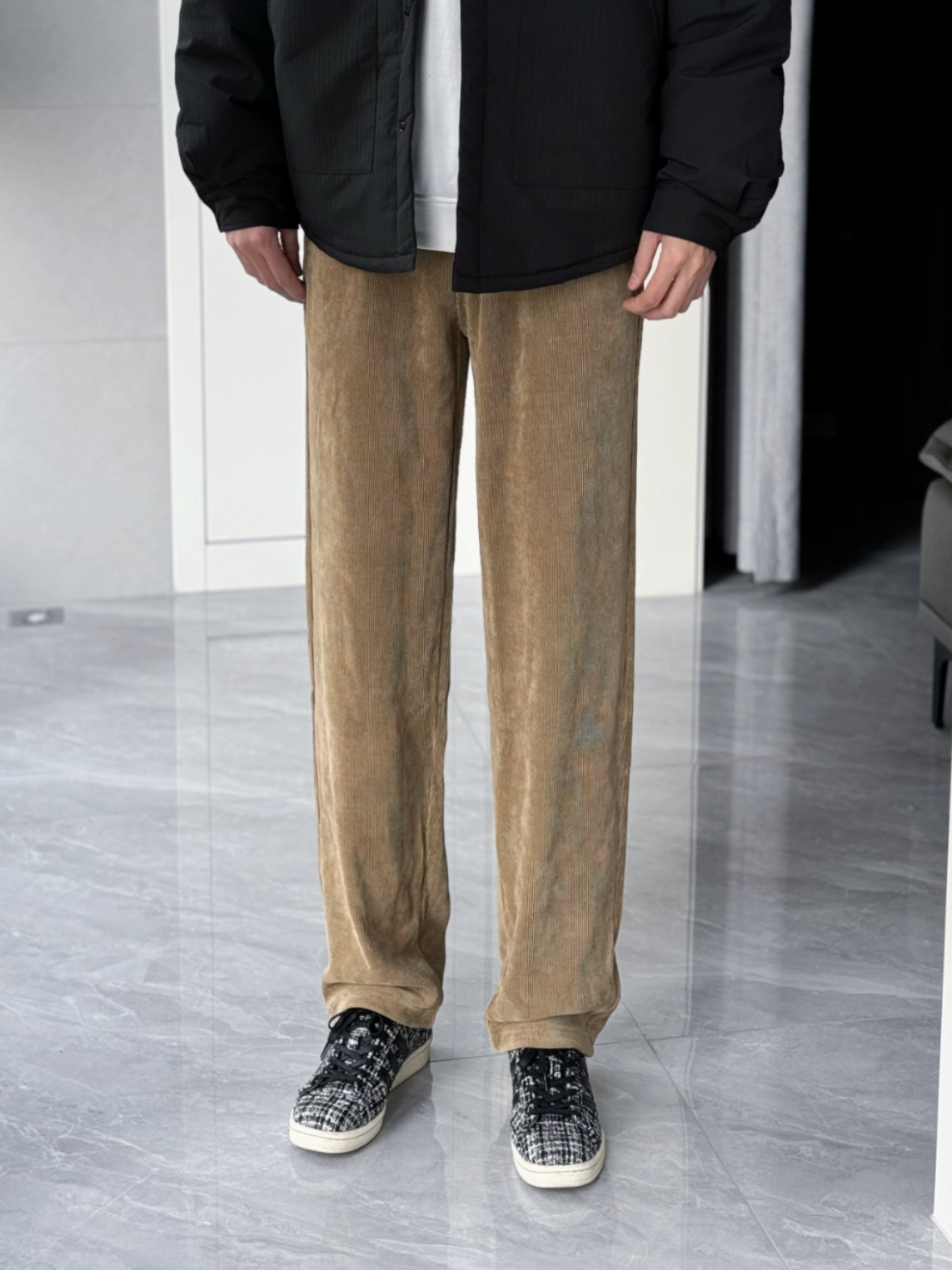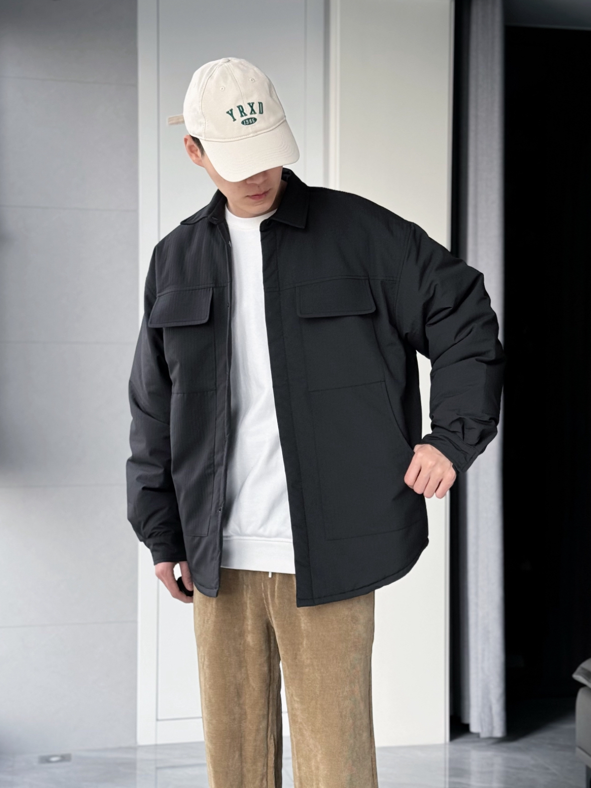 日常通勤还是得休闲感穿搭 💯 简约的剪裁和版型 才是实穿单品的要义 不得不说上深下浅的搭配法则 还是很好用 像是这种衬衣样式的棉服外套 给人干净利落的感觉 而且保暖两不误 ✔️ 内搭卫衣选白色 就是简简单单的效果 裤子方面 当然还是选择秋冬极具质感的灯芯绒 🤎 垂感 亲肤感都还是很友好的 颜色太喜欢了‼️ 整体搭配下来 舒适感拉满
