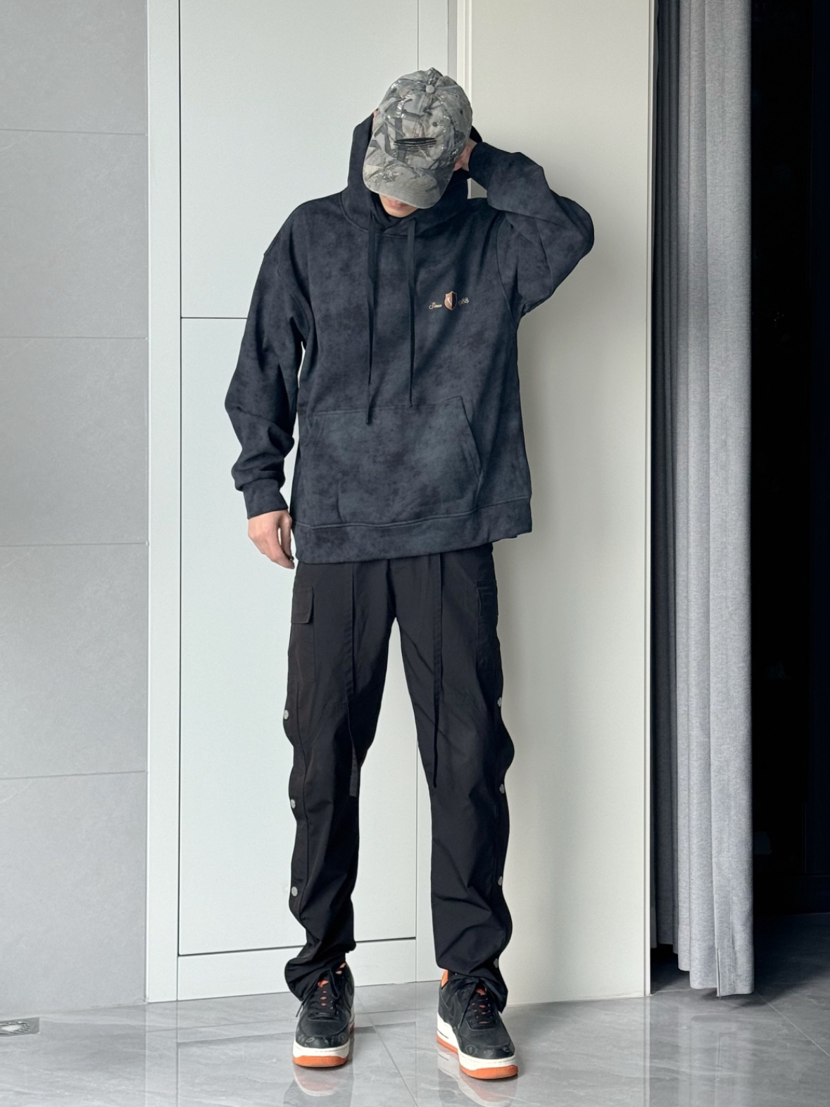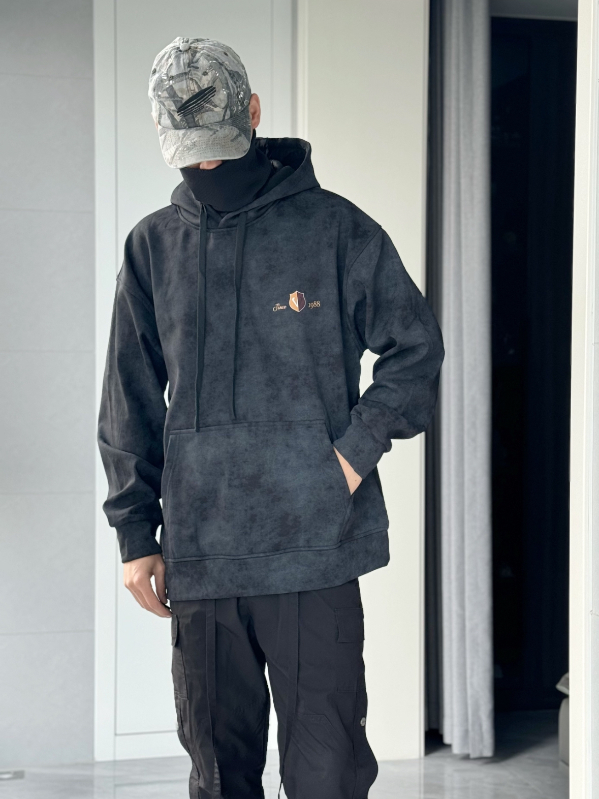 天冷了 不得不说我最爱的单品 秋冬季节离不开的连帽卫衣 就是喜欢这种简约又不简单的设计 黑色水洗扎染的效果 加上美式街头风印花 有一说一 确实挺酷的 🆒 而且还有一层高领的加持 保暖实用性拉满 美式街头氛围感连帽卫衣 Get ✔️