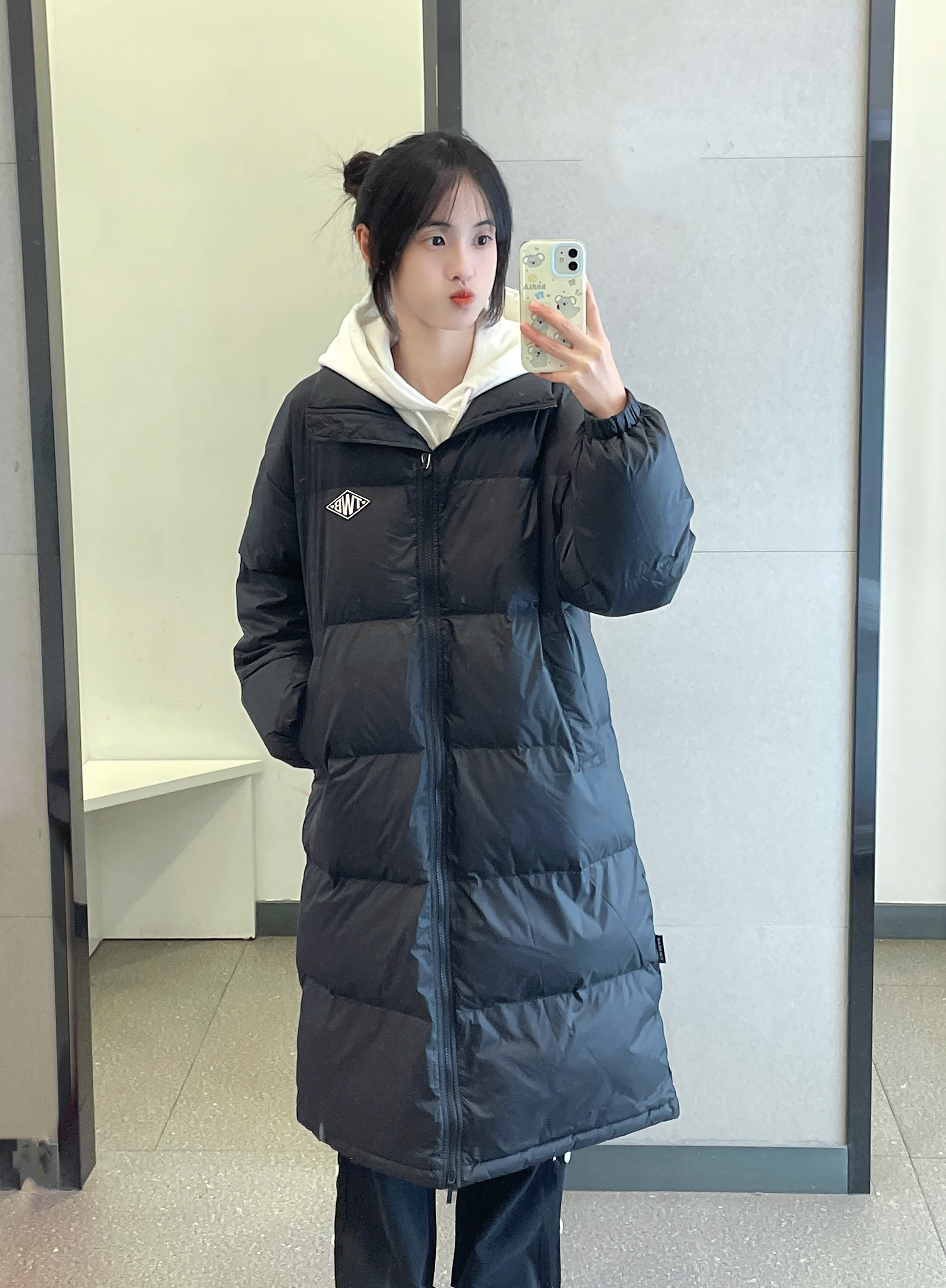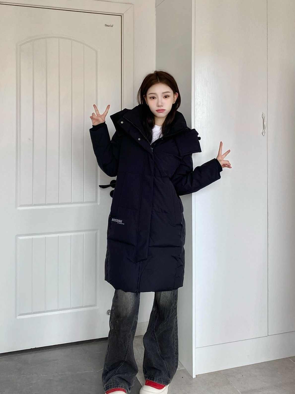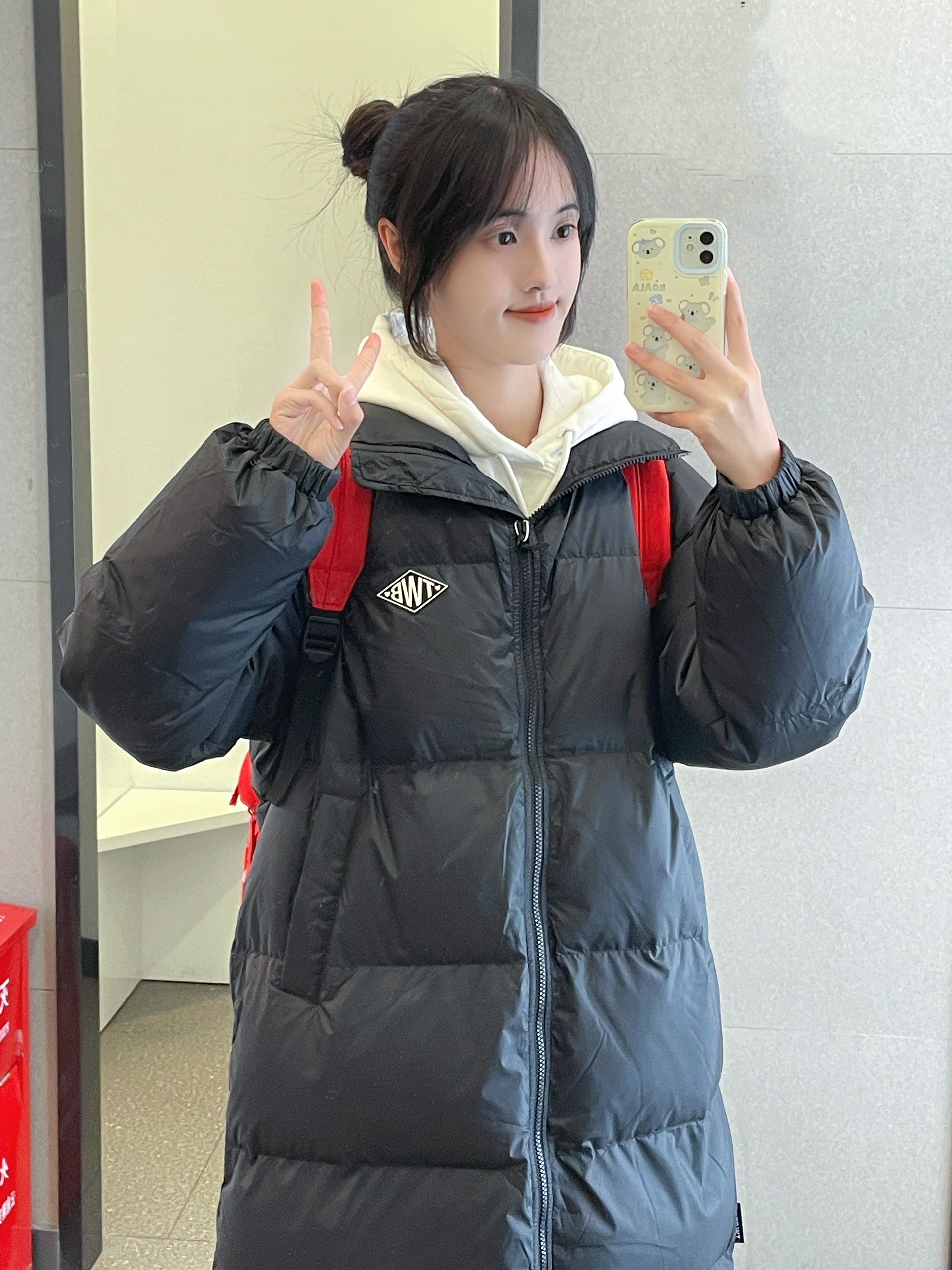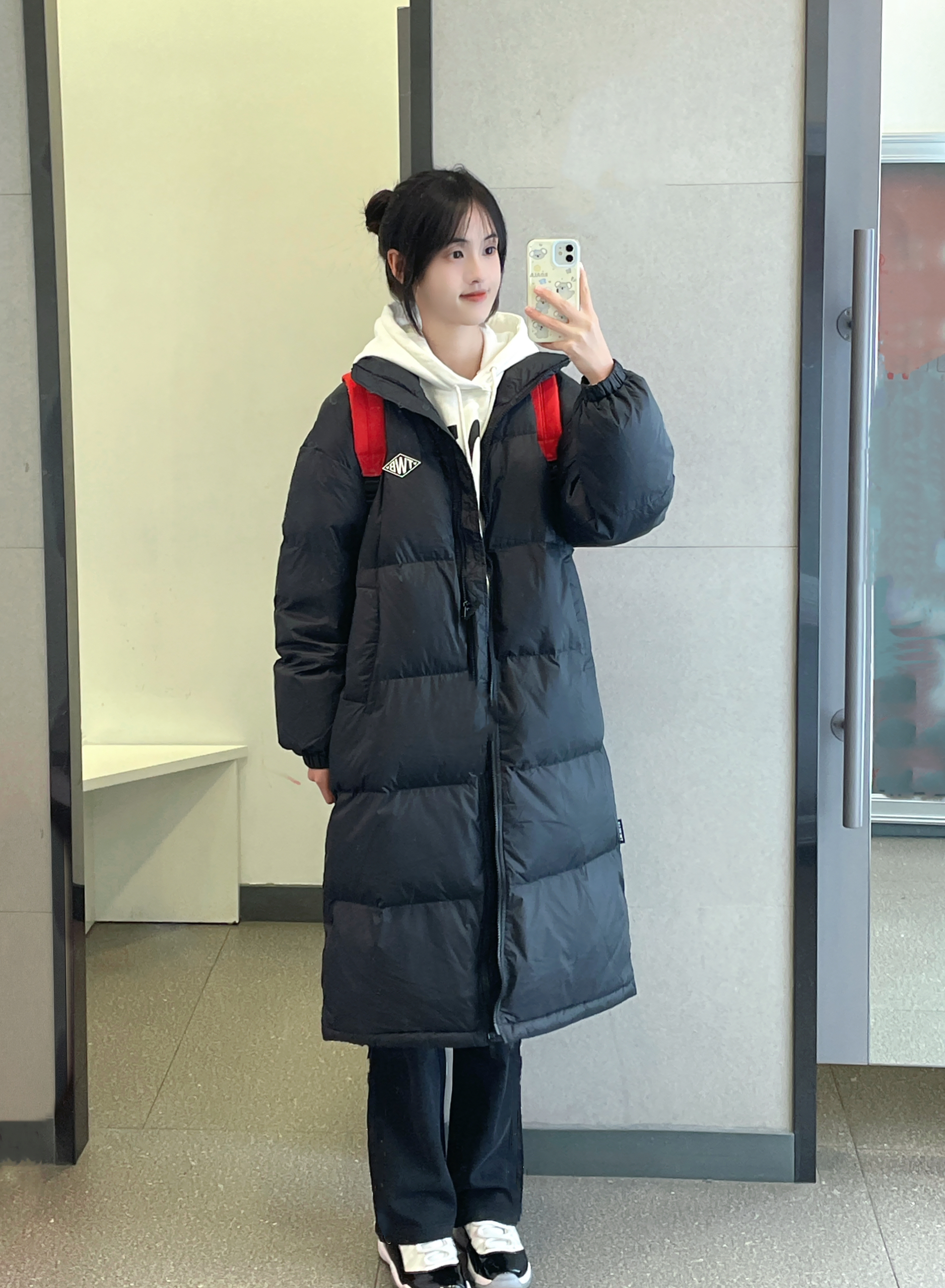 👔 :teenie weenie黑色长款羽绒服 🎒 :Kappa红色书包 👟 :aj11康扣