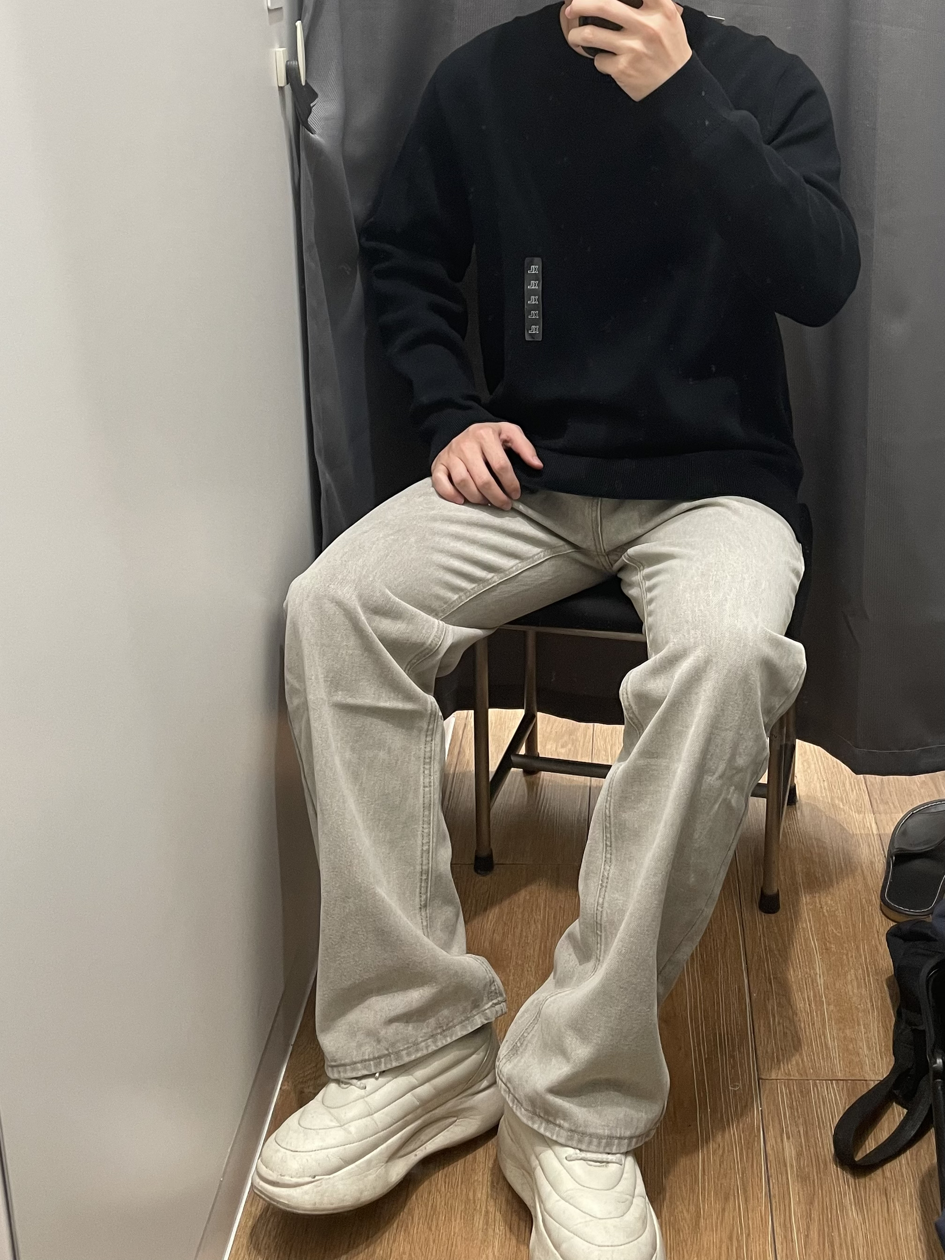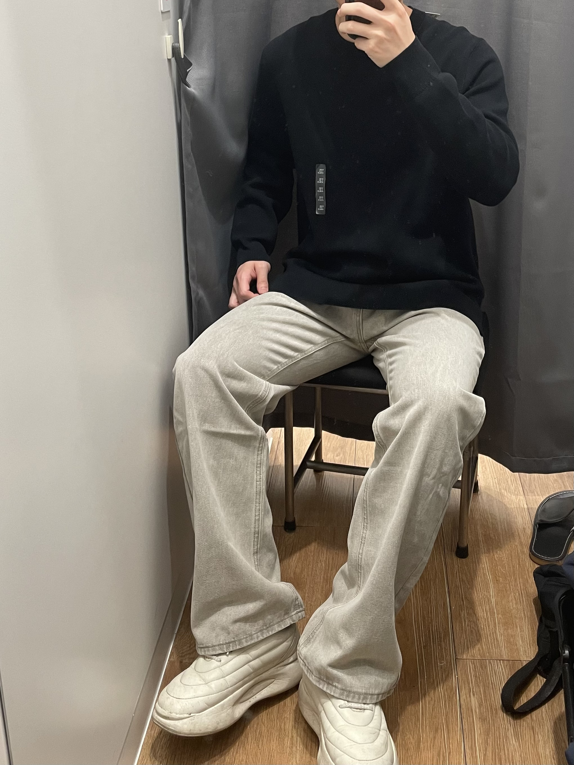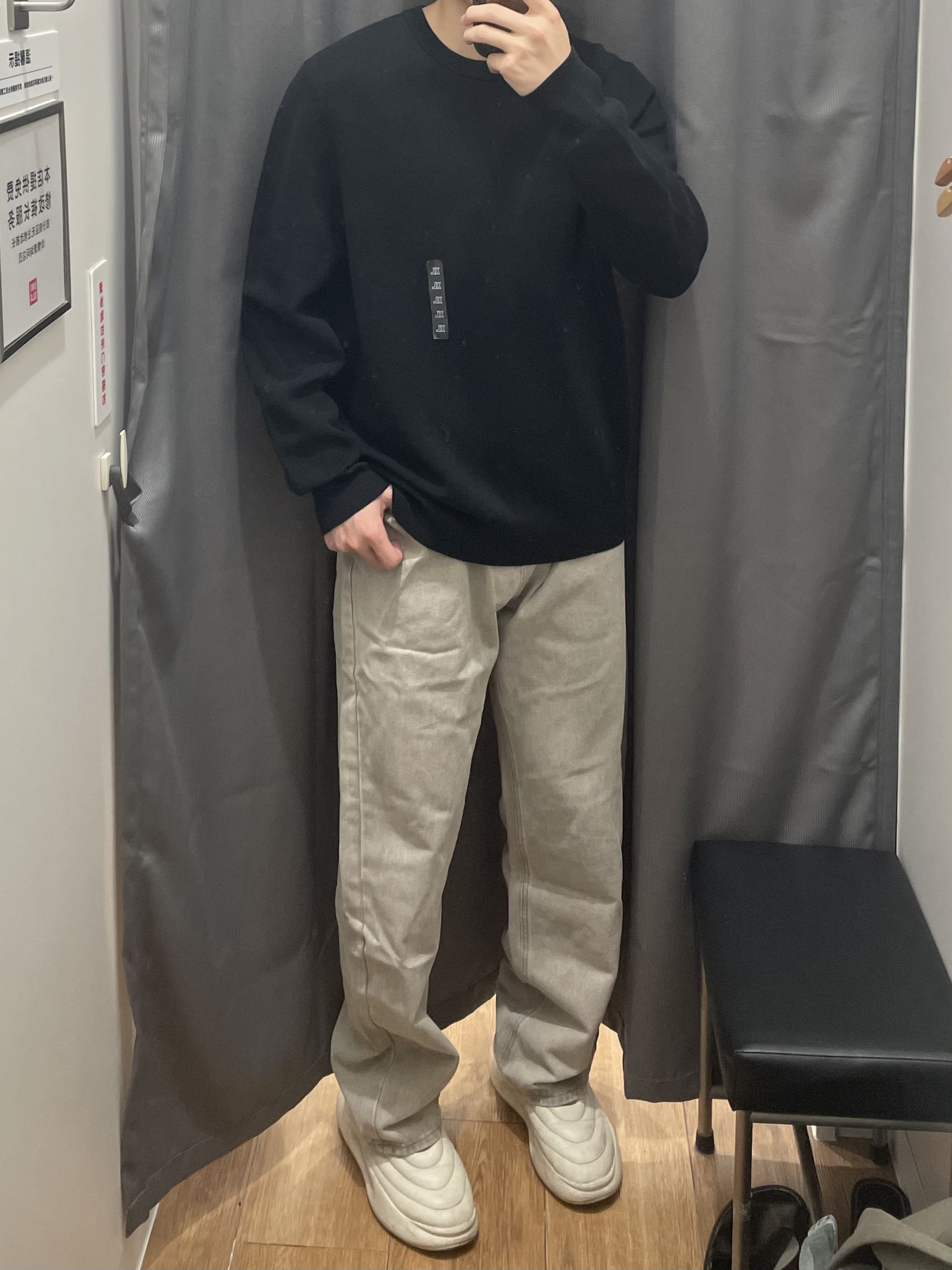 浅灰色宽松直筒牛仔 怎么搭配怎么好看 而且也很厚实 穿起来好舒服诶!!