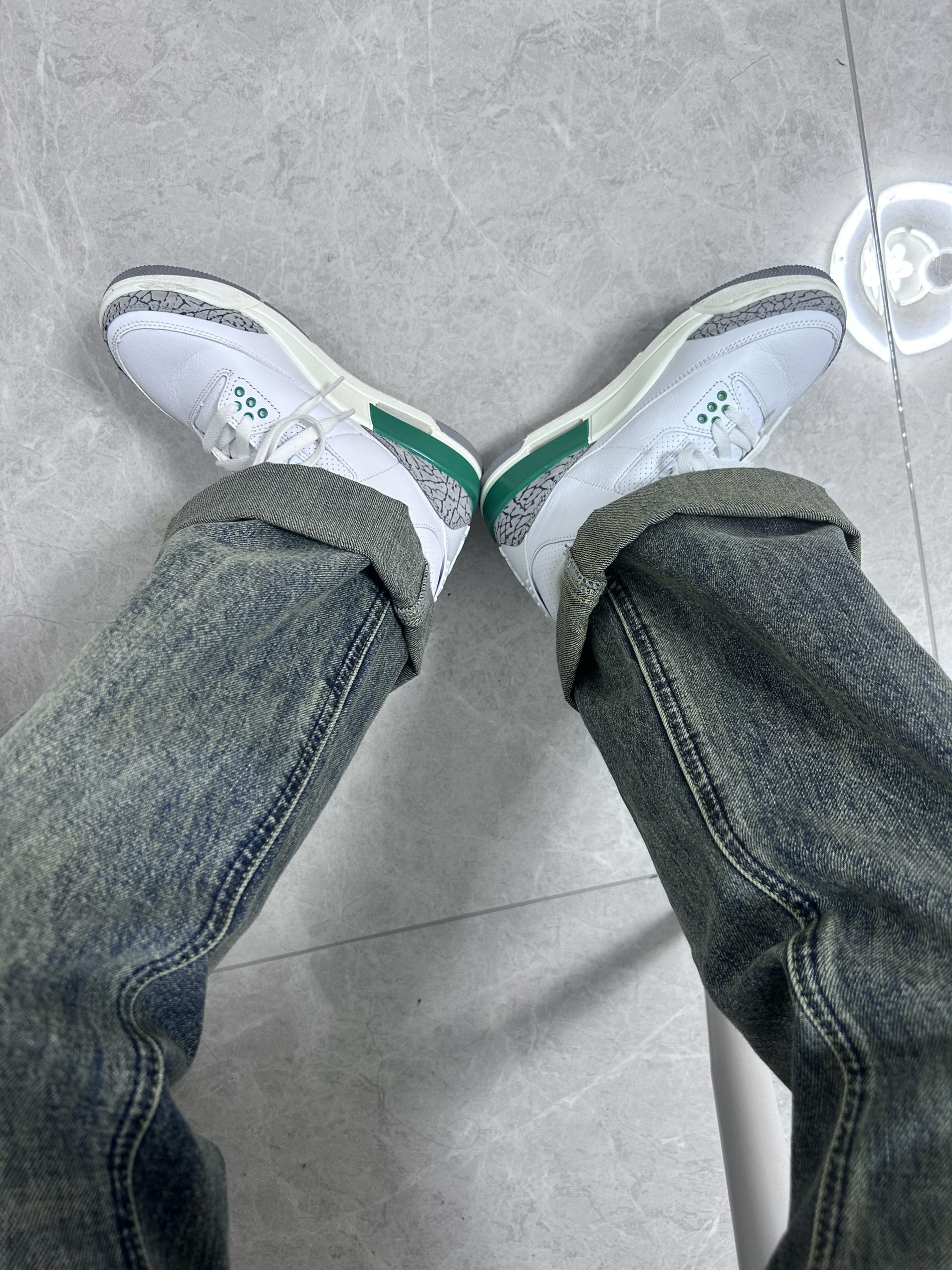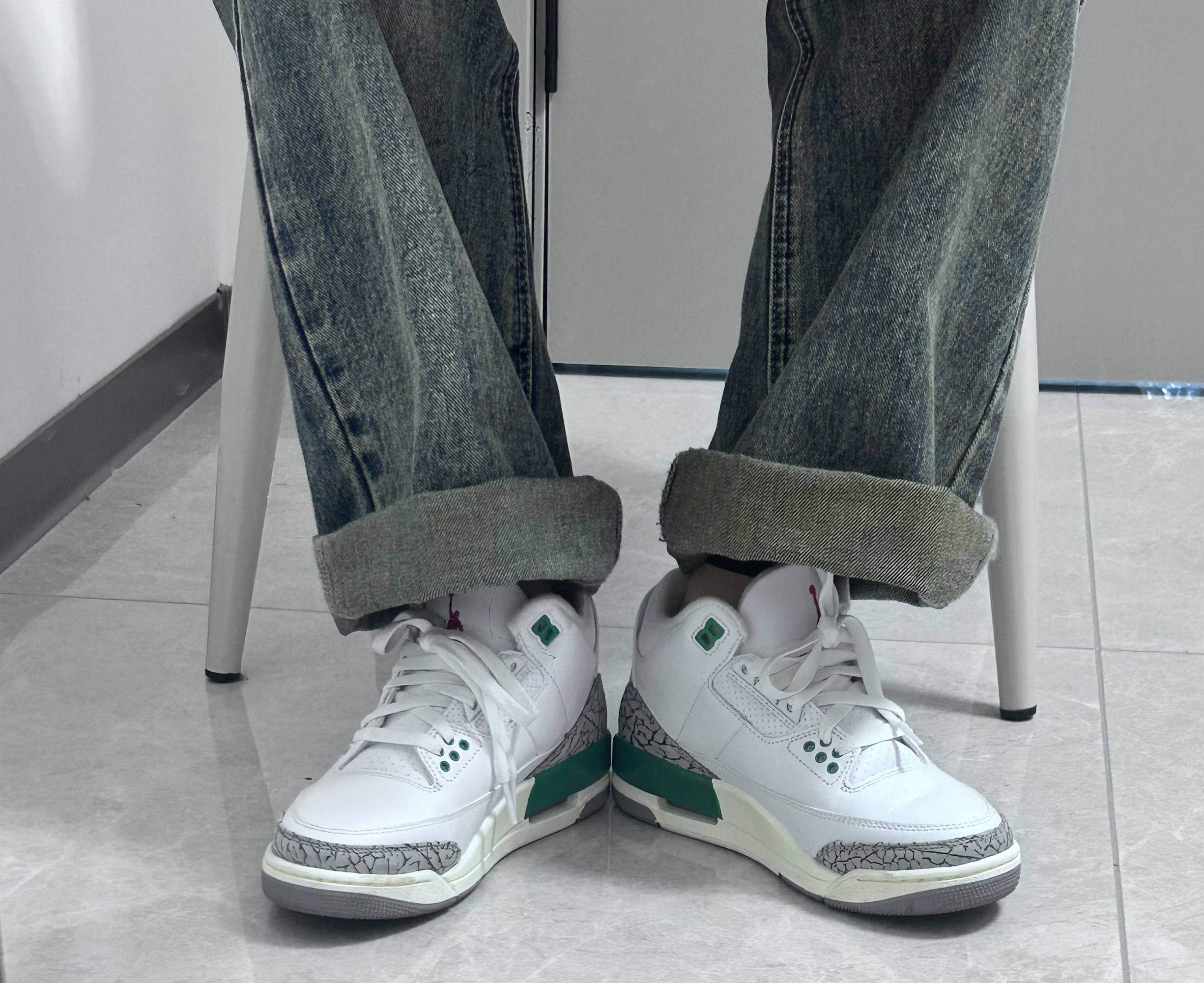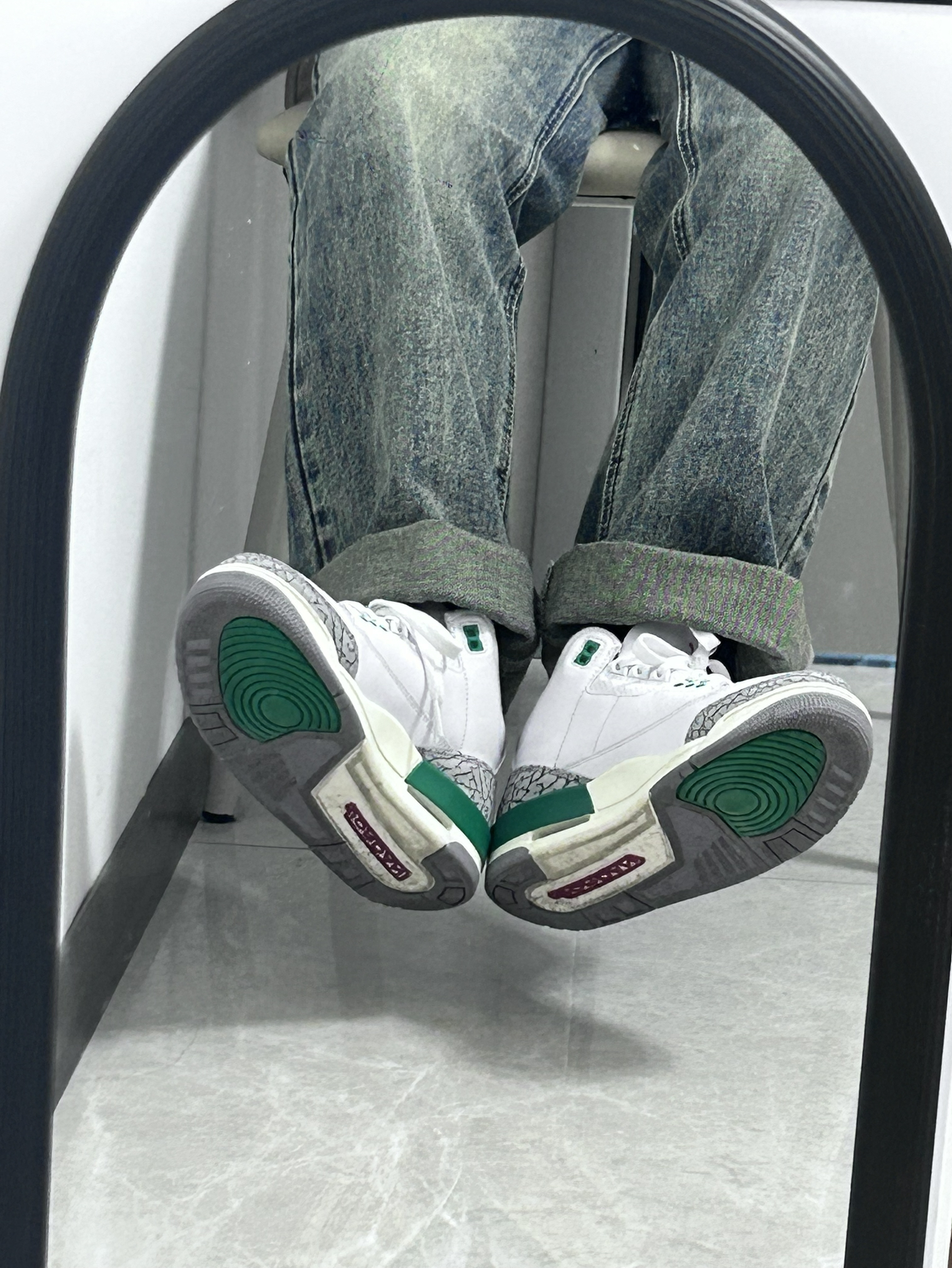 👟球鞋名称:aj3绿水泥 📌是否偏码:码数很正 颜色很清新,很适合那种白白净净的校草,虽然我是女生,但是也能看出来有点小帅的感觉,鞋里面很厚实,夏天穿的话会有一点捂脚,秋冬很适合!这个颜色特别杀我,上脚也很舒适,很上镜!