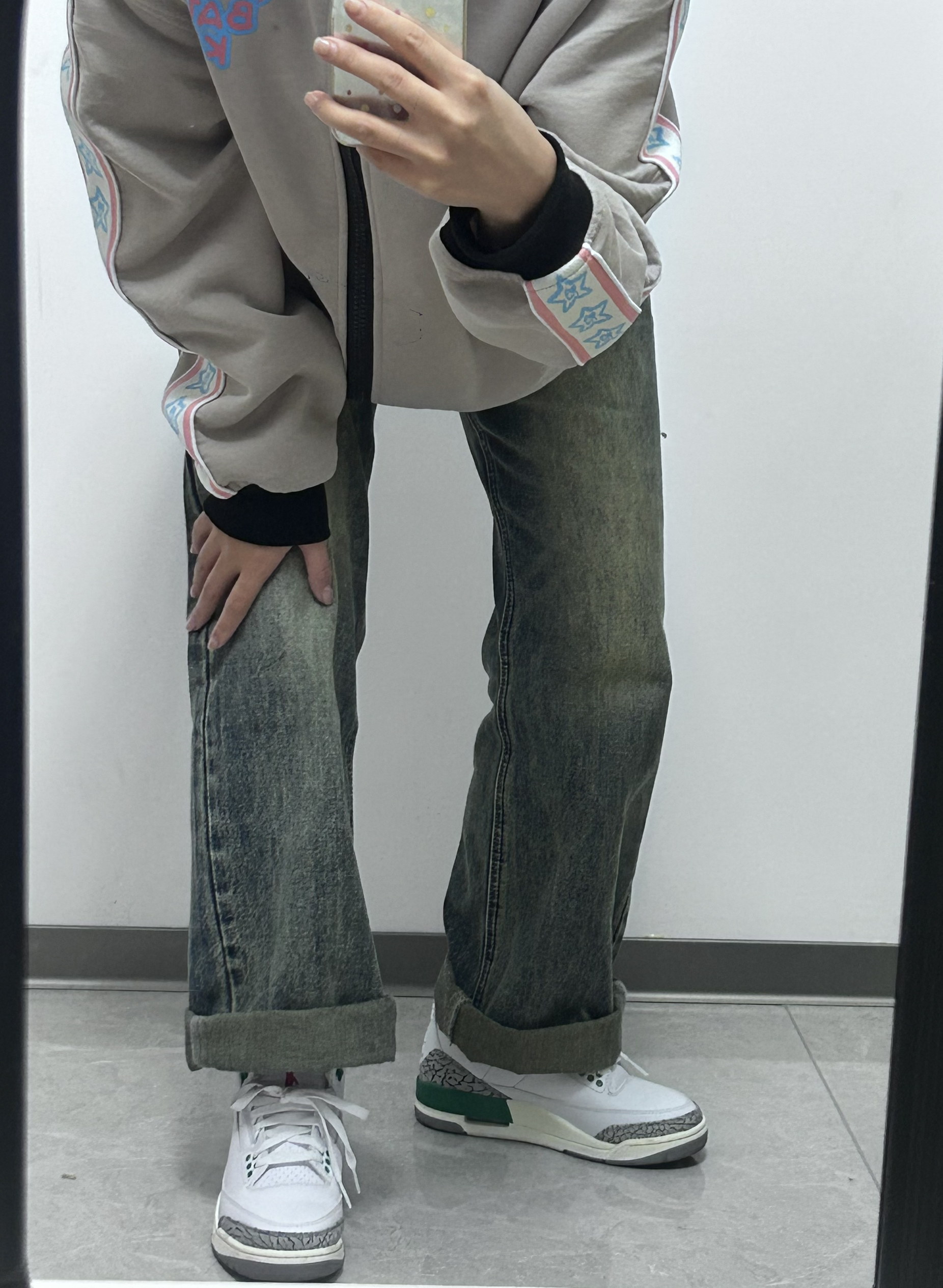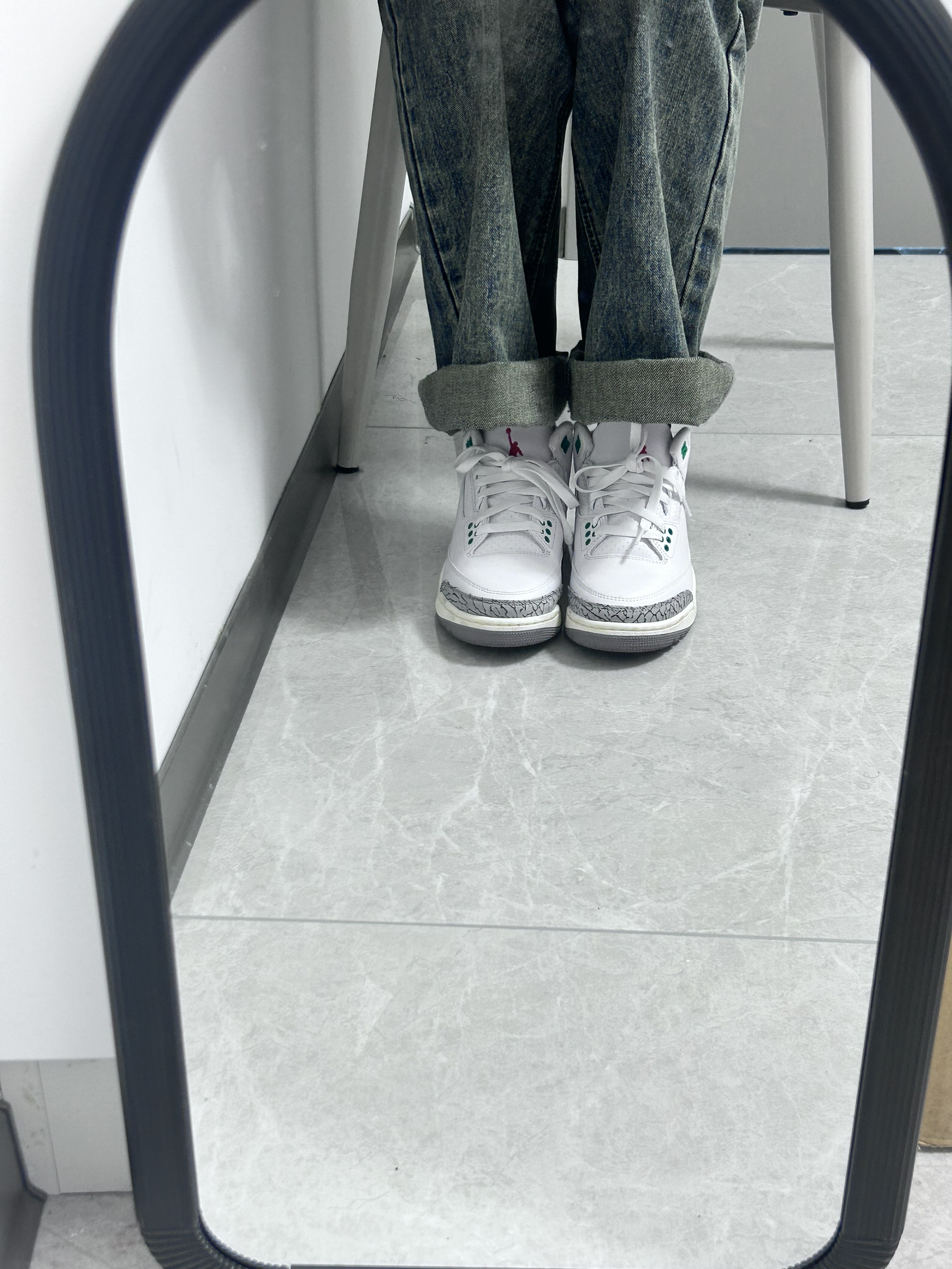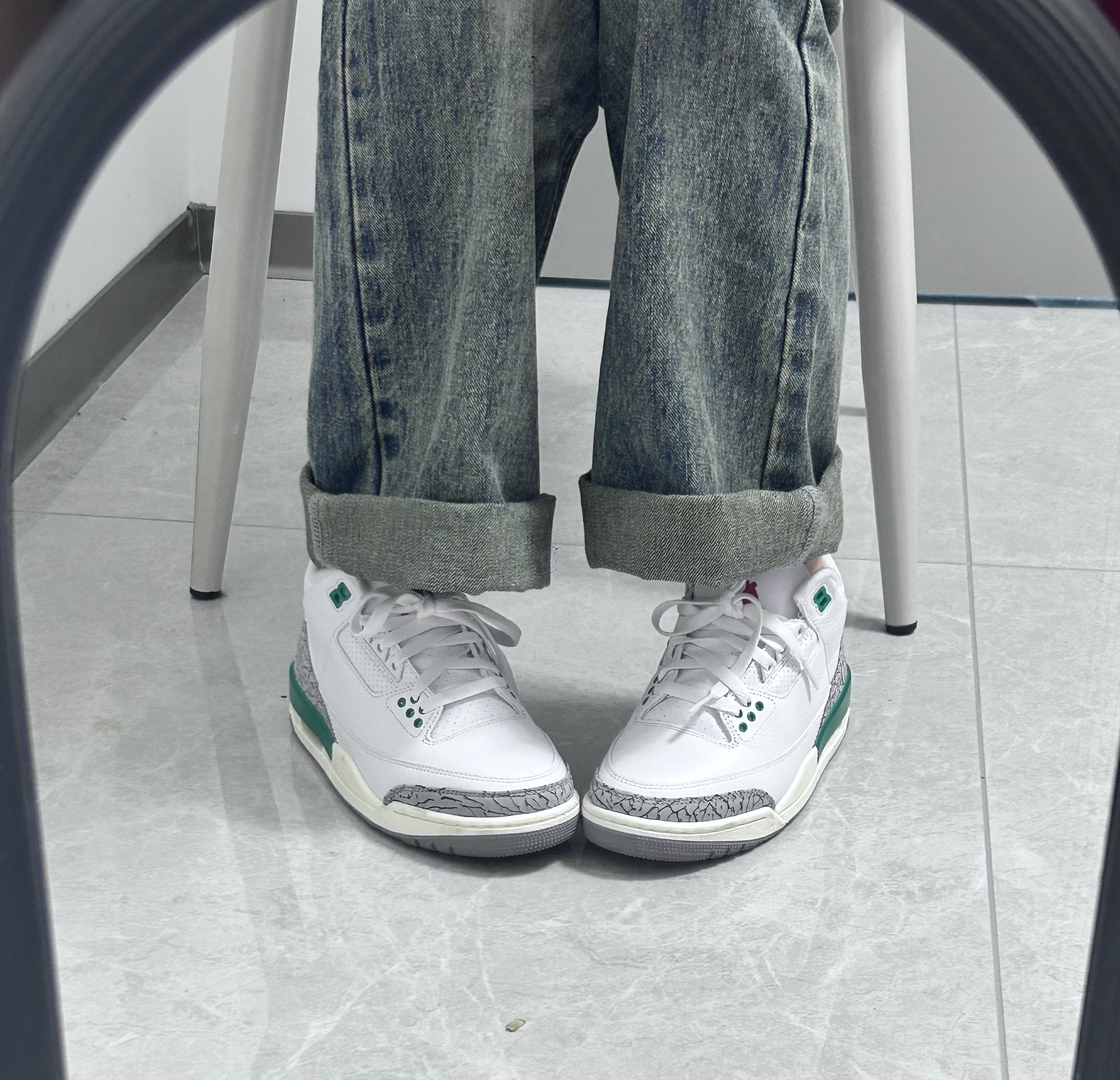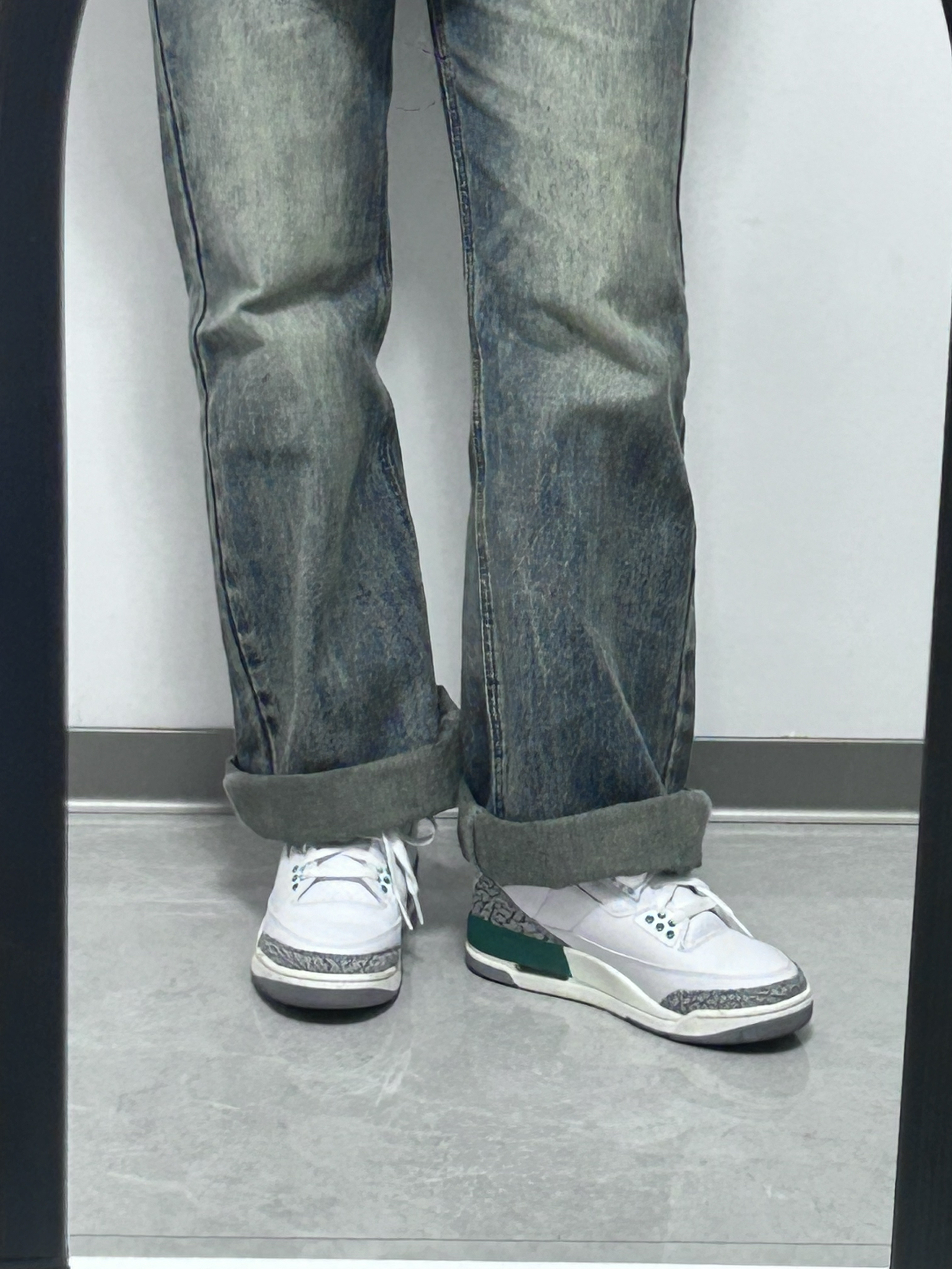 👟球鞋名称:aj3绿水泥 📌是否偏码:码数很正 颜色很清新,很适合那种白白净净的校草,虽然我是女生,但是也能看出来有点小帅的感觉,鞋里面很厚实,夏天穿的话会有一点捂脚,秋冬很适合!这个颜色特别杀我,上脚也很舒适,很上镜!