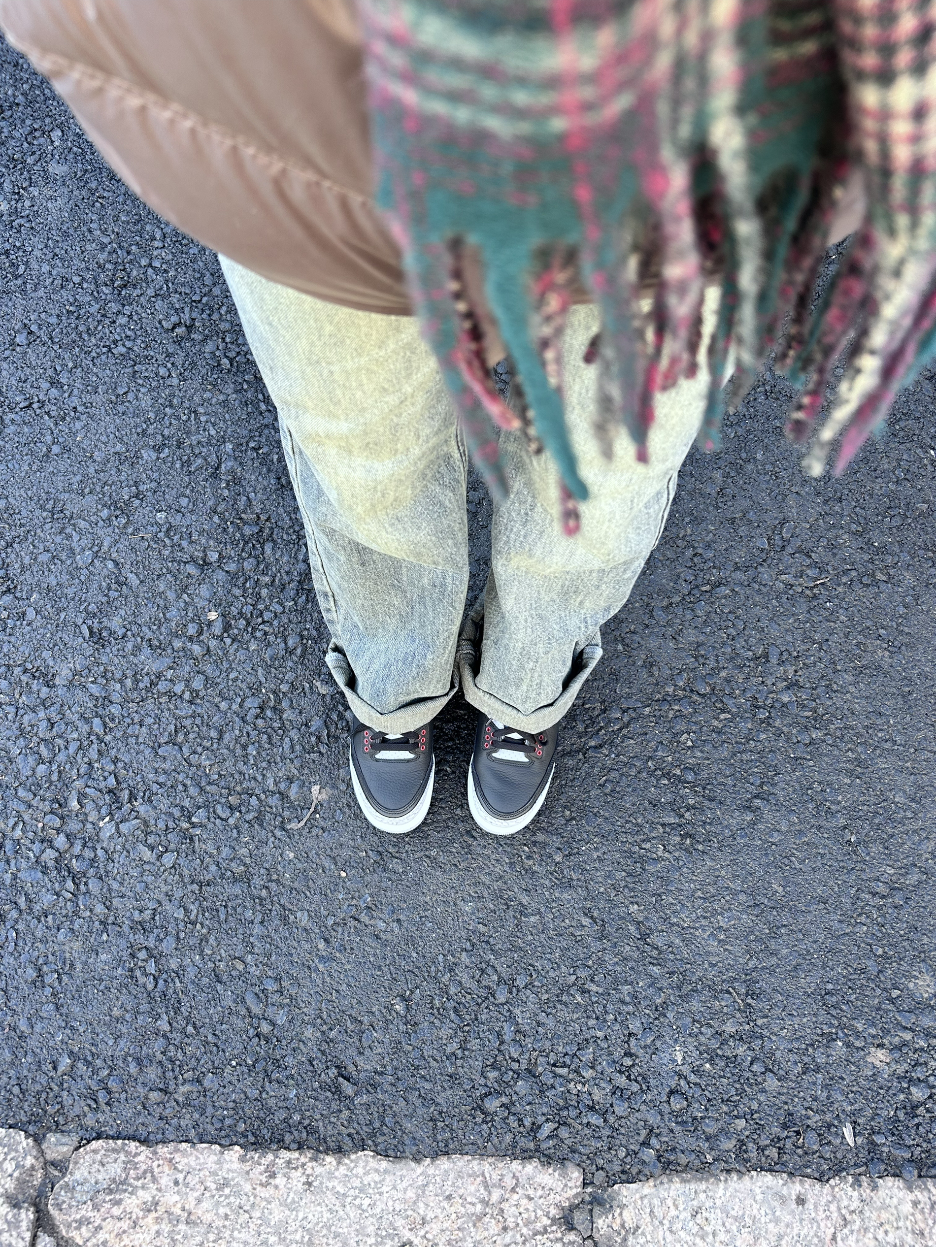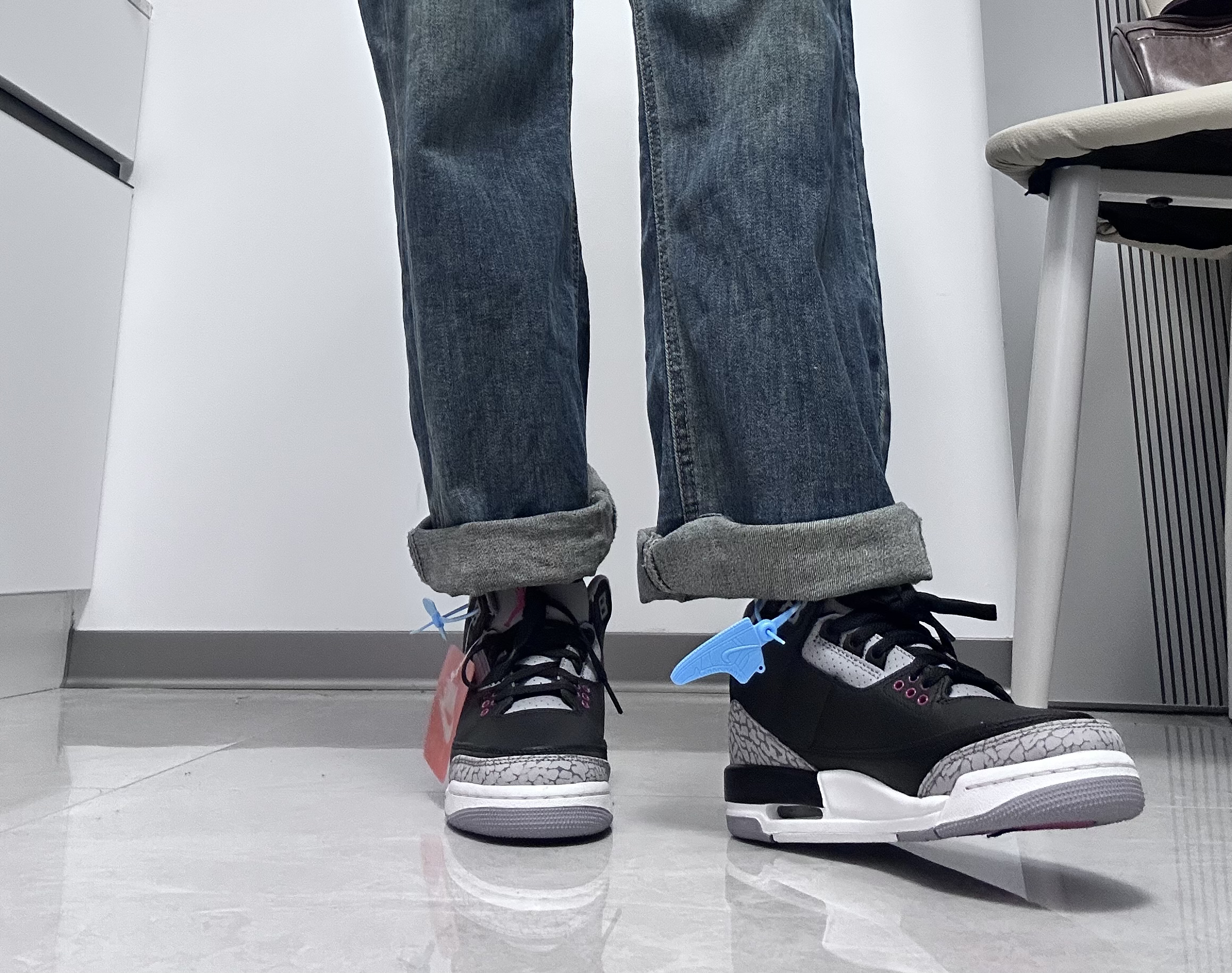 👟球鞋名称:aj3-黑水泥 🔍分享理由:太帅了 🤔整体感受:非常的百搭,不论牛仔休闲小裙子都能驾驭,没有它不能搭的,里面有小绒毛,过冬是完全没问题的,上脚非常舒服,鞋码很正,还特别耐脏,主要现在价格合理!🥳