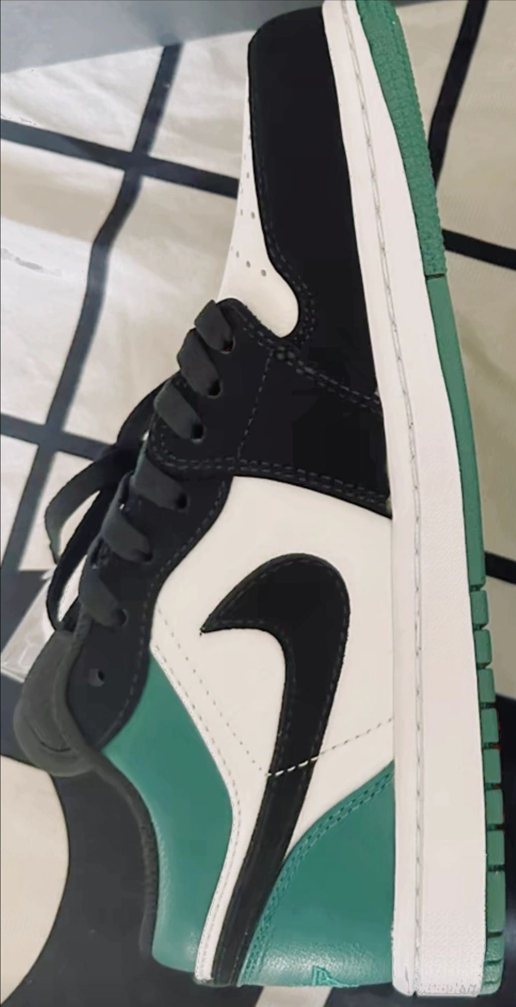 #AJ1青苹果绿#ai1薄荷绿#AJ1绿脚趾这么好看的鞋谁还没有黑色磨砂麂皮搭配古典绿色低帮百搭这双aj你会入手吗#AJ1绿巨人