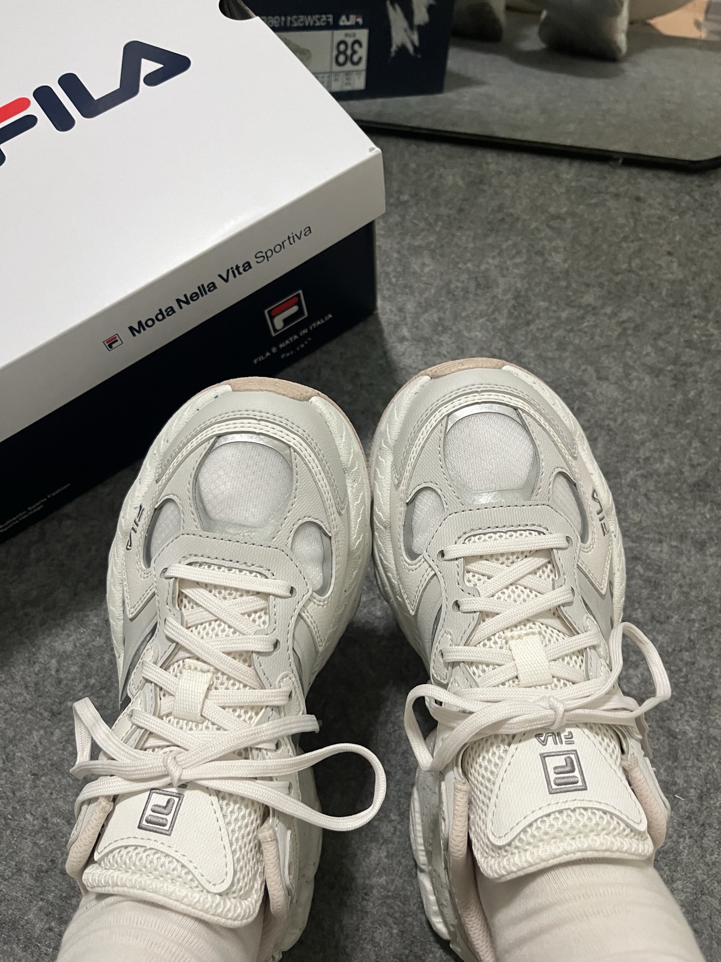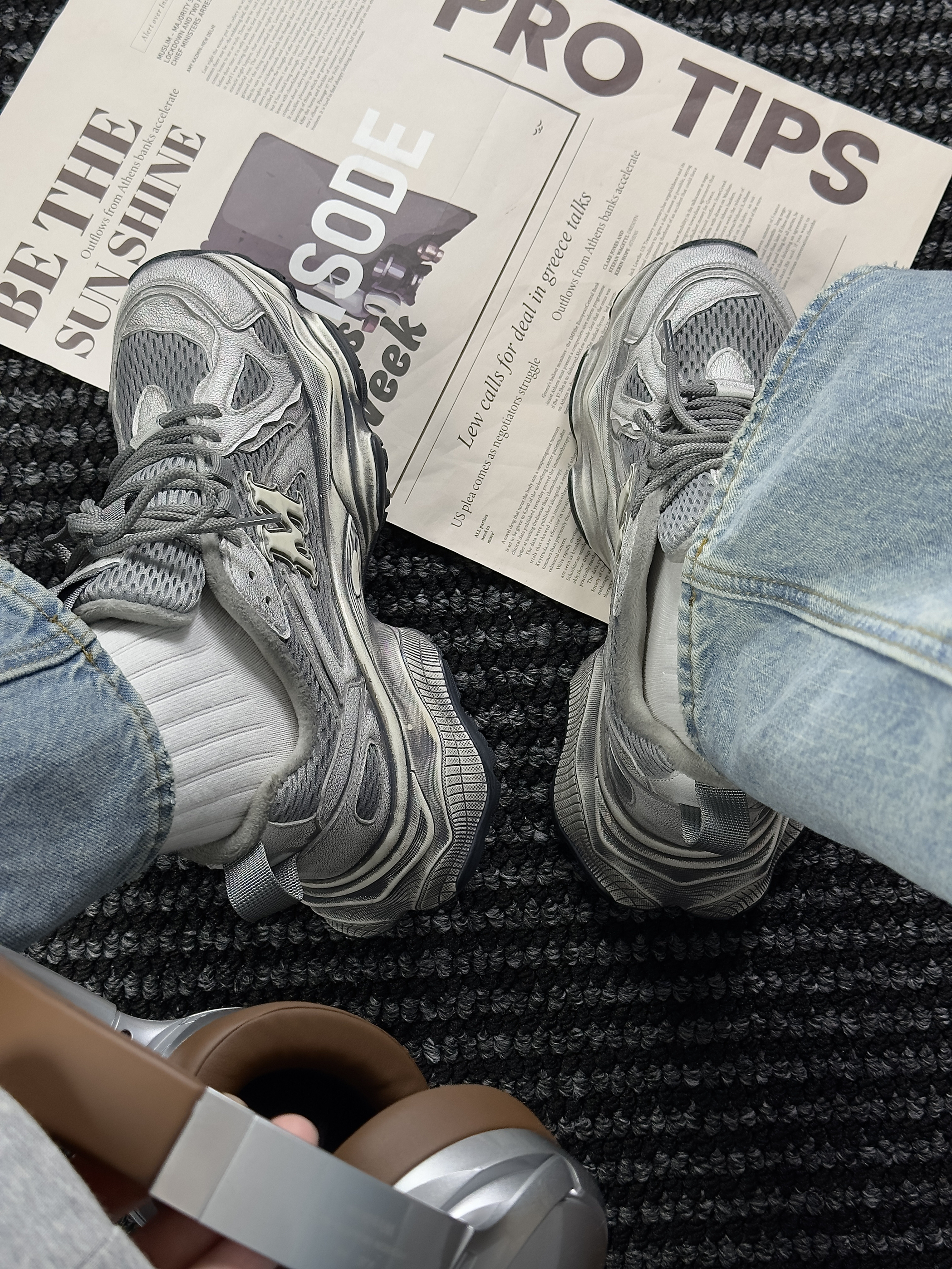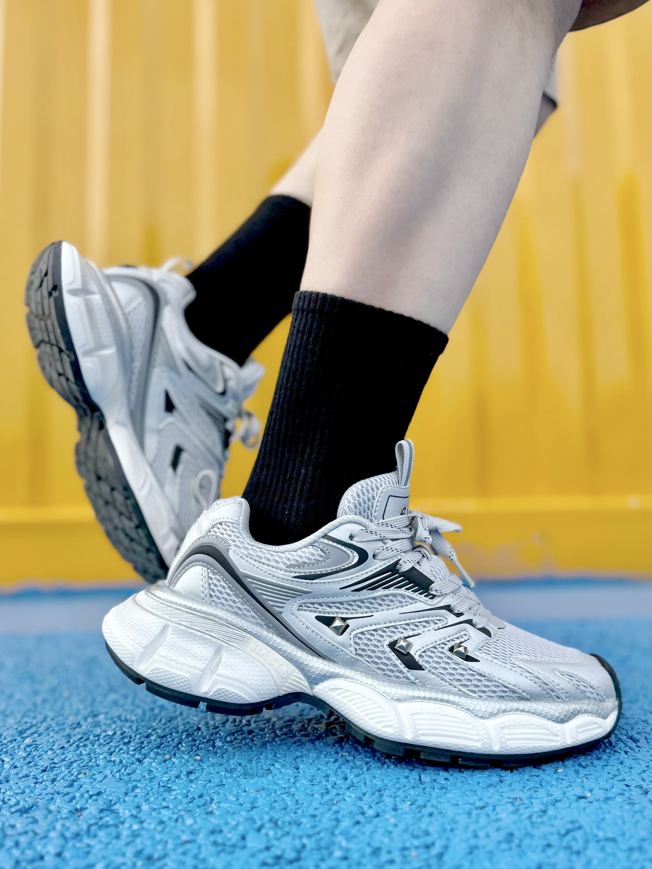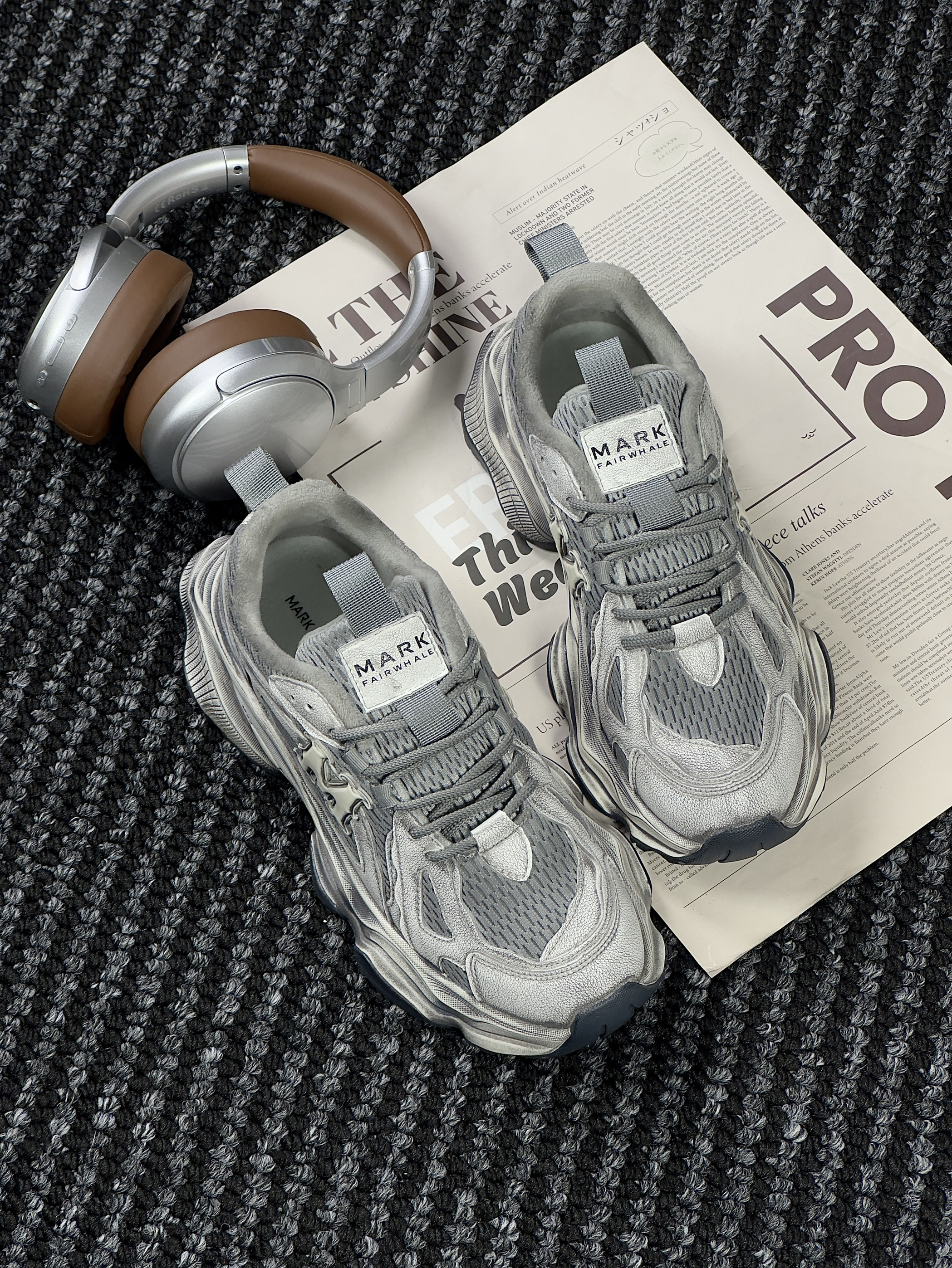 hello,这里是陈白羊🐑!爱惨了这双情侣款冰川灰老爹鞋~ 来自马克华菲/FAIRWHALE 深浅灰色系🩶与不规则擦色设计的组合 在机能风鞋型的衬托下 好有未来感🎧的配色~ 皮革与织物网眼材质拼接 增加了鞋子的层次感 这款内衬还带加绒 可谓是时髦温度两不误 而它的中底则是由轻量化的发泡☁️材质构成 上脚柔软舒适 还有着4cm的增高效果 还是男女同款,就算拿去搭情侣鞋也很合适 在搭配上呢,像今...