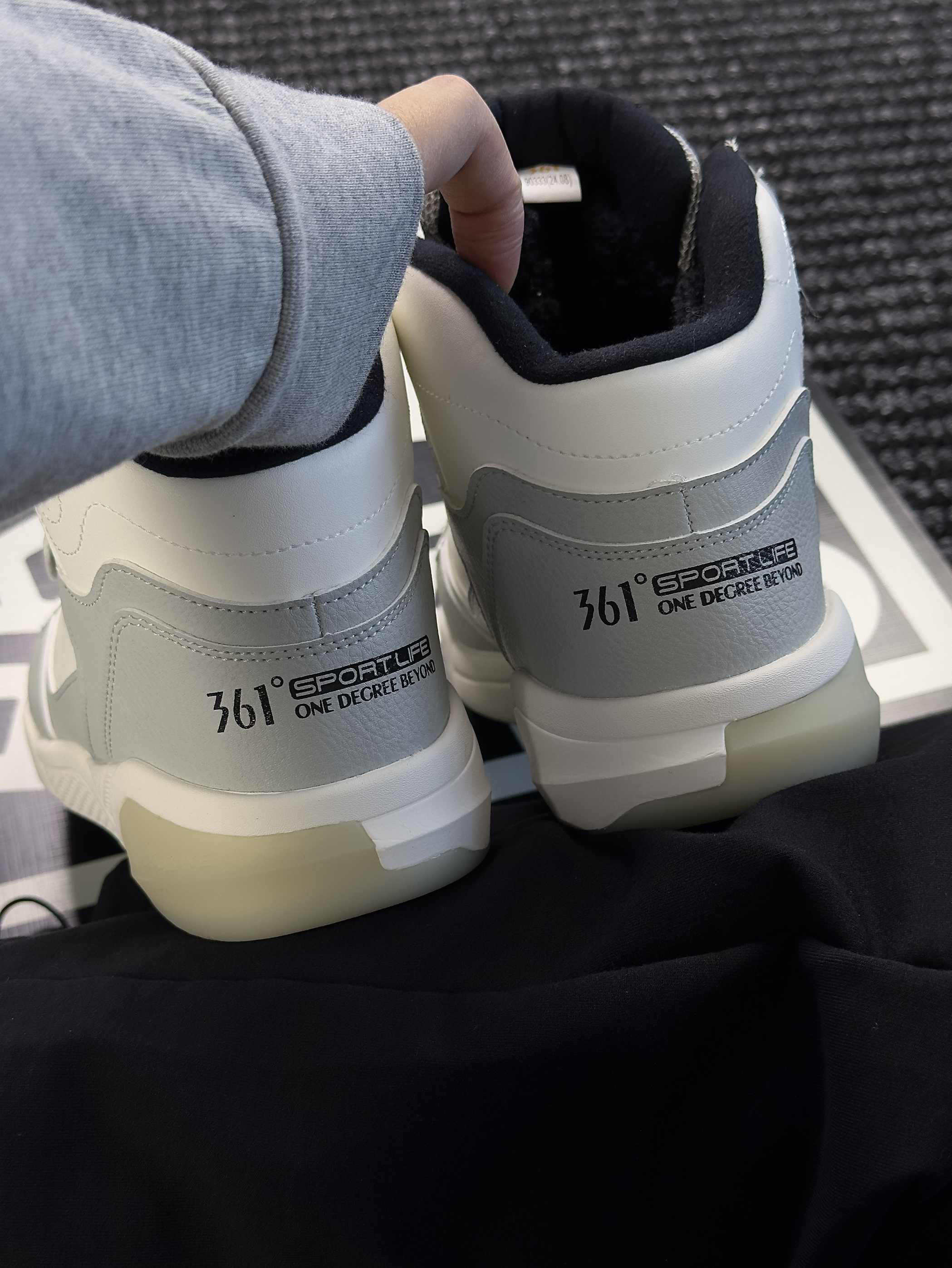 hello,这里是陈白羊🐑!今天给大家分享一双适合冬天❄️穿的加绒板鞋361°「冬征」 白色🤍与浅灰色的组合,再加上黑色的细节修饰 日常搭配起来还蛮有少年感的~ 鞋面采用了软糯的皮革材质 防风防水也好打理 而内里还填充了厚实的绒毛 这个冬天不怕在冻脚了 中底还做了加厚 不仅增高上脚的脚感也hin轻便 在搭配上呢,拿去搭黑色卫裤或者牛仔裤👖都OK