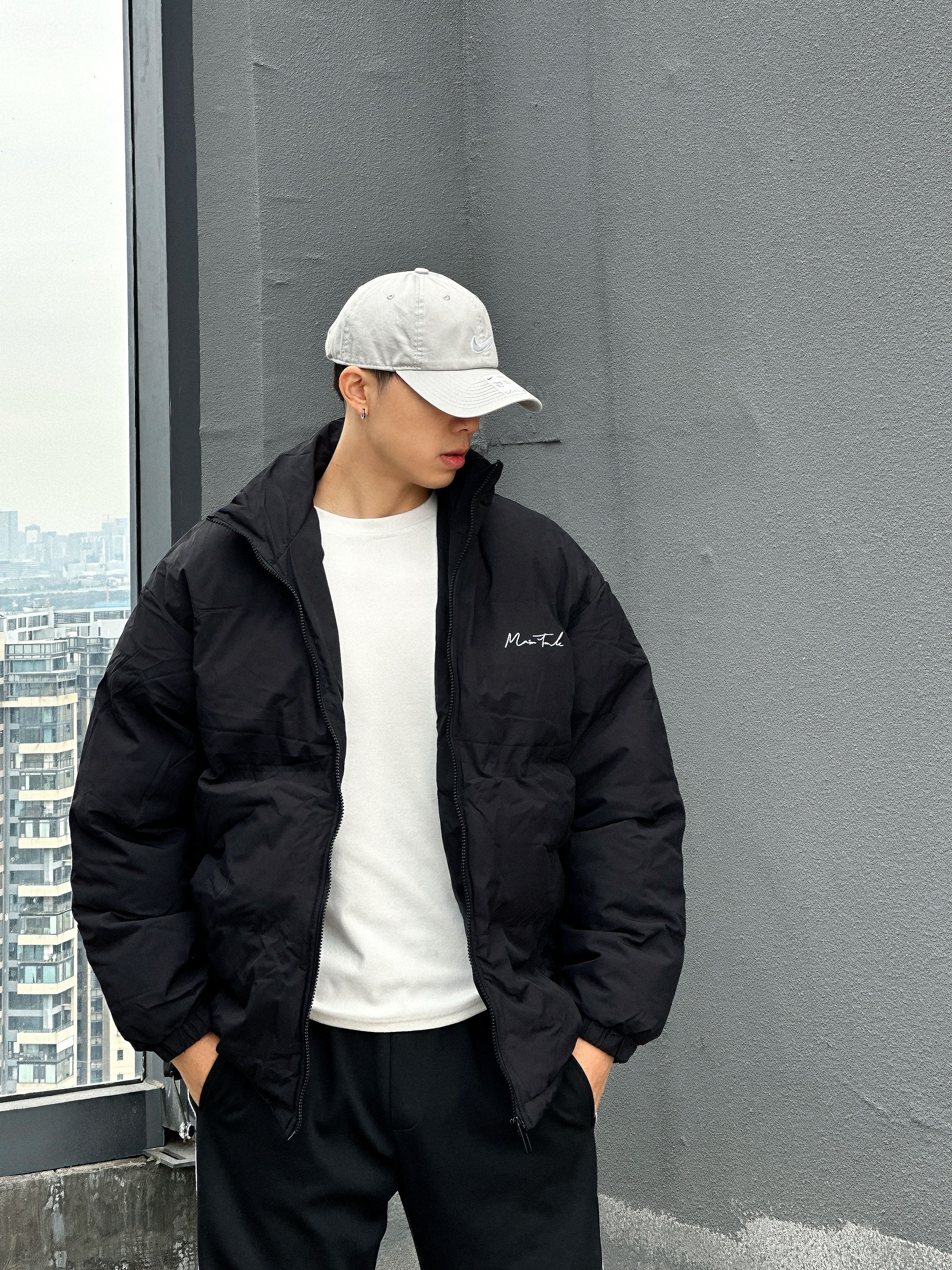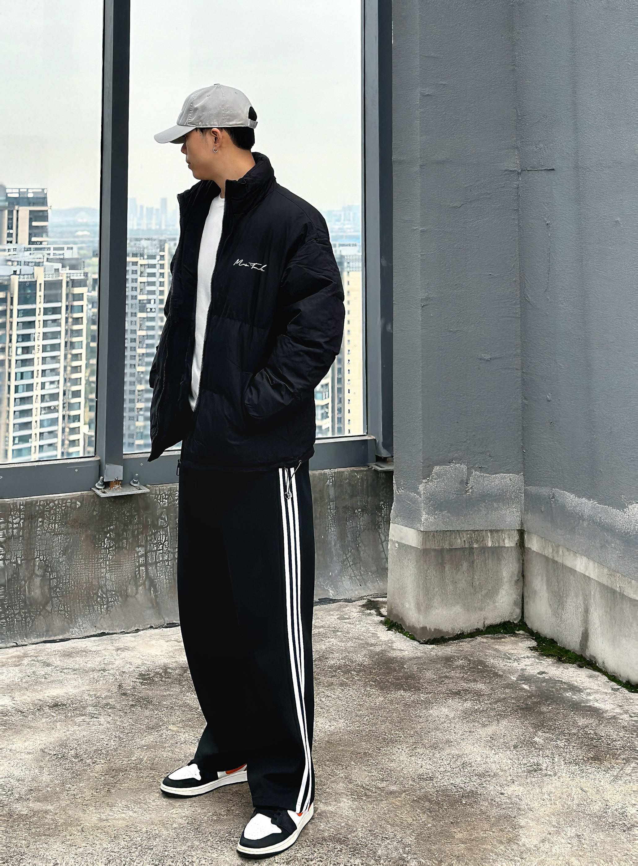 🧍🏼♂️:嗨喽∽今儿小杨分享一件面包棉服⬇️ 🧢:logo印花浅灰色鸭舌帽 👖:黑色三道杠直筒休闲裤 👟:平底板鞋 👔:我叫MT 👉尺码推荐181cm 75kg➡️XL(宽松) 美式简约面包棉服!这个冬天穿这么一件厚实保暖的棉服就够了!👍 胸前和后背的字母印花设计非常好看,超有辨识度⭐ 黑色经典又百搭,宽松版型但不会显臃肿,穿感轻巧舒适,没有束缚感✅