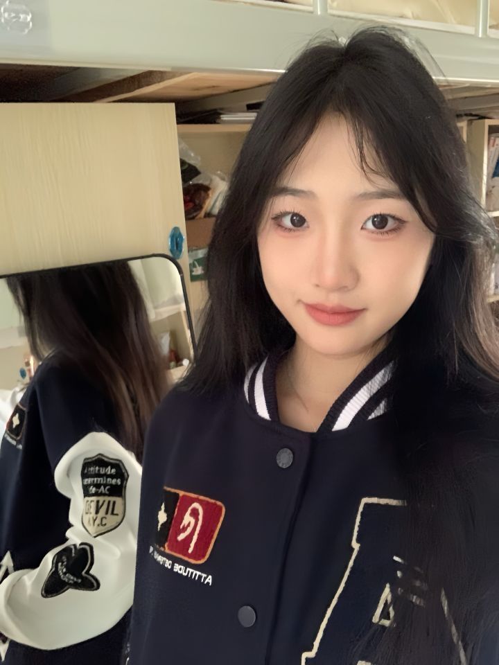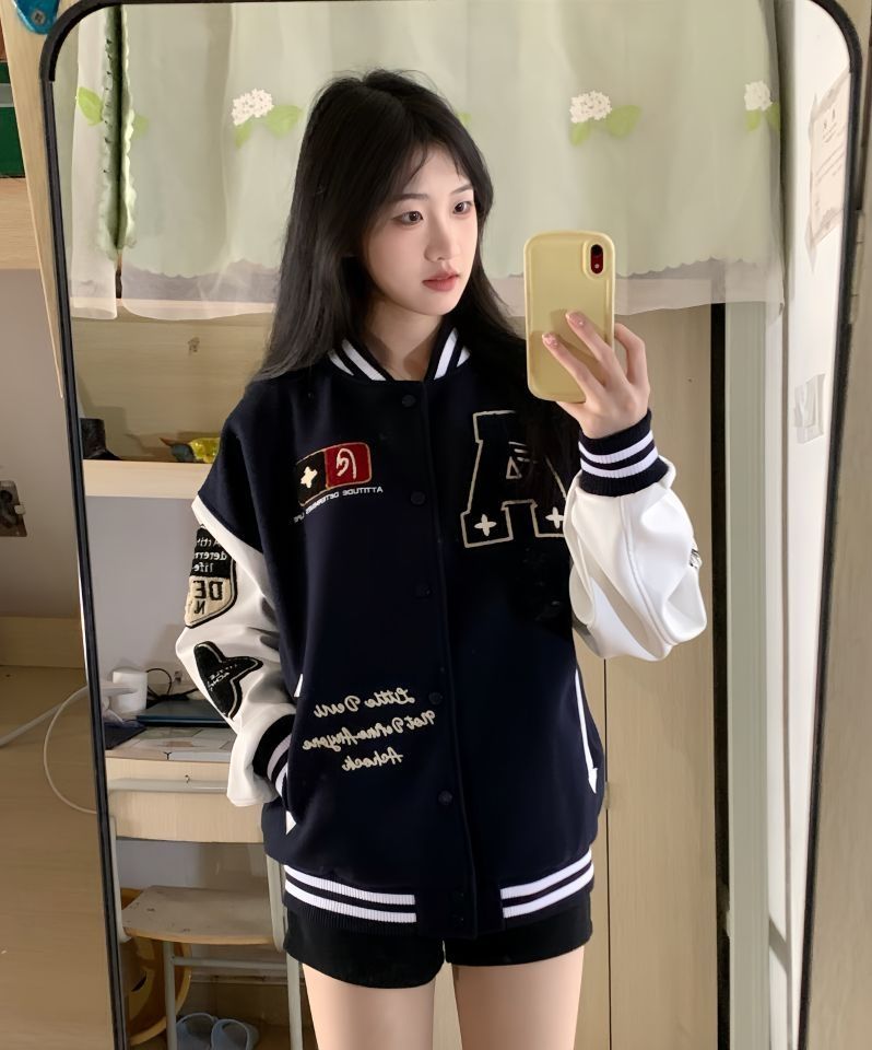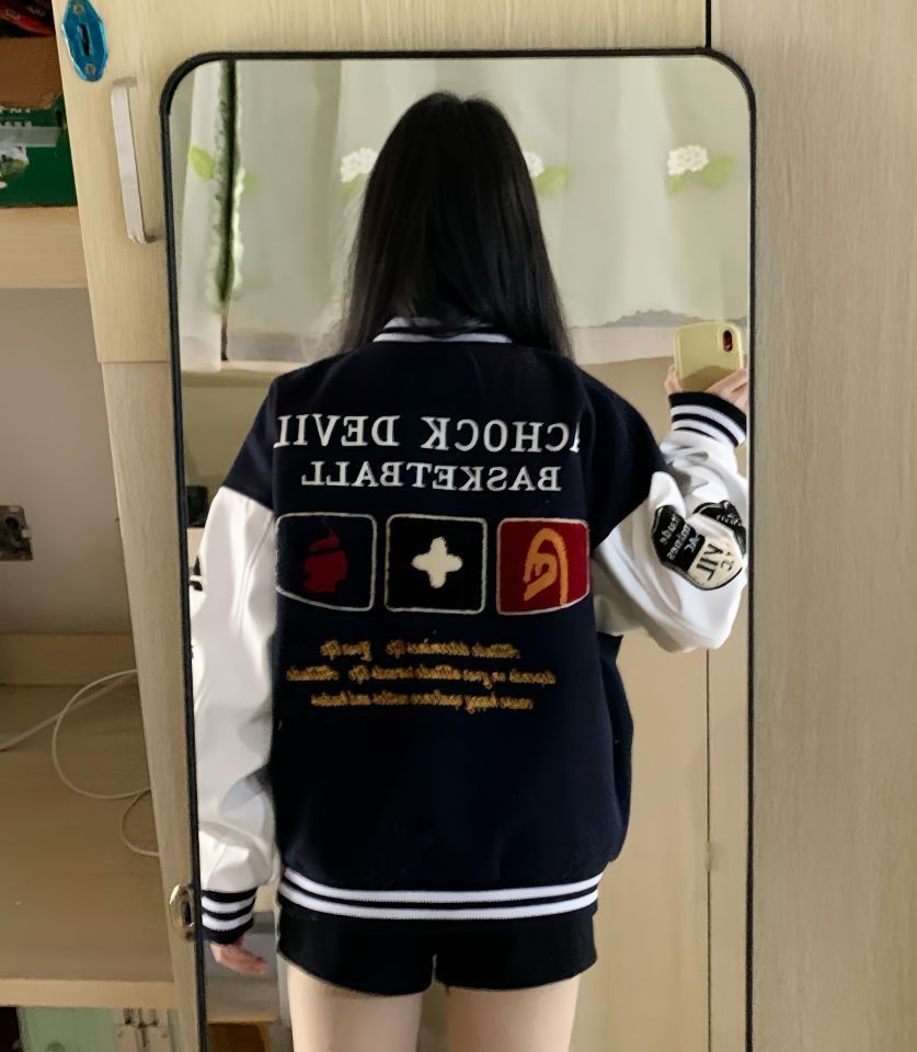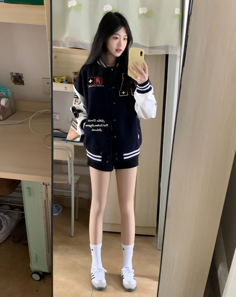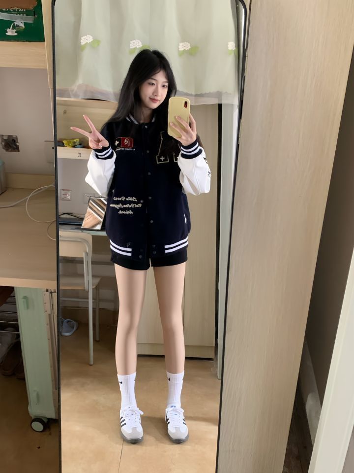 宝宝们 今天穿了超级帅气的棒球服夹克外套! 秋冬还得棒球服! ac家的这件真的超酷! 穿上它 又拽又慵懒感 版型很好 穿上简直好显瘦!