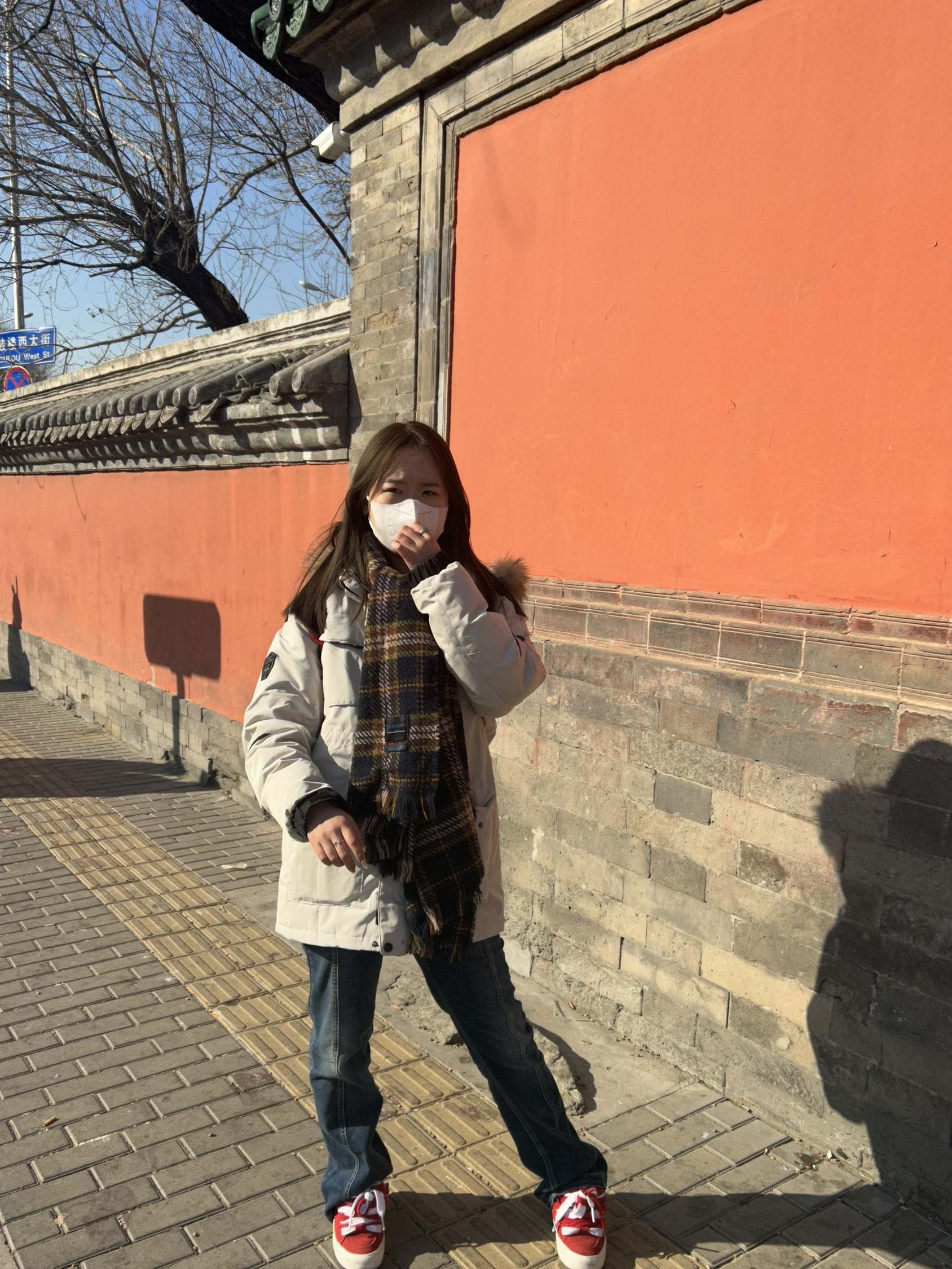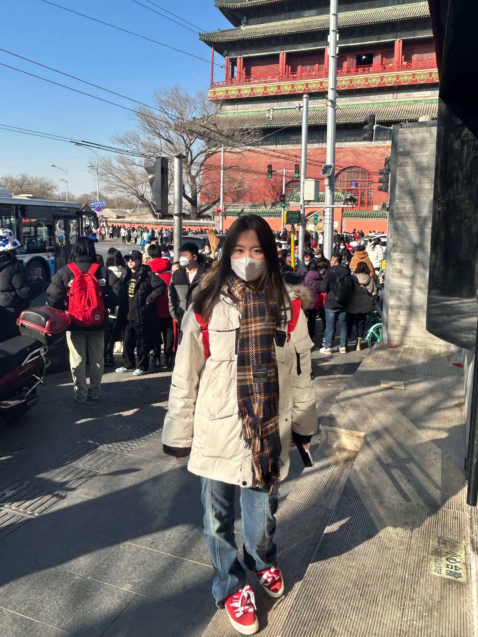 出去玩当然要好好搭配一番 红色的书包,搭配红色的鞋子相呼应 微喇裤配上厚底鞋,这简直就是腿长秘诀, 百搭派克服在搭配冬日氛围感小围巾 出去玩拍照,嘎嘎出片