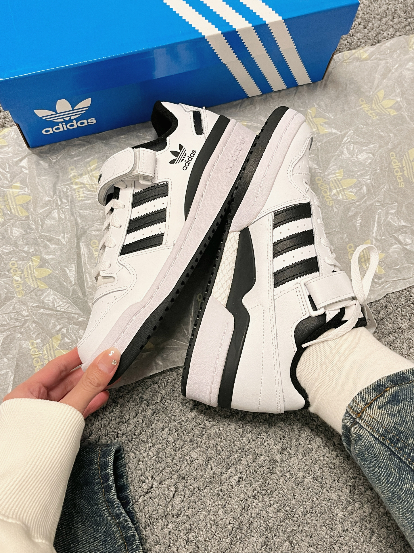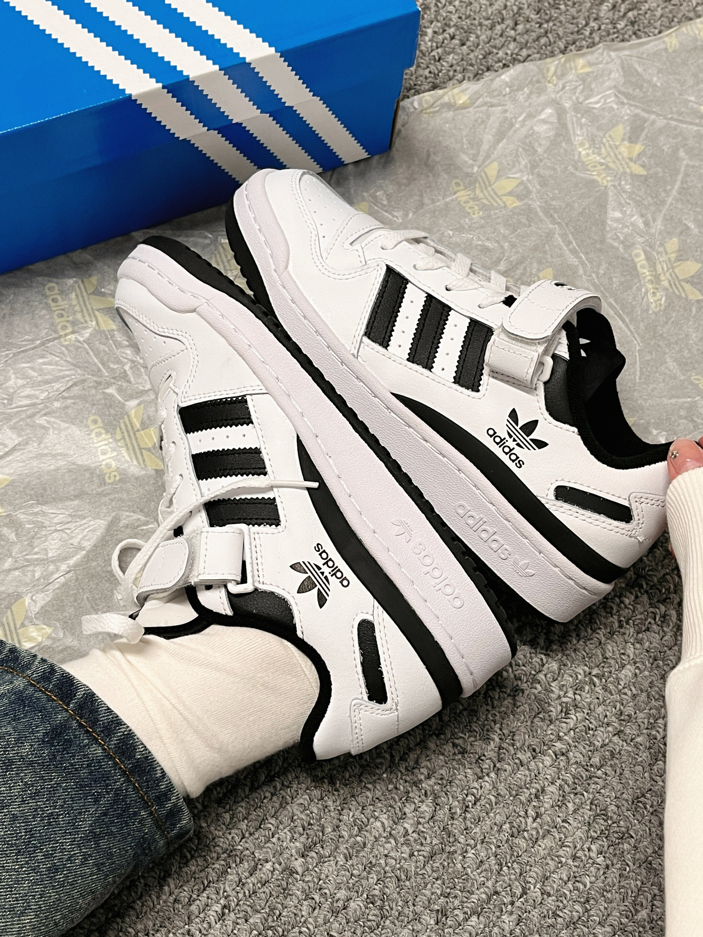 本篇笔记关联了adidas Originals Forum 板鞋 轻便复古防滑时尚魔术贴篮球风薄底包裹性 低帮/白色/黑色等商品,为用户提供真实的使用体验和购买参考。