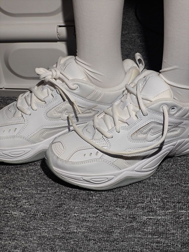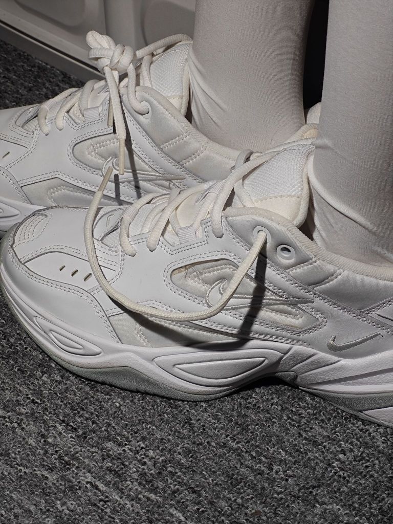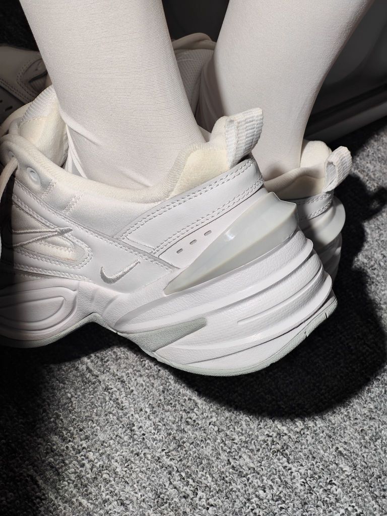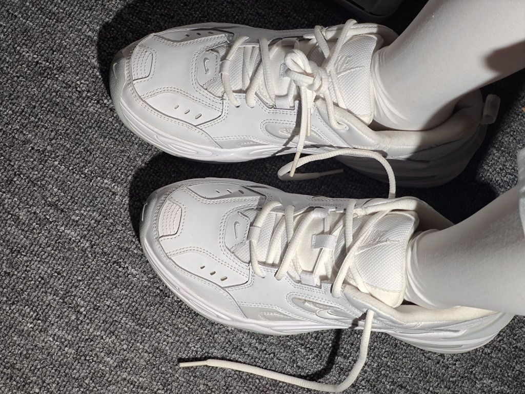 从高中一直都喜欢这个鞋型,当我入手了这双M2K后,没办法了,真的爱了!!! 摊牌了,百搭小白鞋就是它了!M2K它虽然是厚底老爹鞋,但鞋底还是非常的柔软的,加厚的鞋舌和内里填充物也让包裹度得到提升鞋码偏小,感觉压脚背,建议买大半码。