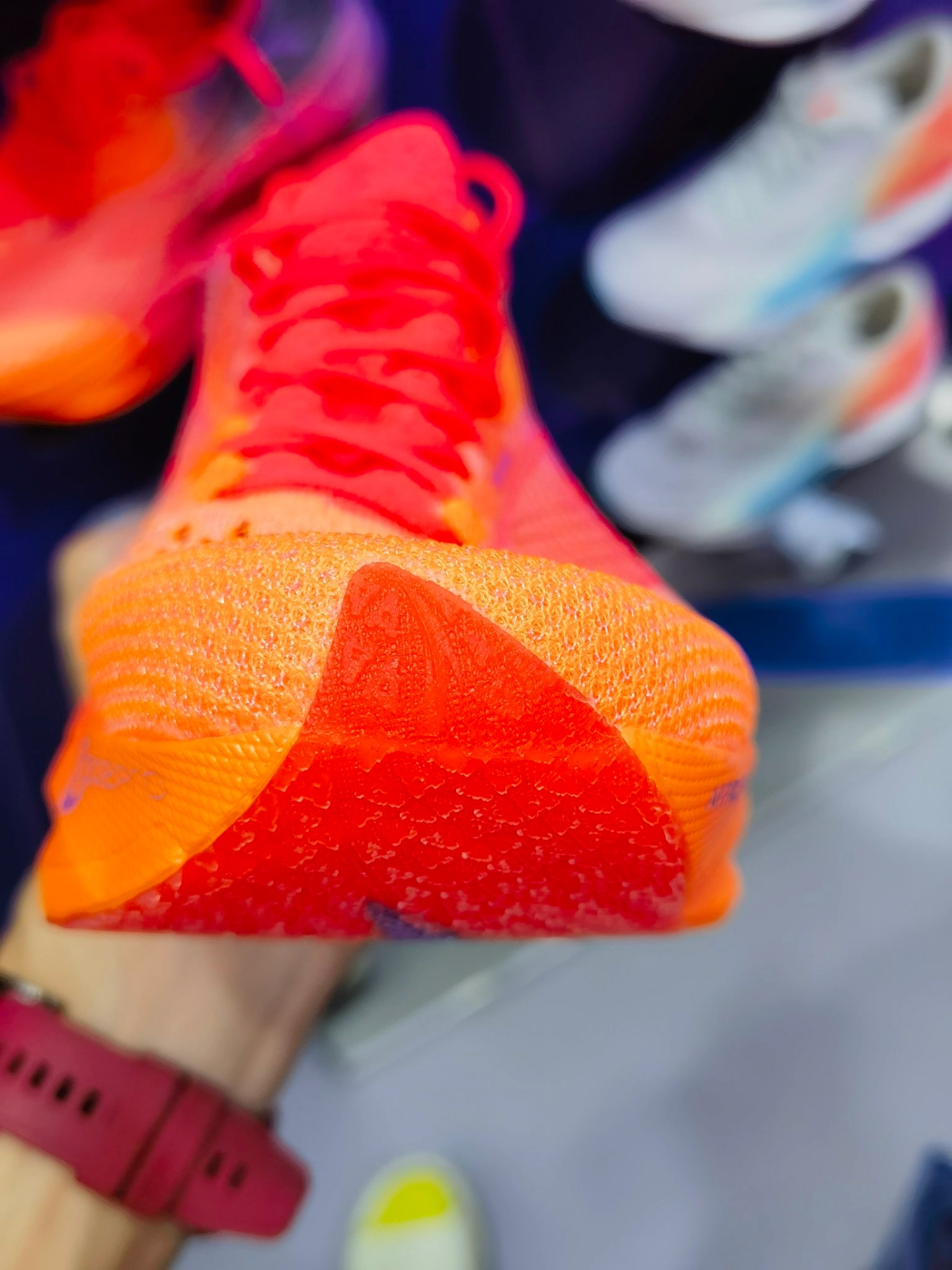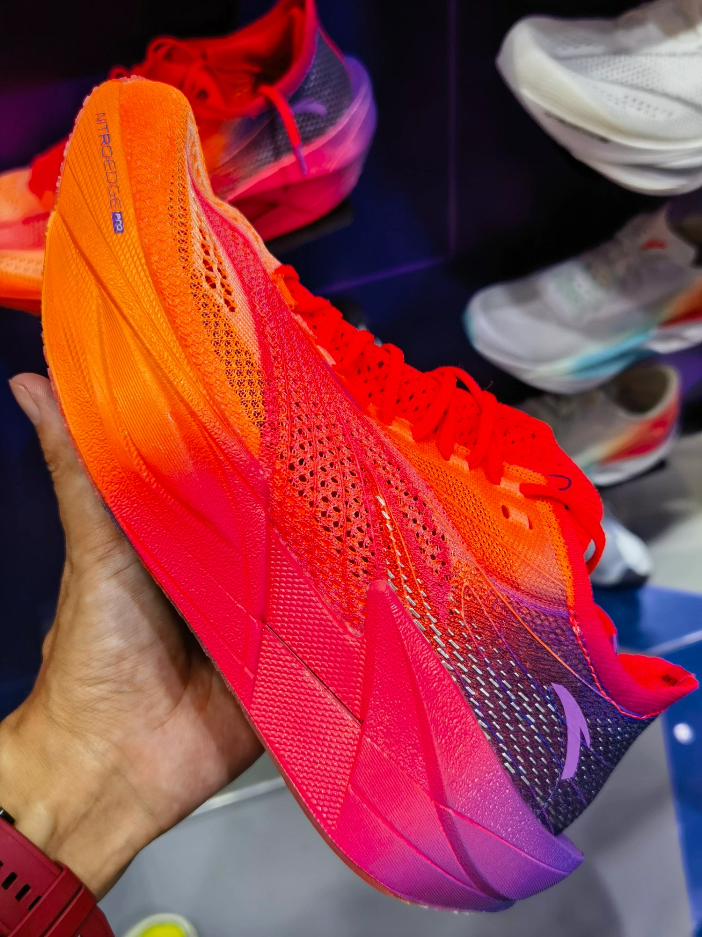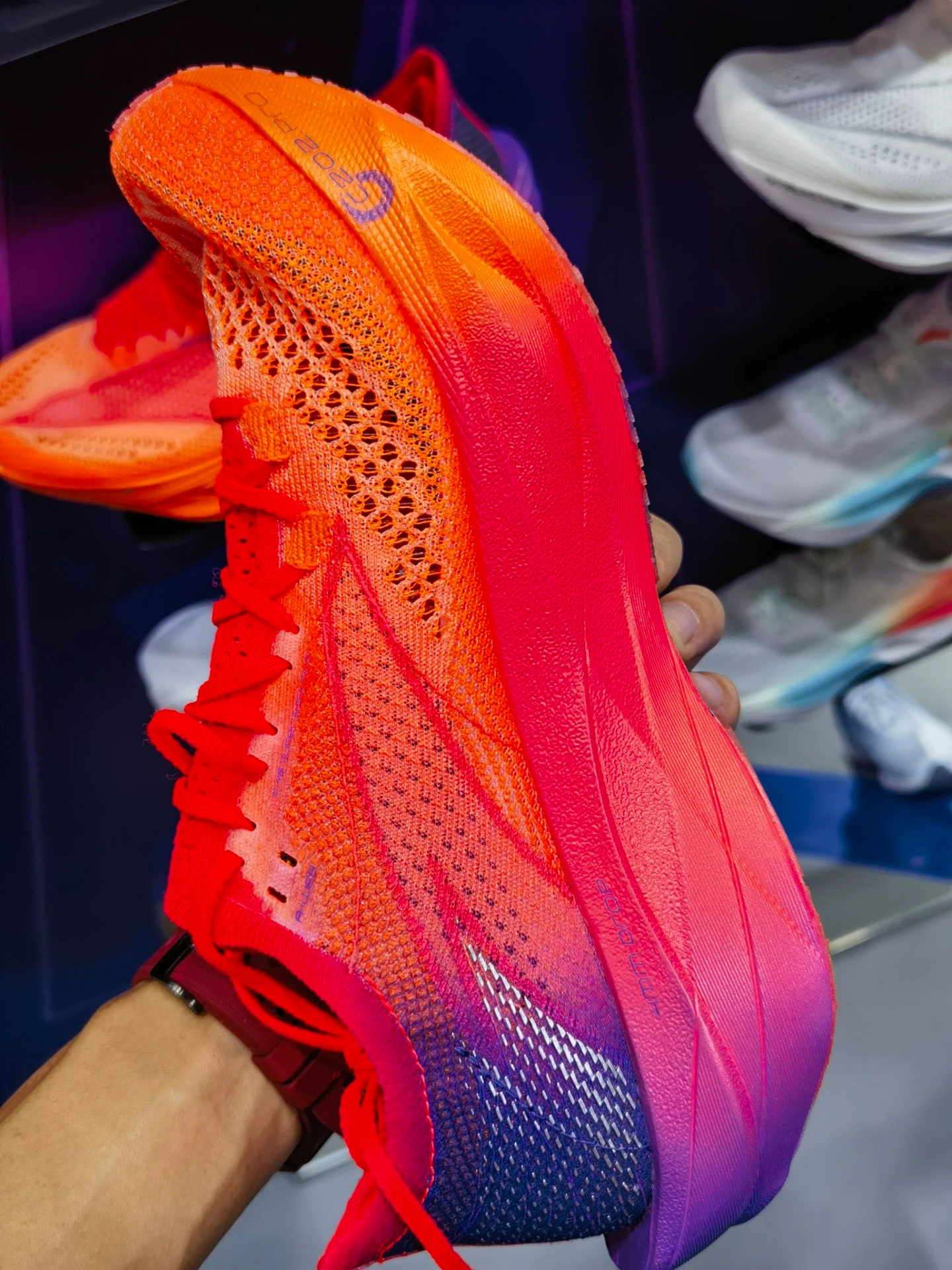 c202 6pro是一双被定价劝退了的尖货好鞋,预算充足的马拉松晋级跑者可大胆尝试,安踏发力跑鞋领域,是认真的。如果说c10pro是前掌跑法的物理外挂,那c202 6pro的设计充分考虑到了中后掌跑法,顶碳跑鞋很少有这种设计的,说几个细节吧。 1️⃣鞋头上翘幅度看起来有点夸张,确实有超强的滚动感,却不是纯纵向向前的滚动,看外底形状不难发现,前掌受力甜区宽大接近鞋头急速收窄,中底厚度变薄,滚动方向是...