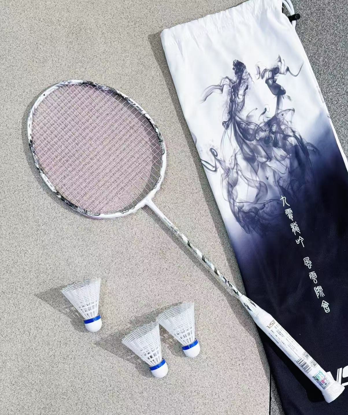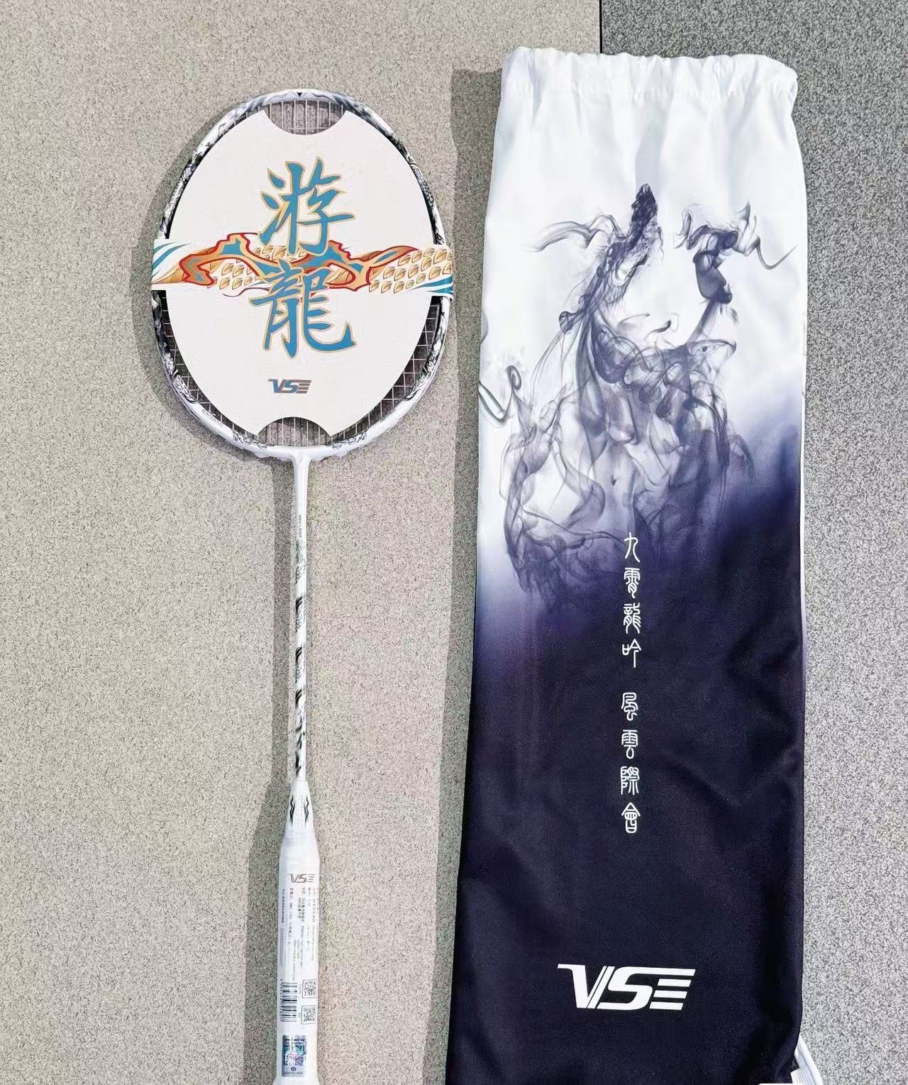 是介个威臣游龙墨引羽毛球拍耶光彩夺目的镀银渐变工艺会在不同角度处折射出绚丽的色彩这个立体龙鳞真滴好酷炫中杆弹性好进攻速度快落点尖击球的声音清脆有力力气小的女生和小新手也可以用哦羽毛球人拥有这个拍子尊滴可以杀遍全场。图源网络,侵删”!!!